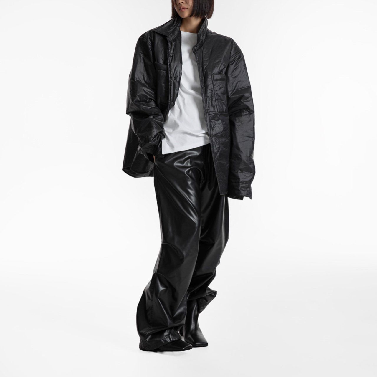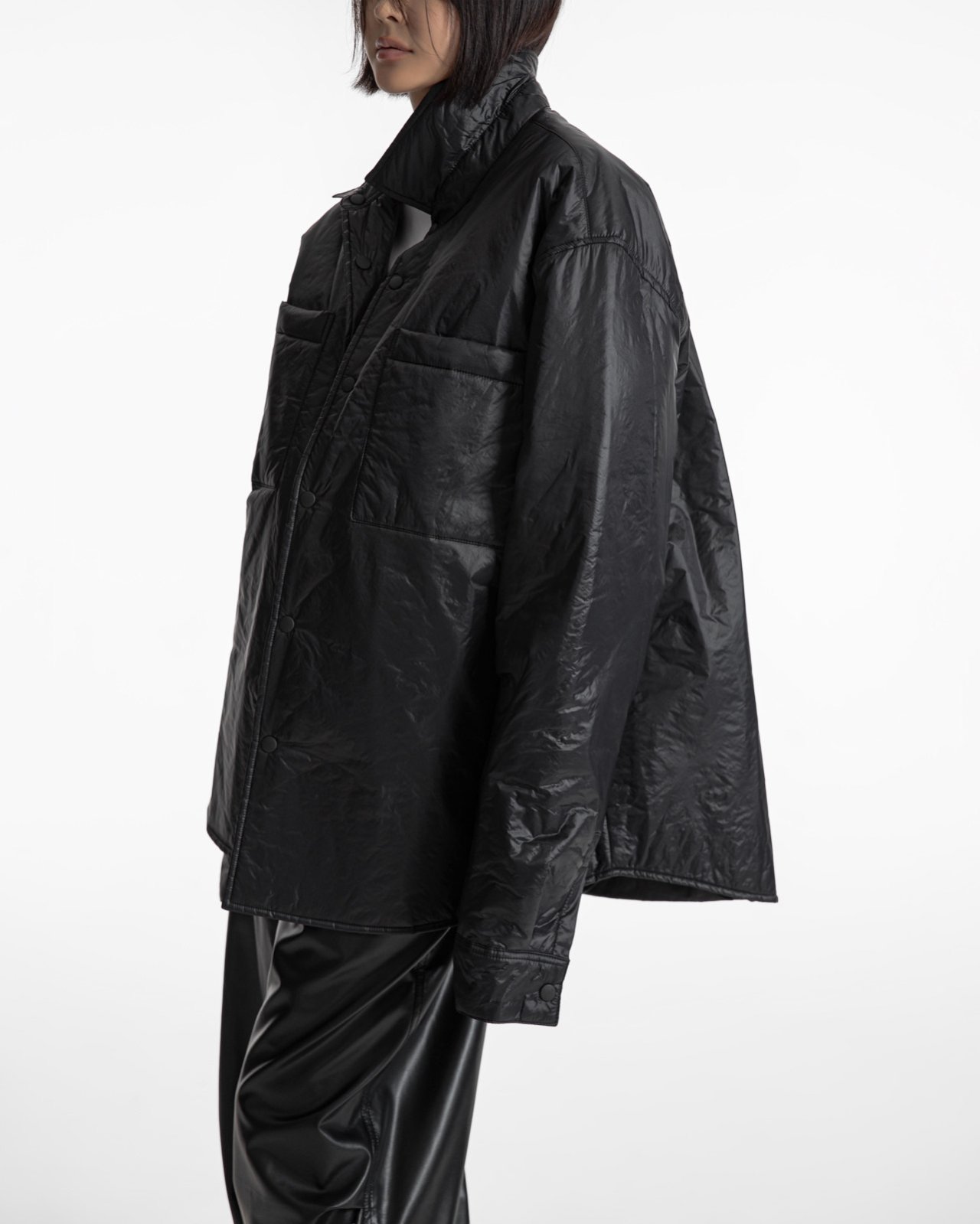 (PAPER MOON) OVERSIZED VIVID LIGHT PADDED BUTTON DOWN SHIRT : BLACK