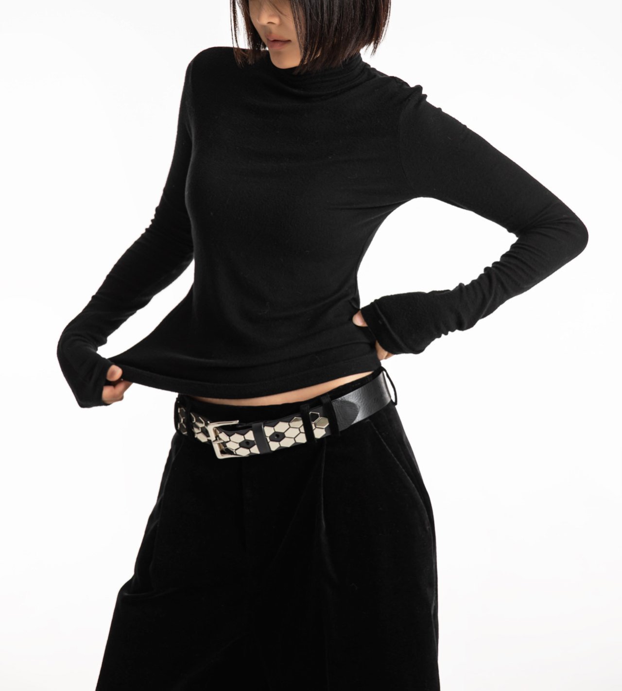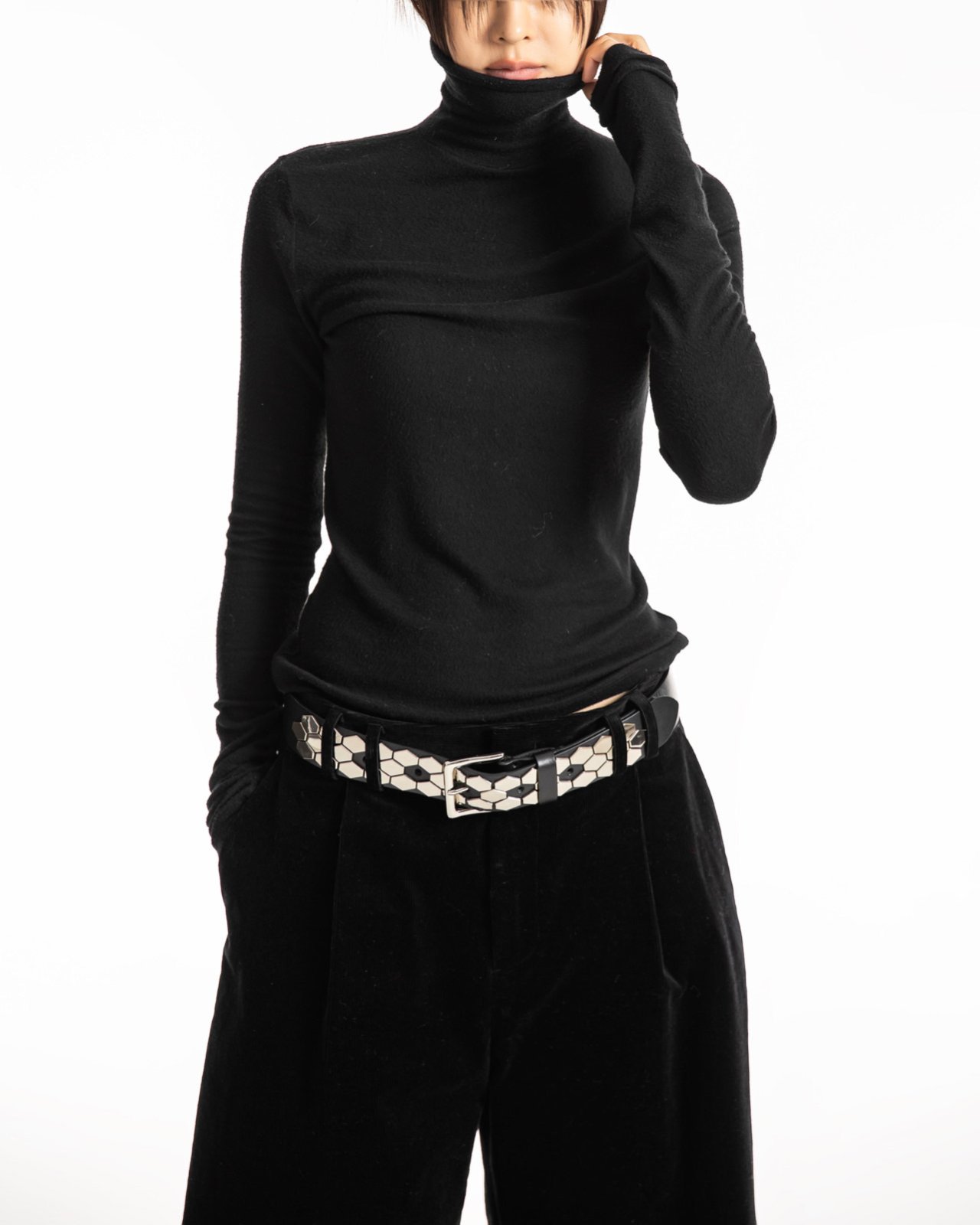 (PAPER MOON) SOFT WARM TEXTURE CLASSIC TURTLENECK T : CHARCOAL