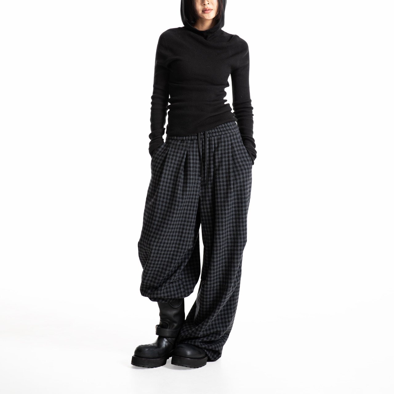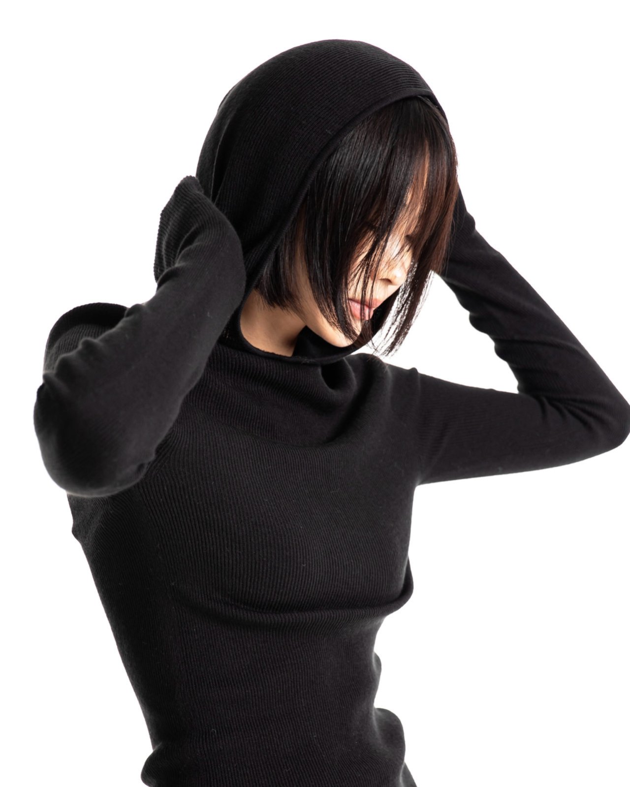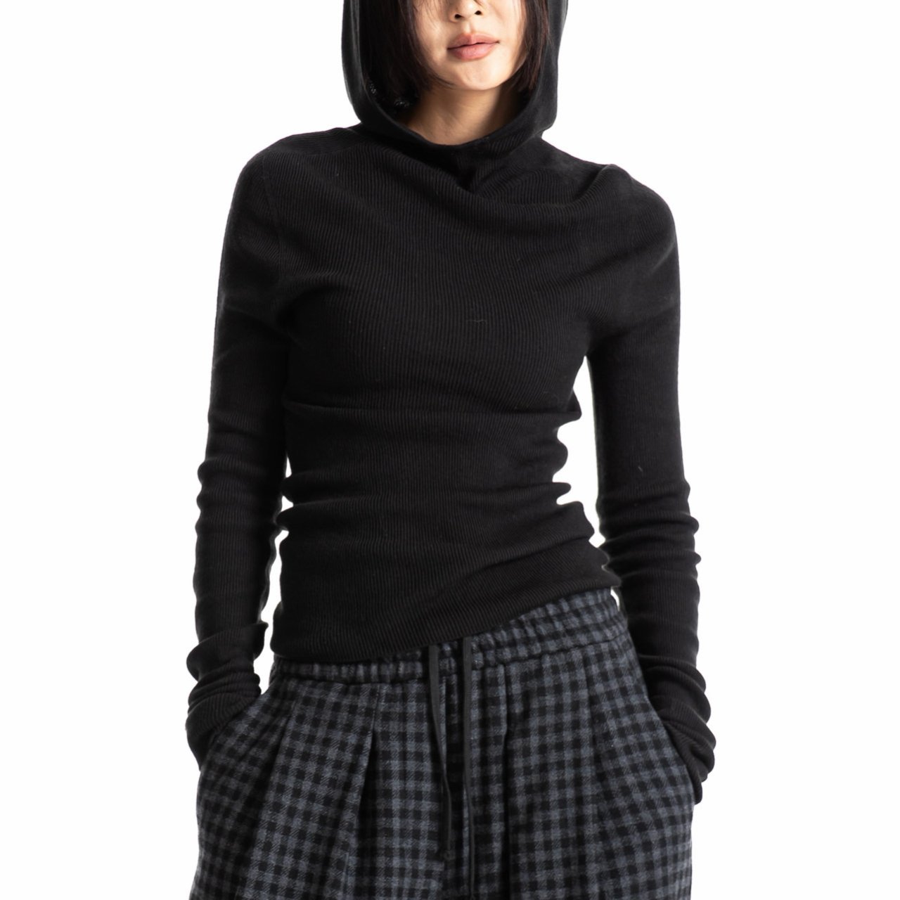 (PAPER MOON) WHOLE GARMENT HOODED KNIT TOP : BLACK