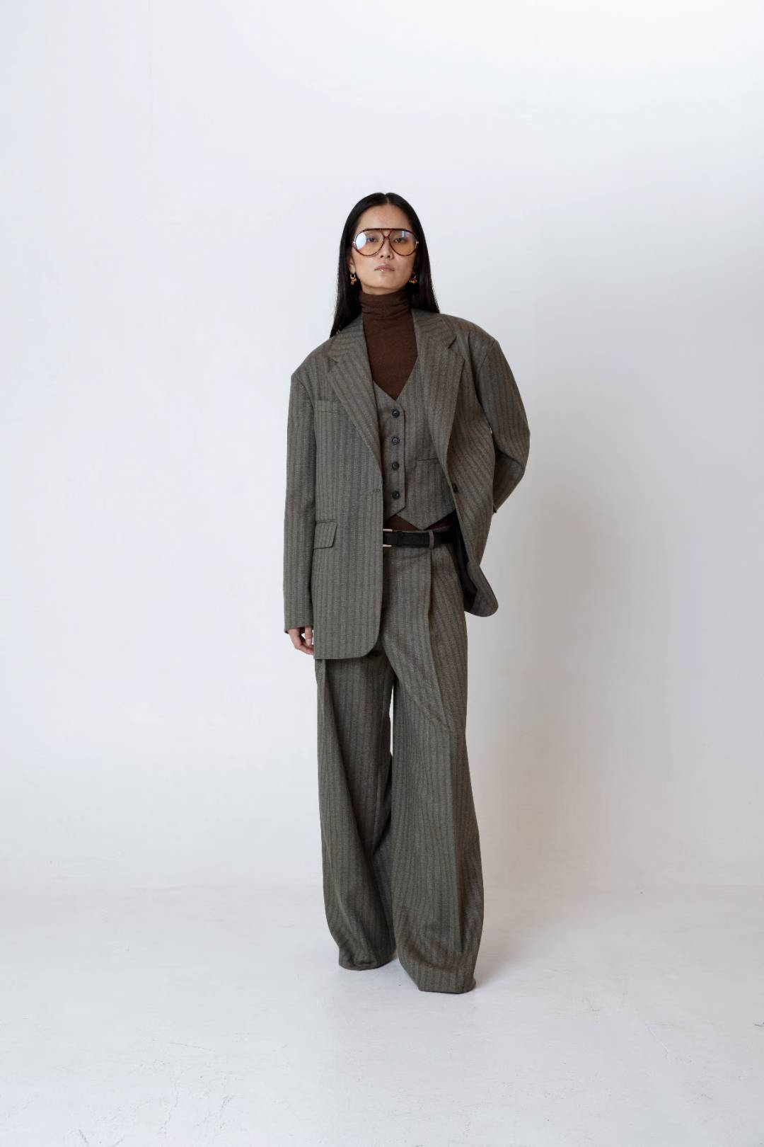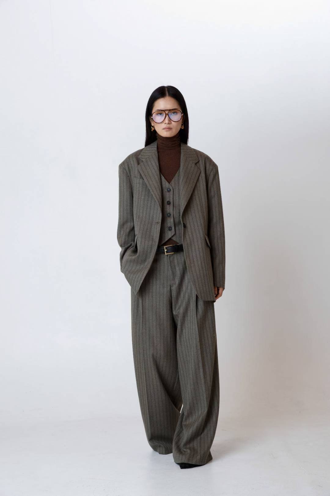 (ONE BY TWO) 25FW-5-8 3-PIECE SUIT (JACKET+VEST+PANTS) : GREY STRIPE