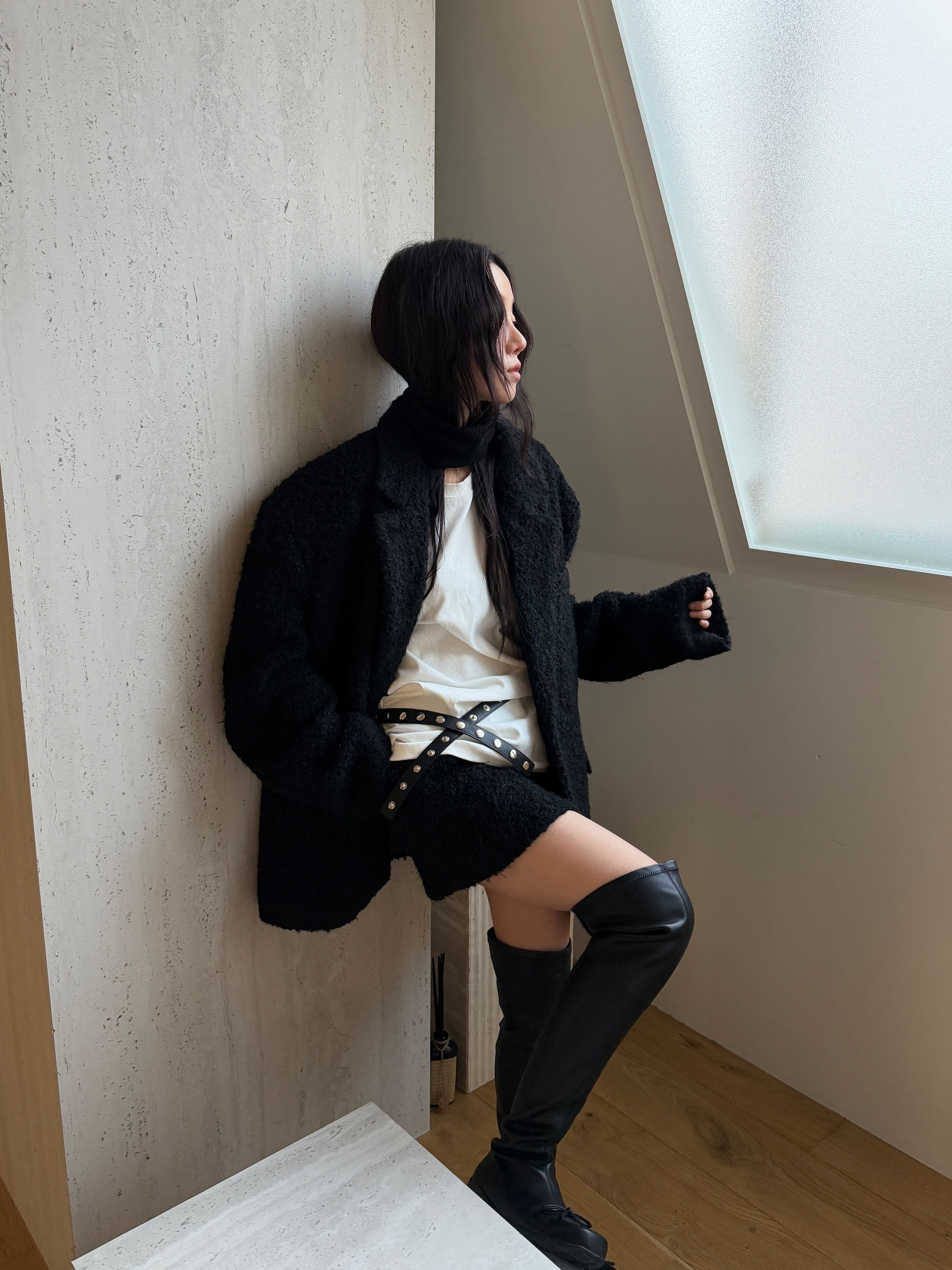 (TOM GIRL) BOUCLE WINTER JACKET : BLACK