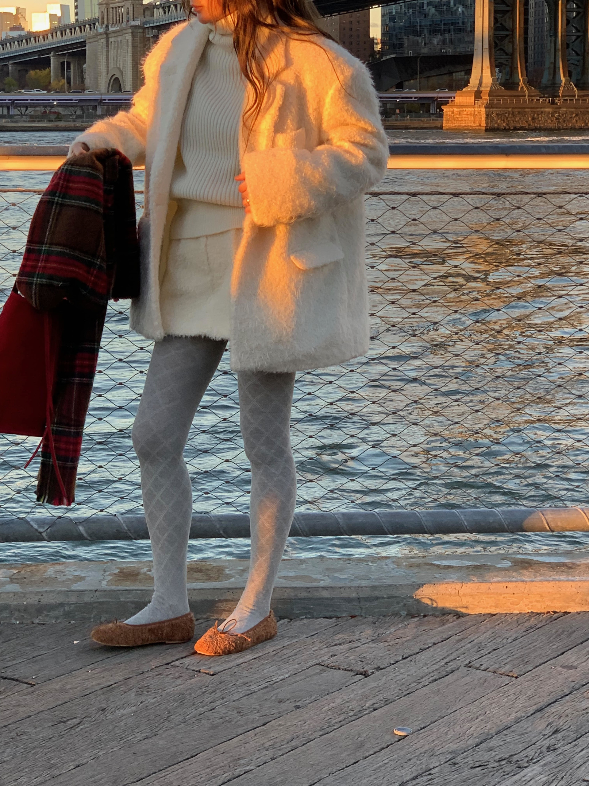 (TOM GIRL) BOUCLE WINTER SKIRT PANTS : CREAM