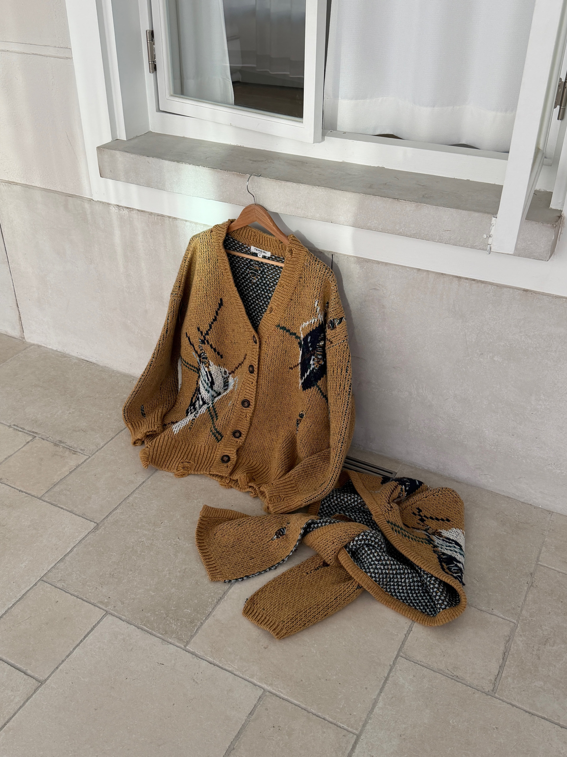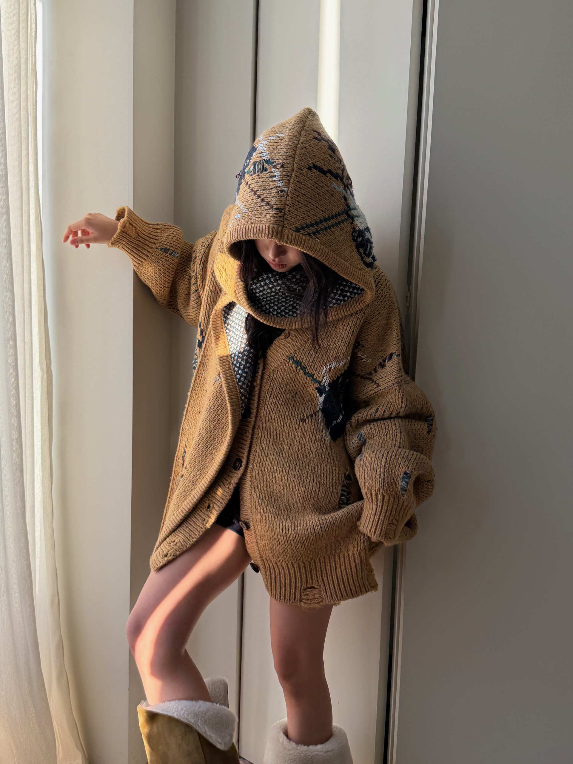 (TOM GIRL) AGAIL HOOD MUFFLER & CARDIGAN : BEIGE