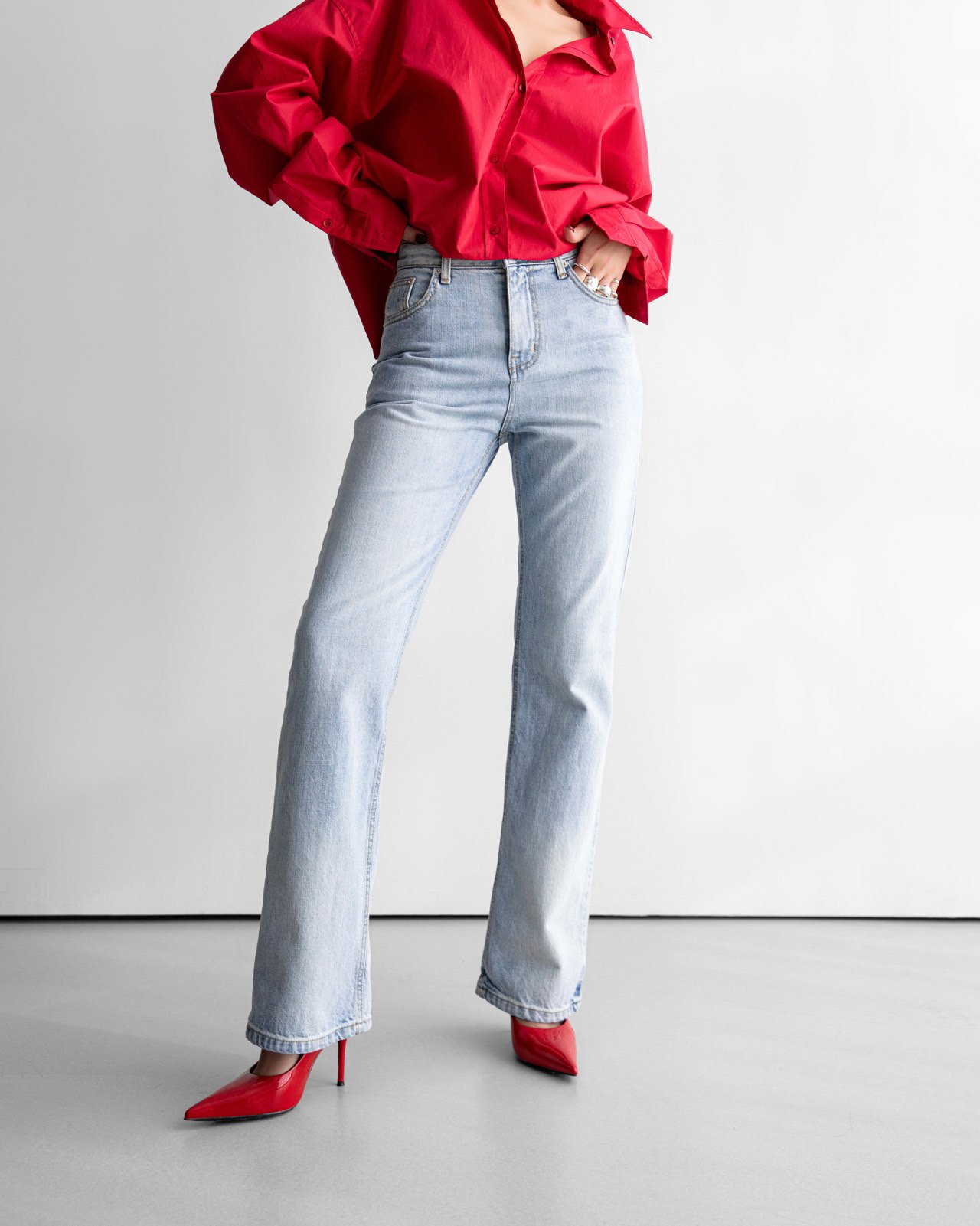 (PAPER MOON) CLASSIC SLIM FIT STRAIGHT BLUE JEANS : LIGHT BLUE