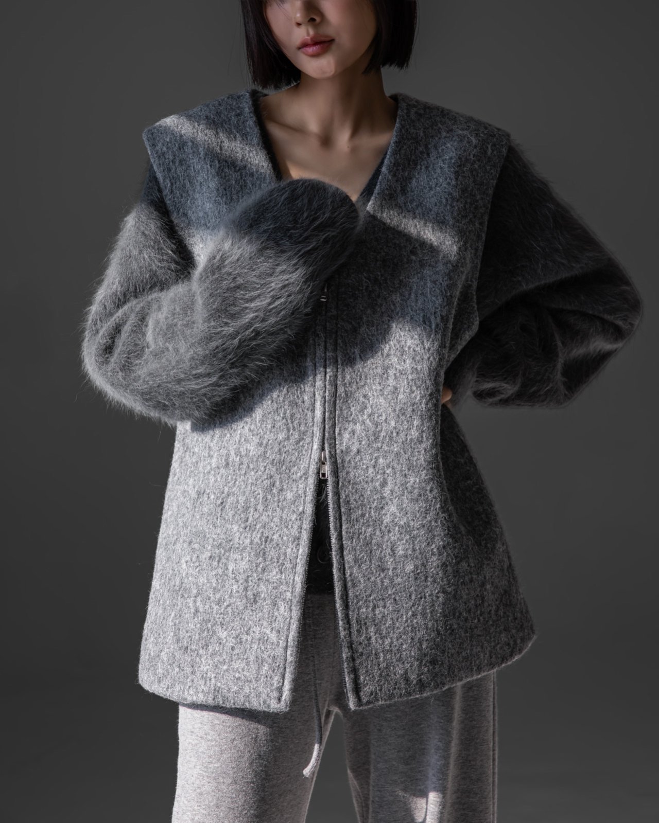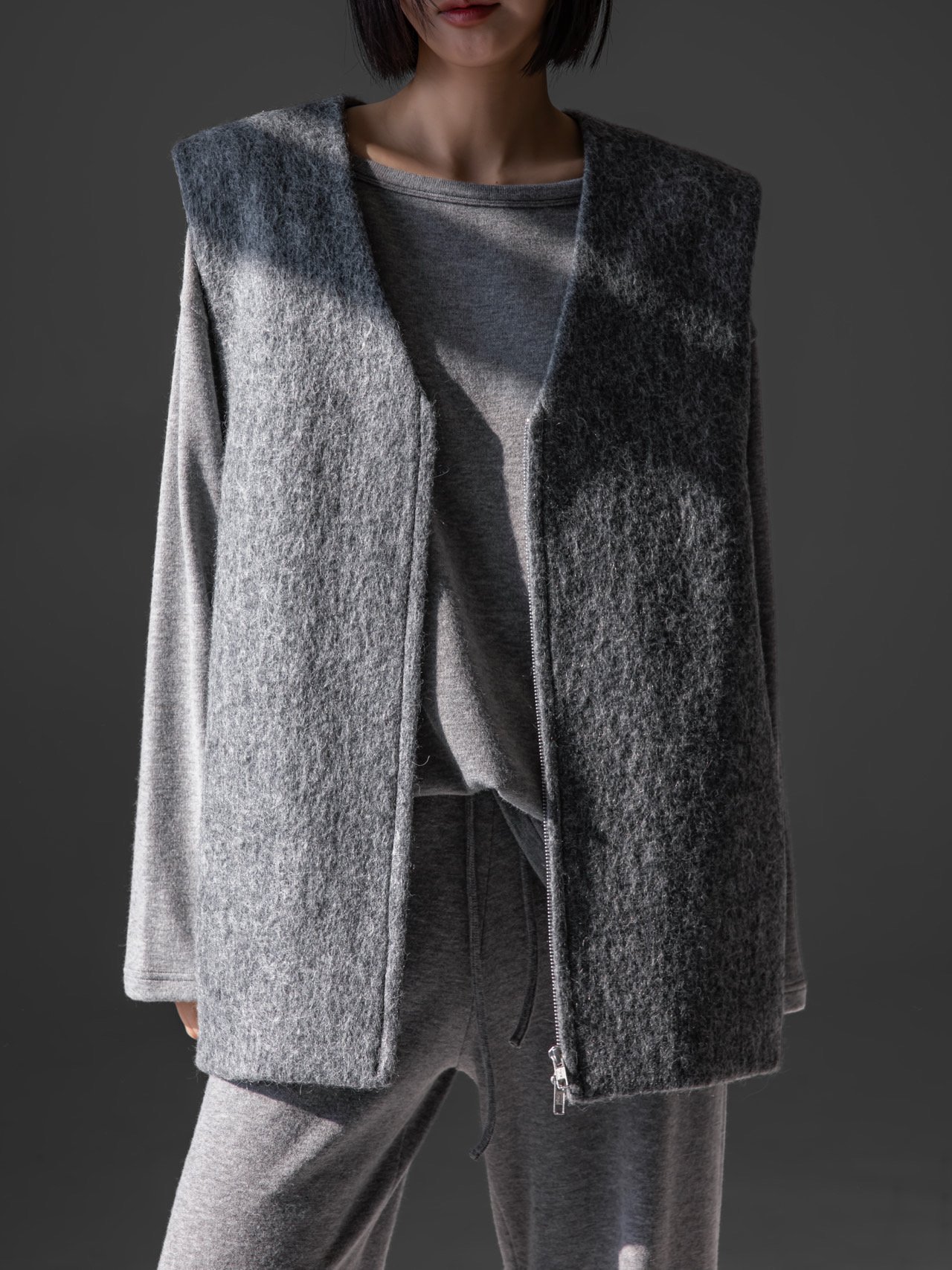(PAPER MOON) ALPACA WOOL ZIPPED - UP VEST : HEATHER GREY