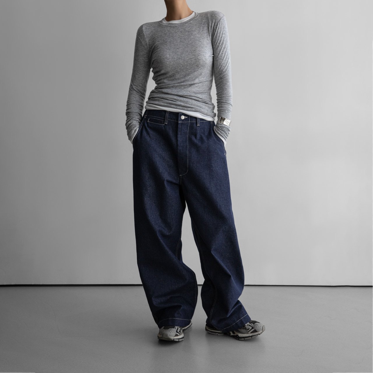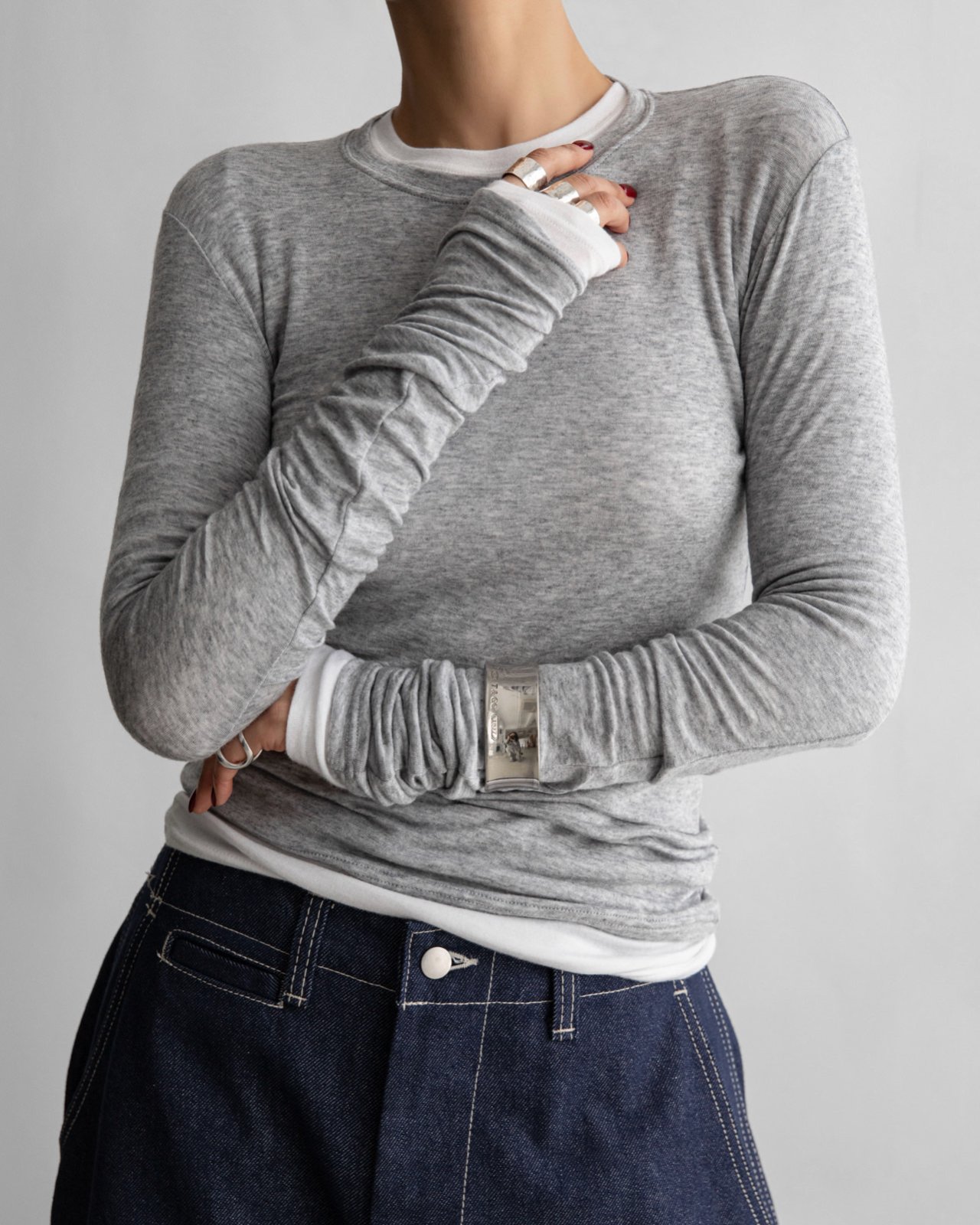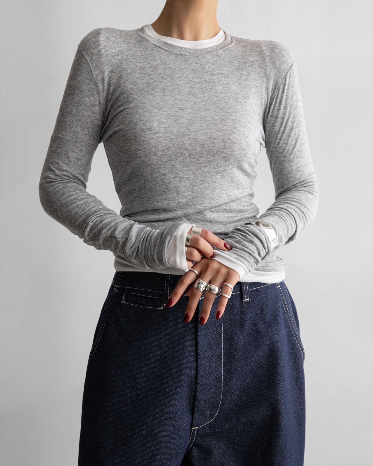 (PAPER MOON) CLASSIC LONG SLEEVED SHEER SLUB CREWNECK TEE : GREY