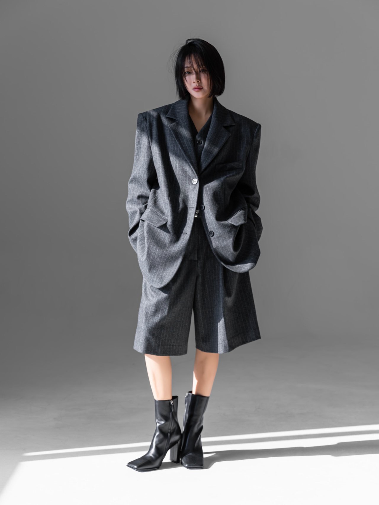 (PAPER MOON) FLANNEL WOOL SET - UP TAILORED VEST : HEATHER GREY STRIPED
