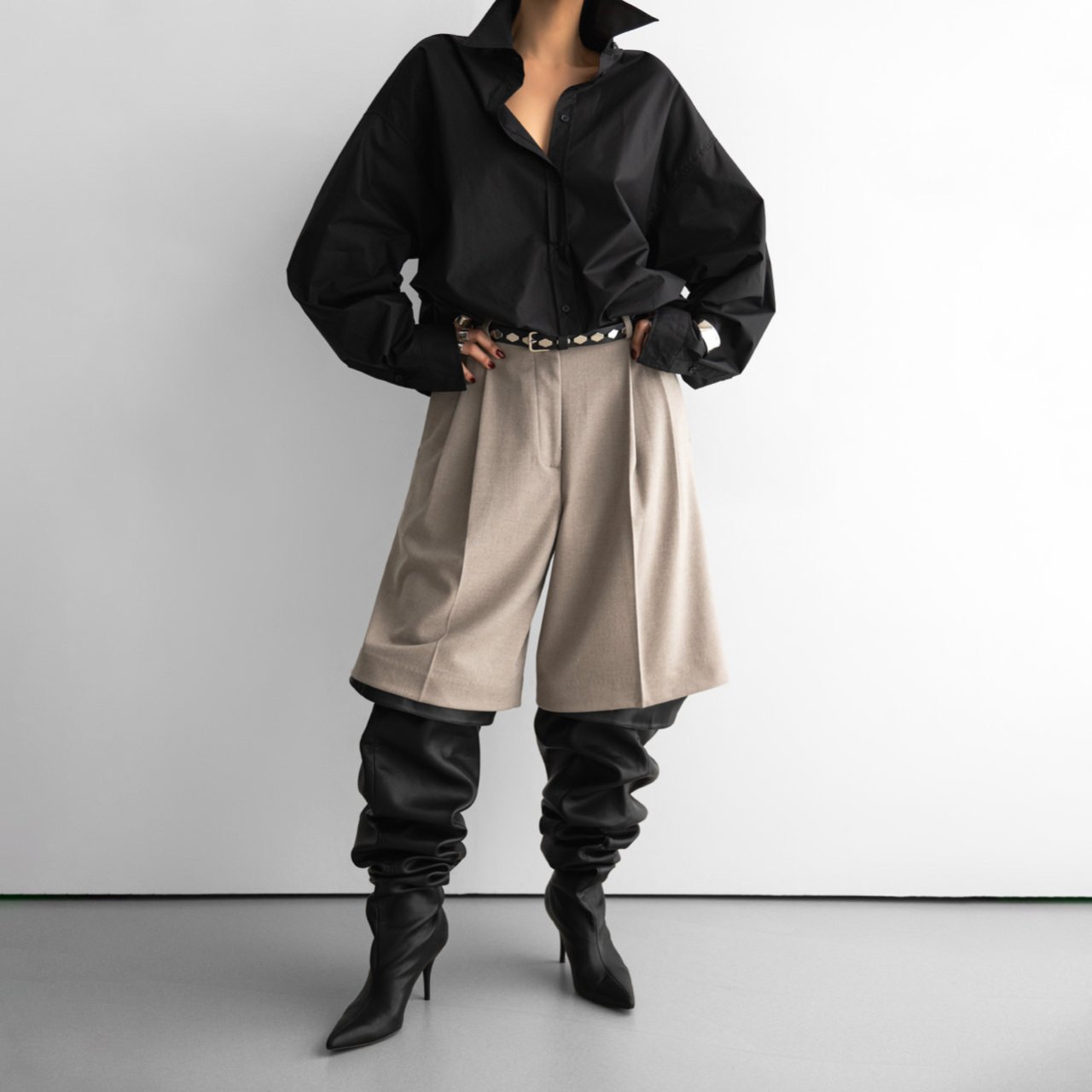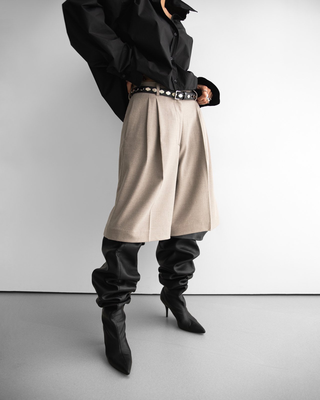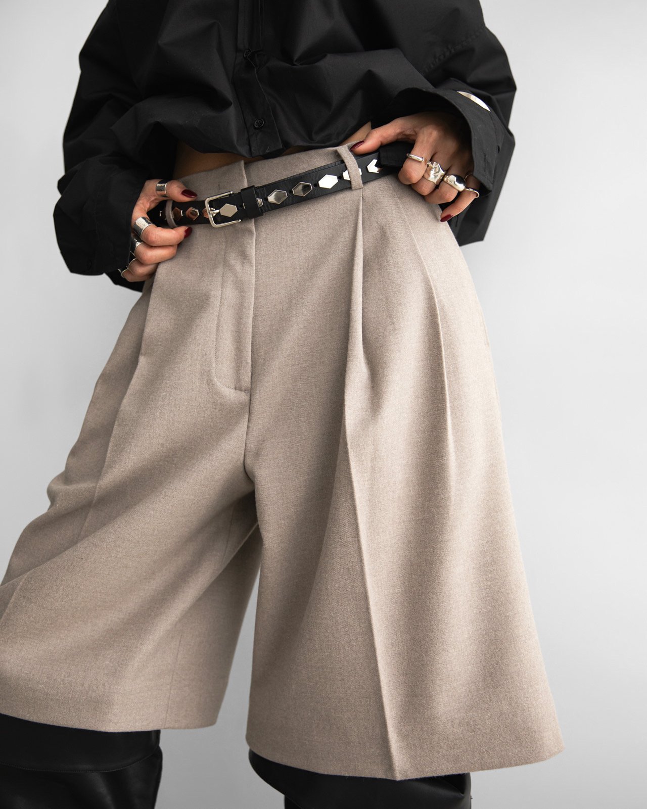 (PAPER MOON) FLANNEL WOOL SET - UP BERMUDA PANTS : BEIGE