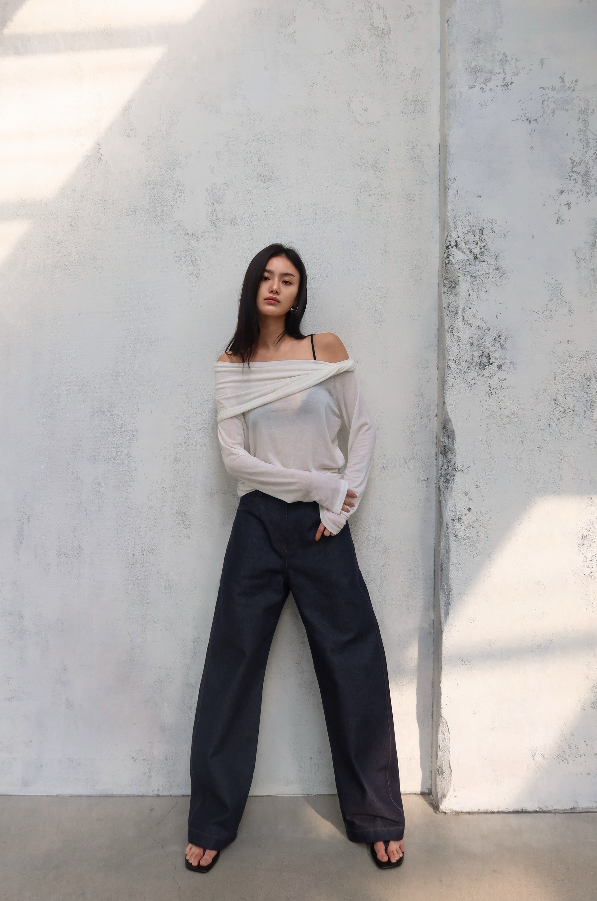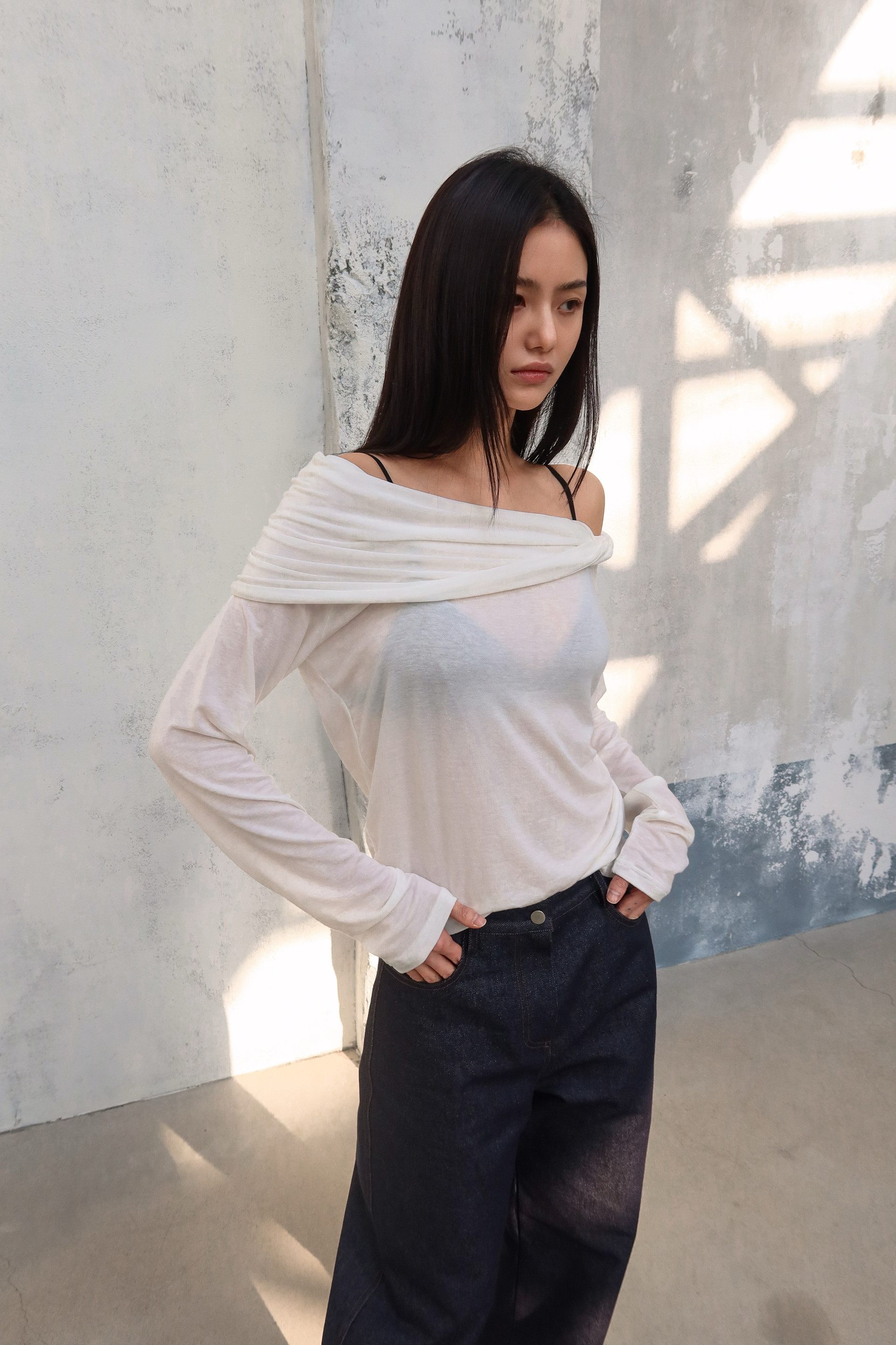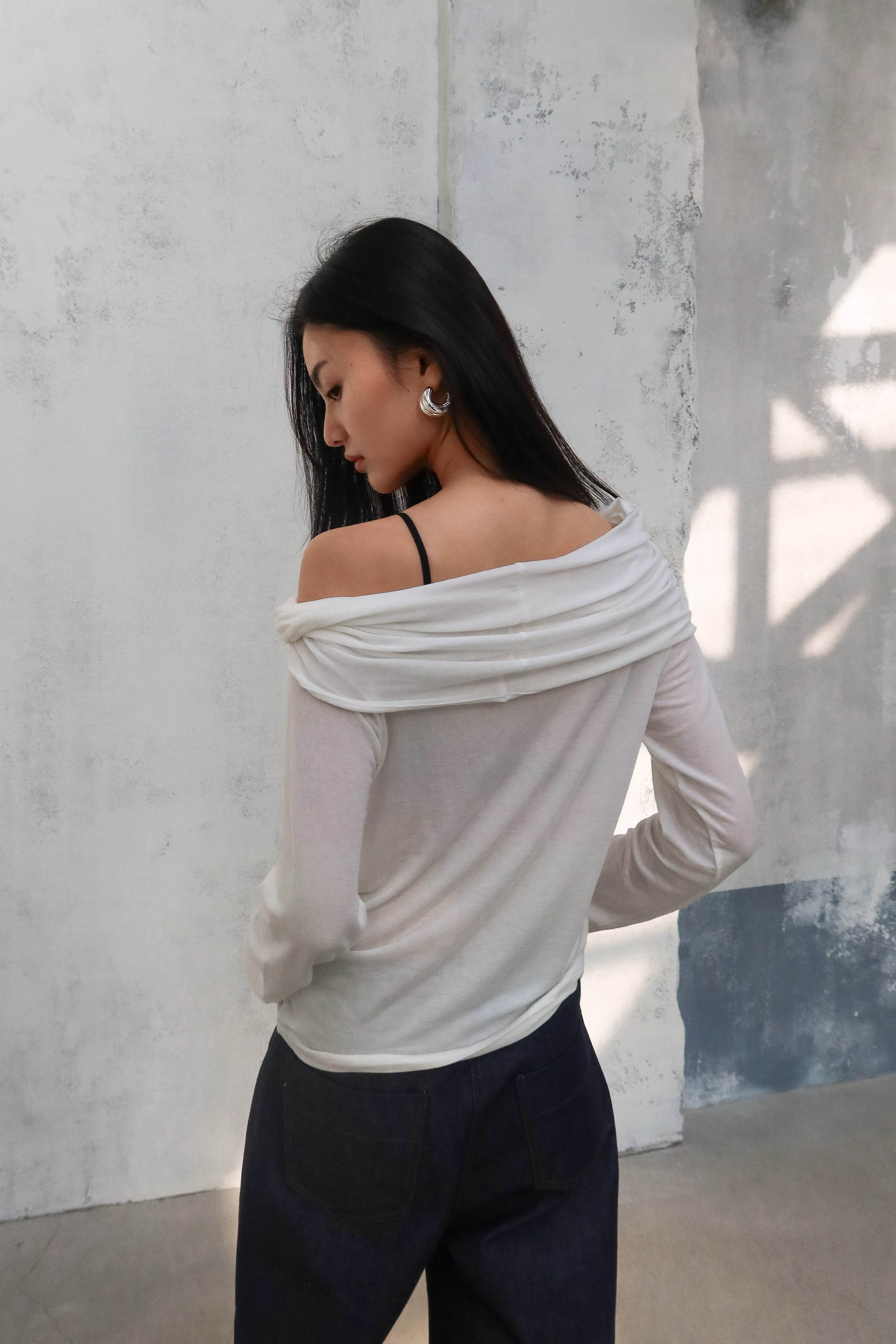 (BESIDE YOU) SHOULDER TWIST TOP : WHITE