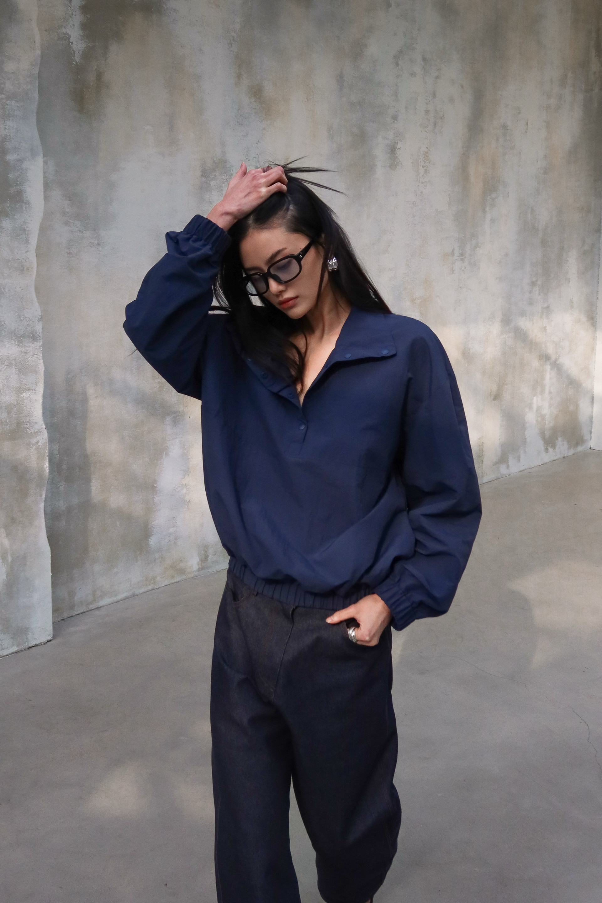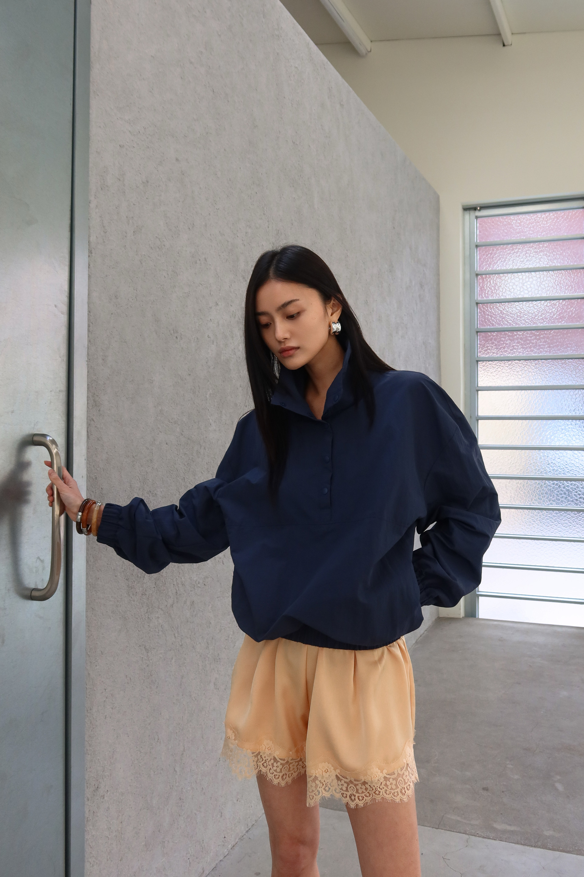 (BESIDE YOU) HALF SNAP ANORAK JACKET : NAVY