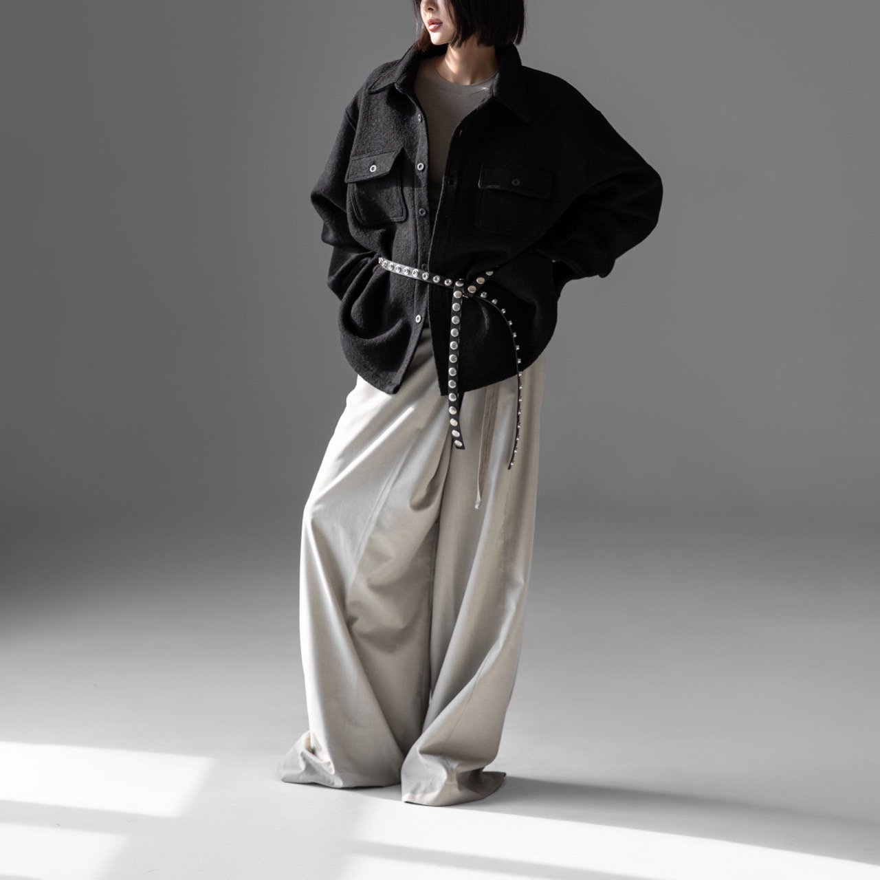 (PAPER MOON) CASENTINO WOOL OVERSIZED POCKET BUTTON DOWN SHIRT : BLACK