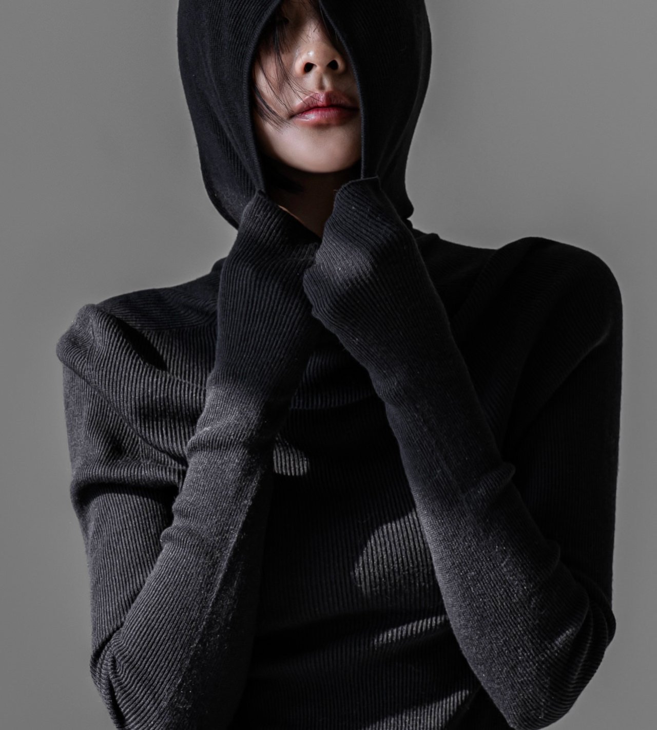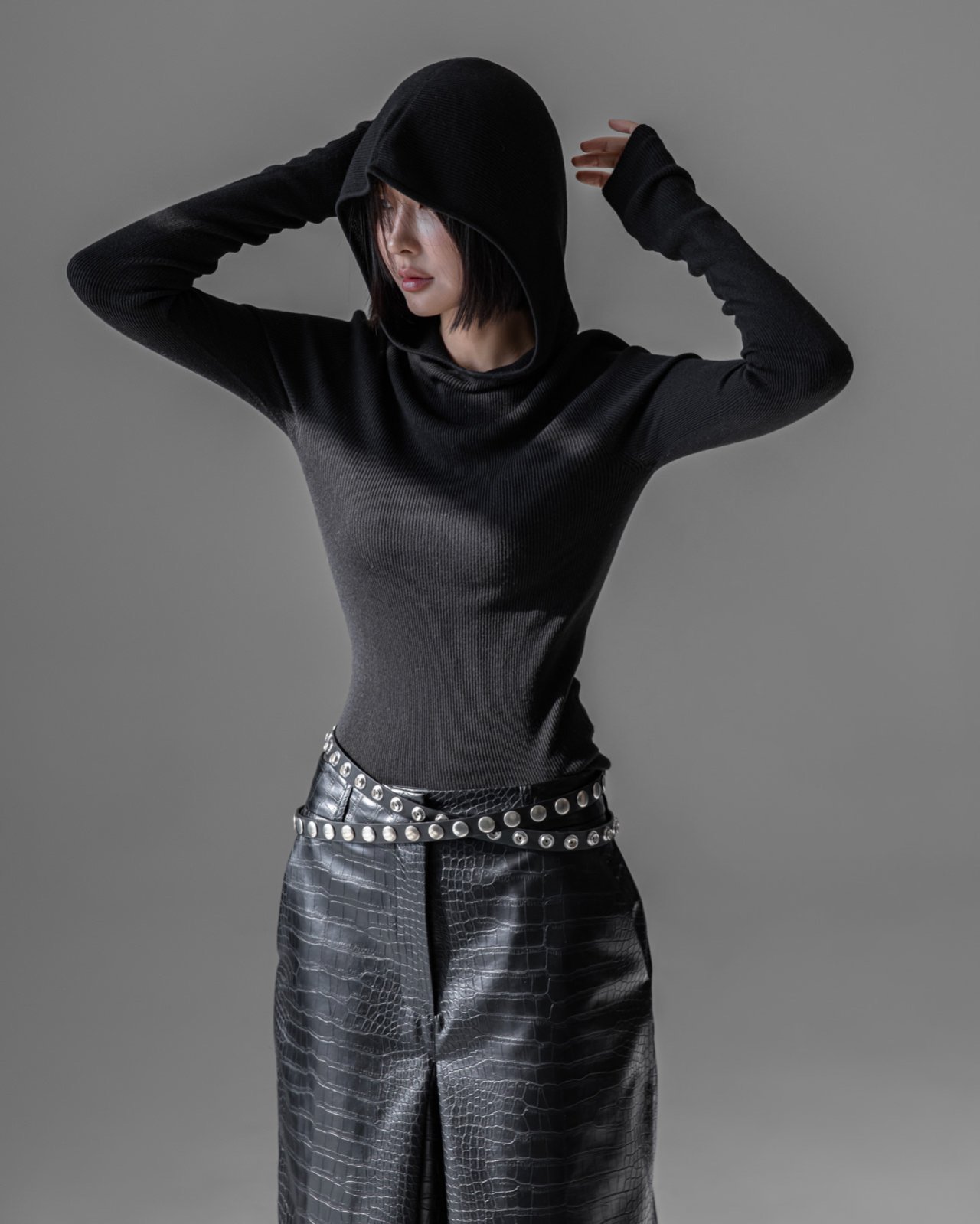 (PAPER MOON) WHOLE GARMENT HOODED KNIT TOP : BLACK