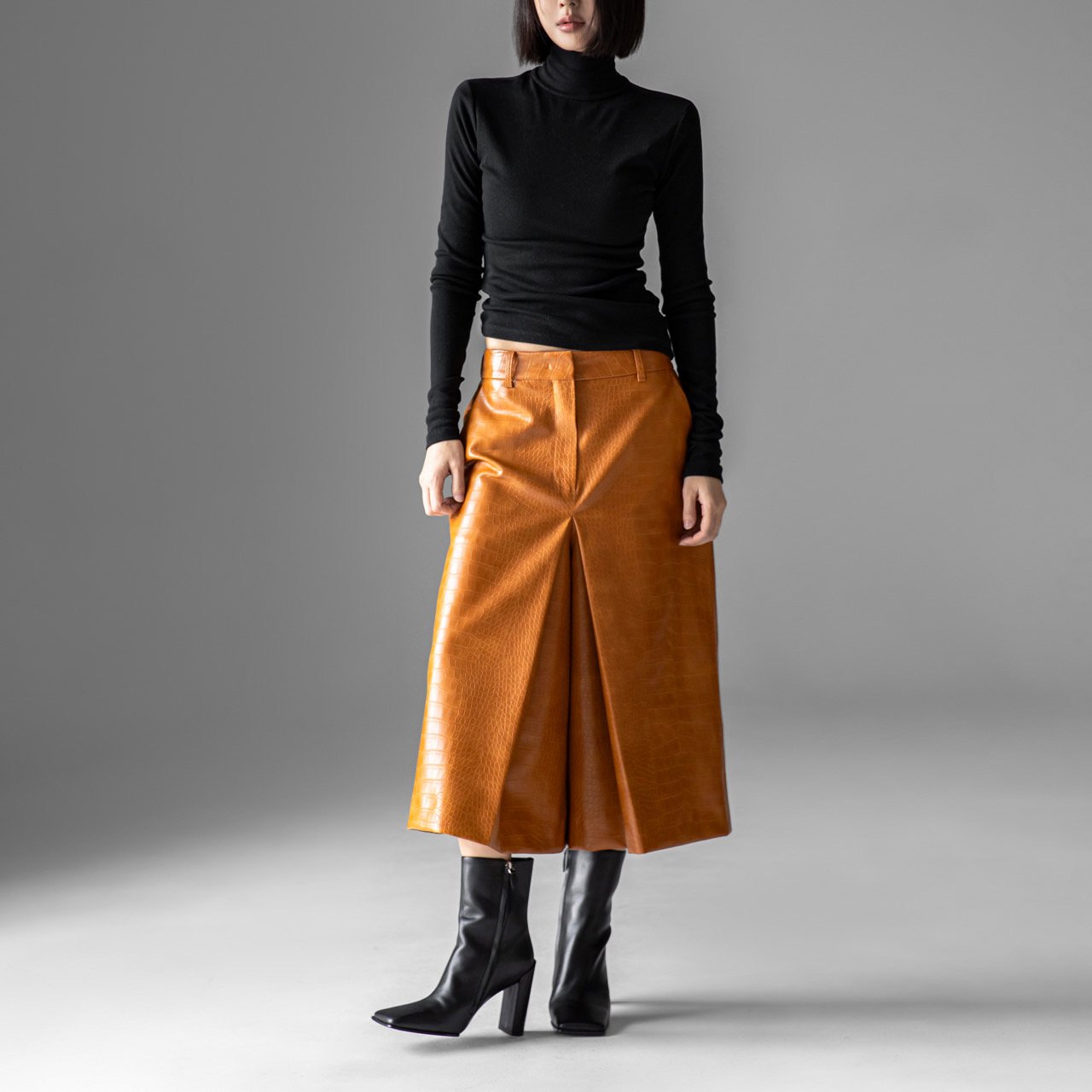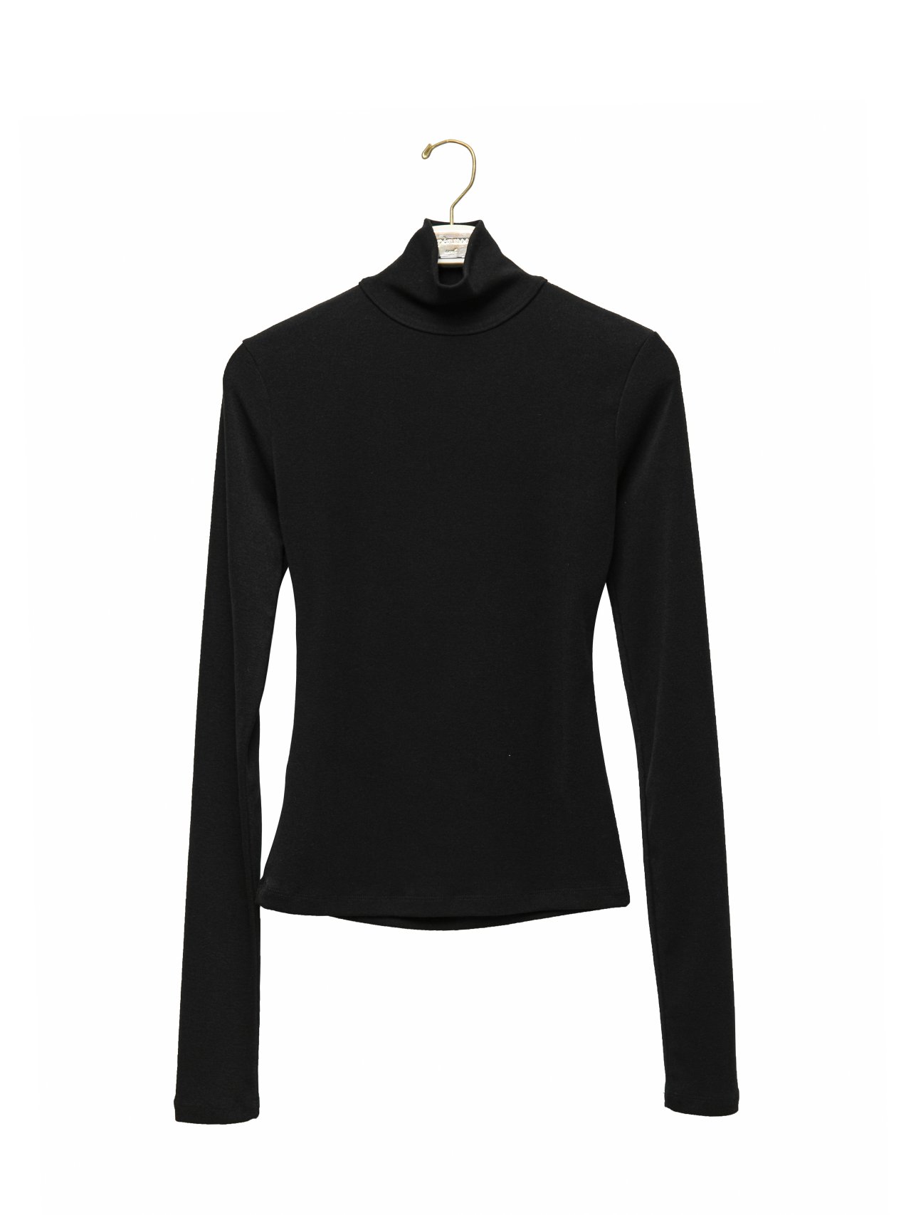 (PAPER MOON) BACK OPEN DETAIL TURTLENECK LONG SLEEVED T - SHIRT : BLACK