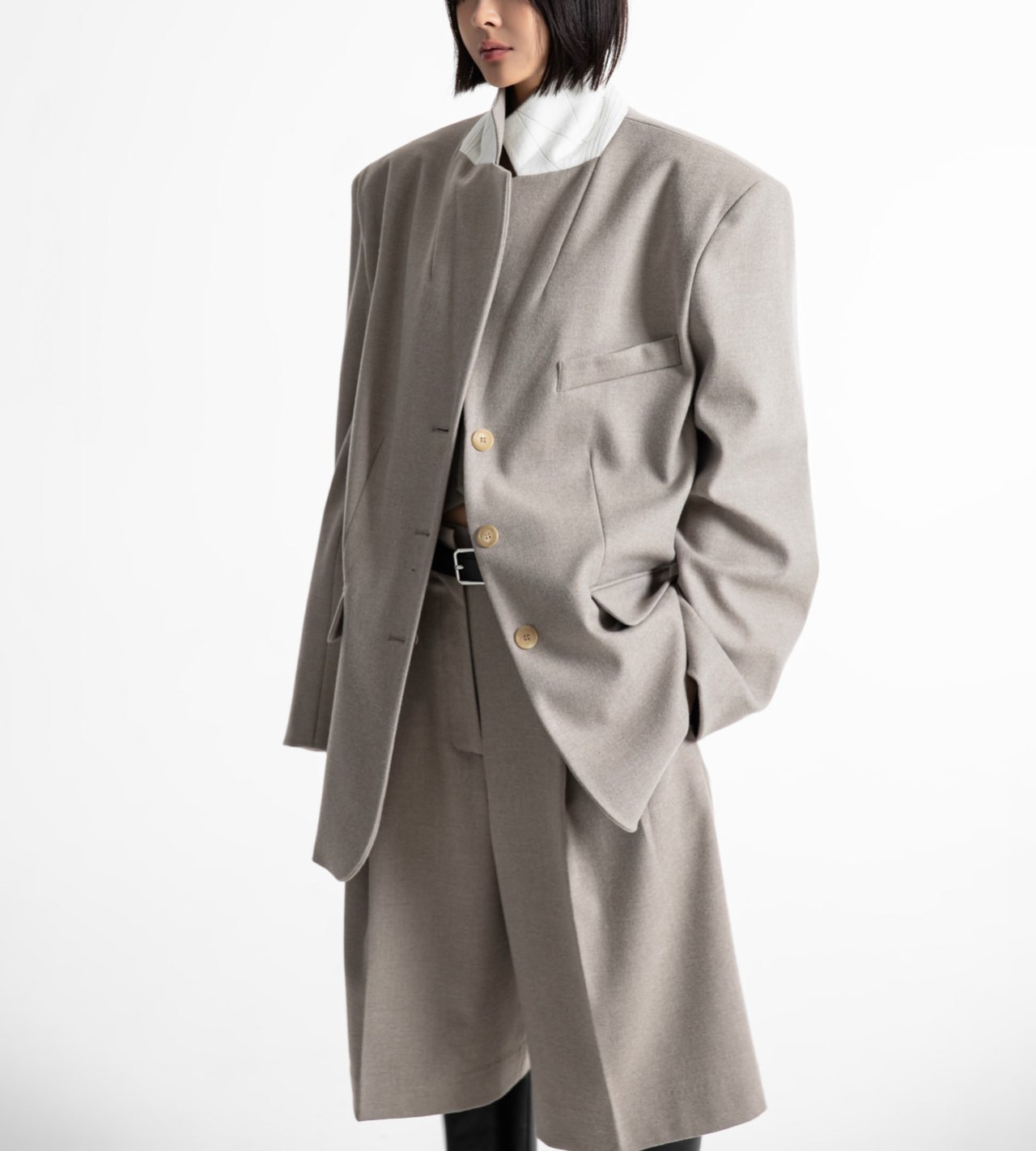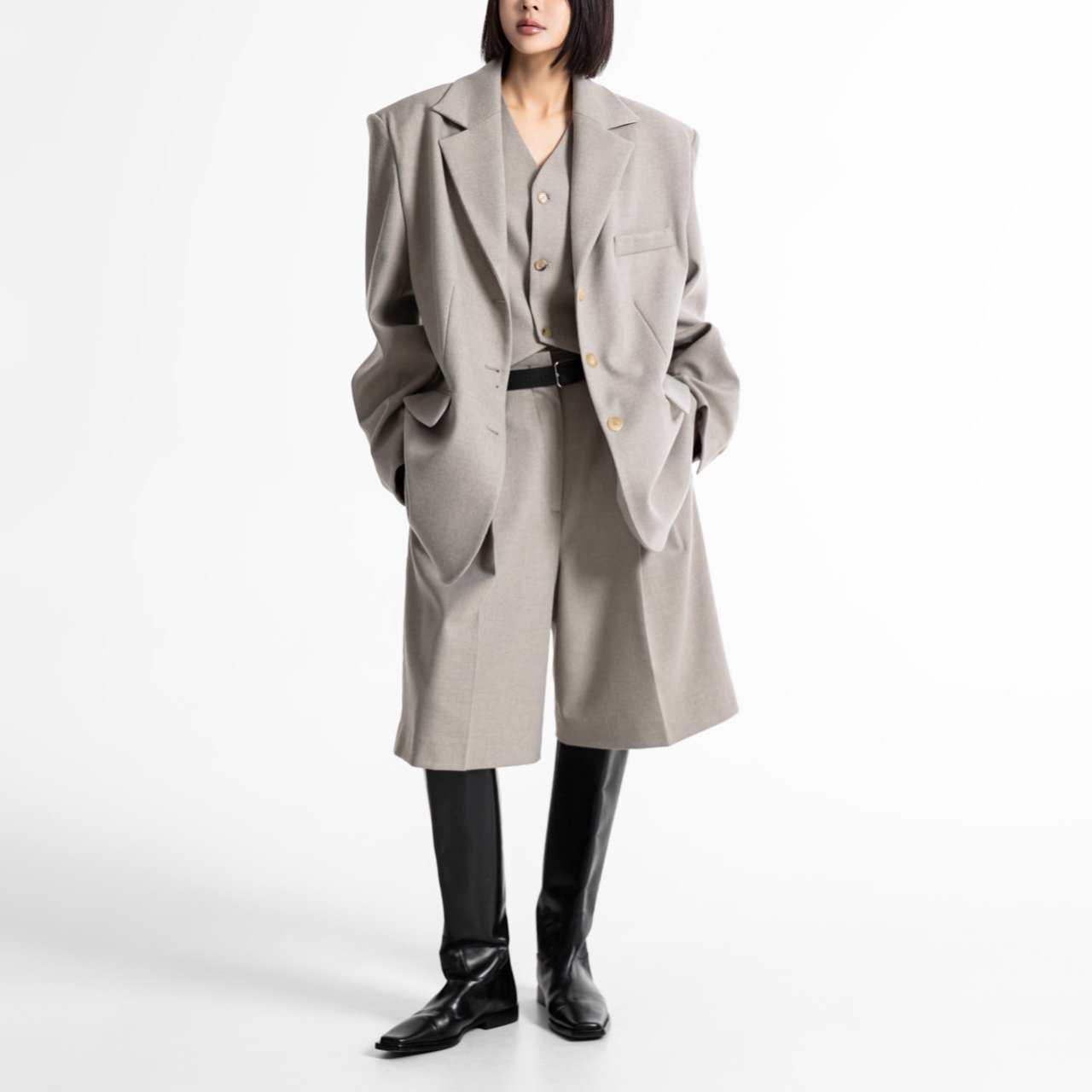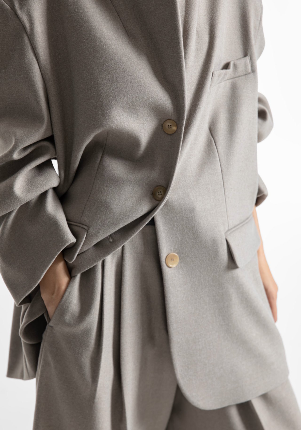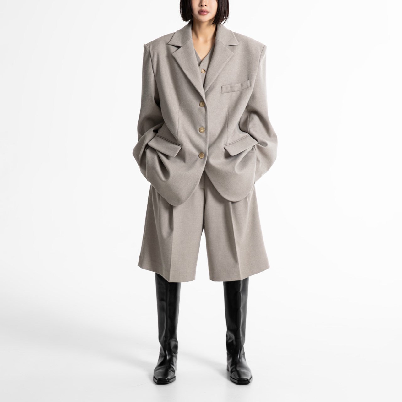 (PAPER MOON) FLANNEL WOOL SET - UP TAILORED BLAZER : BEIGE