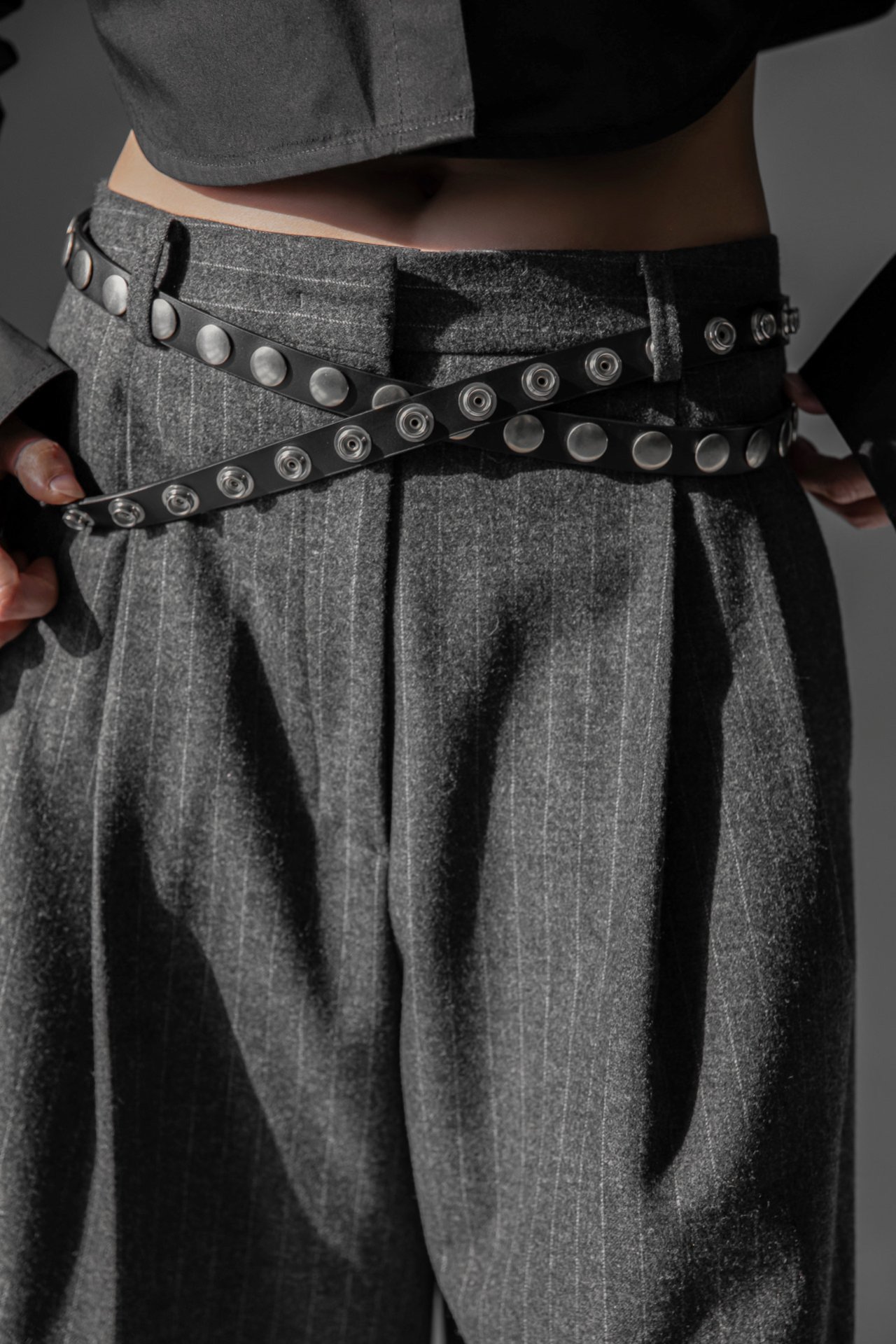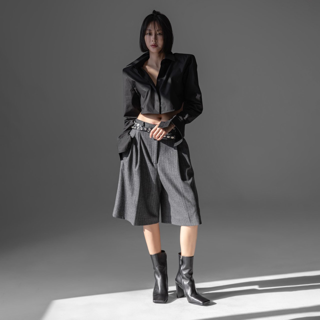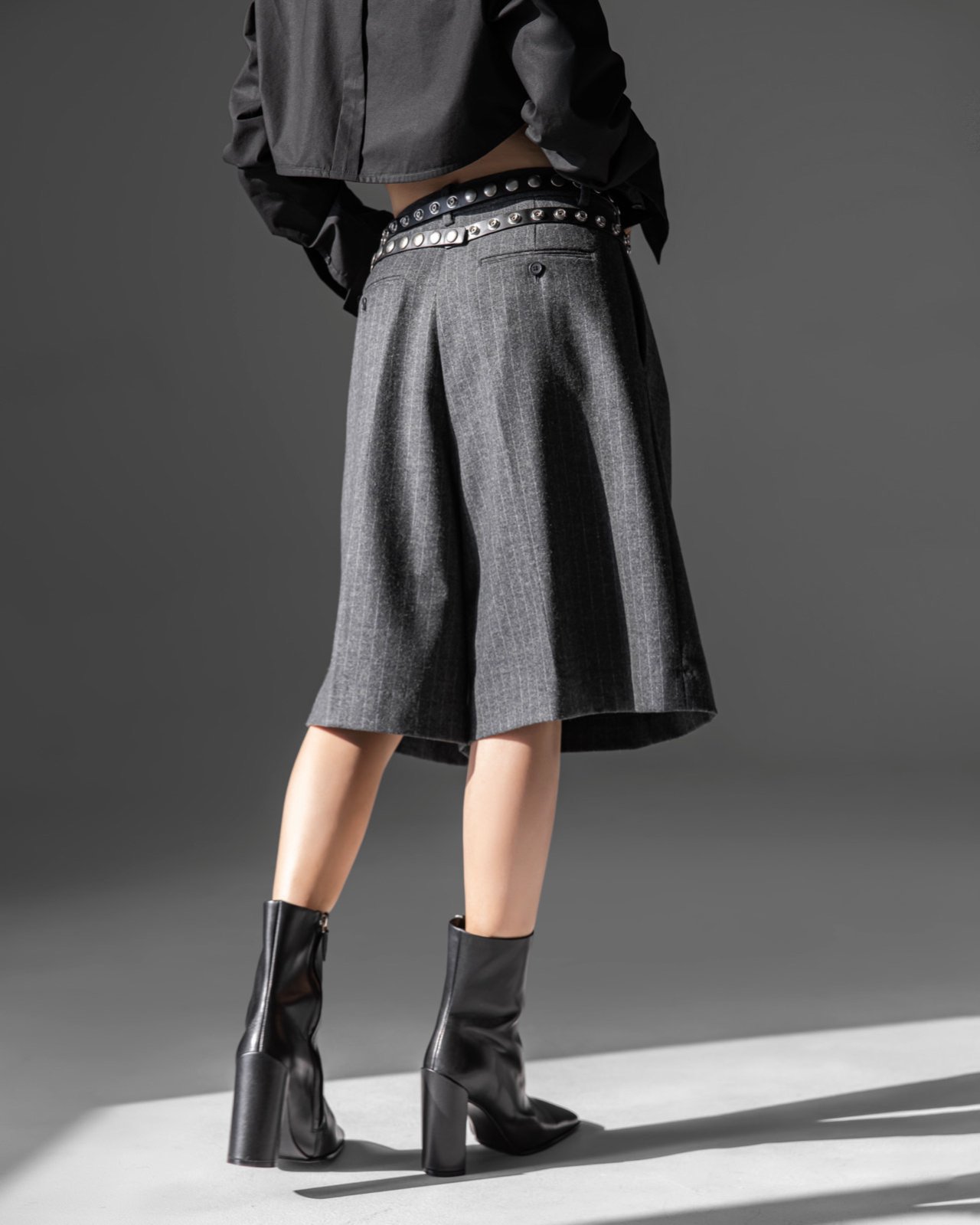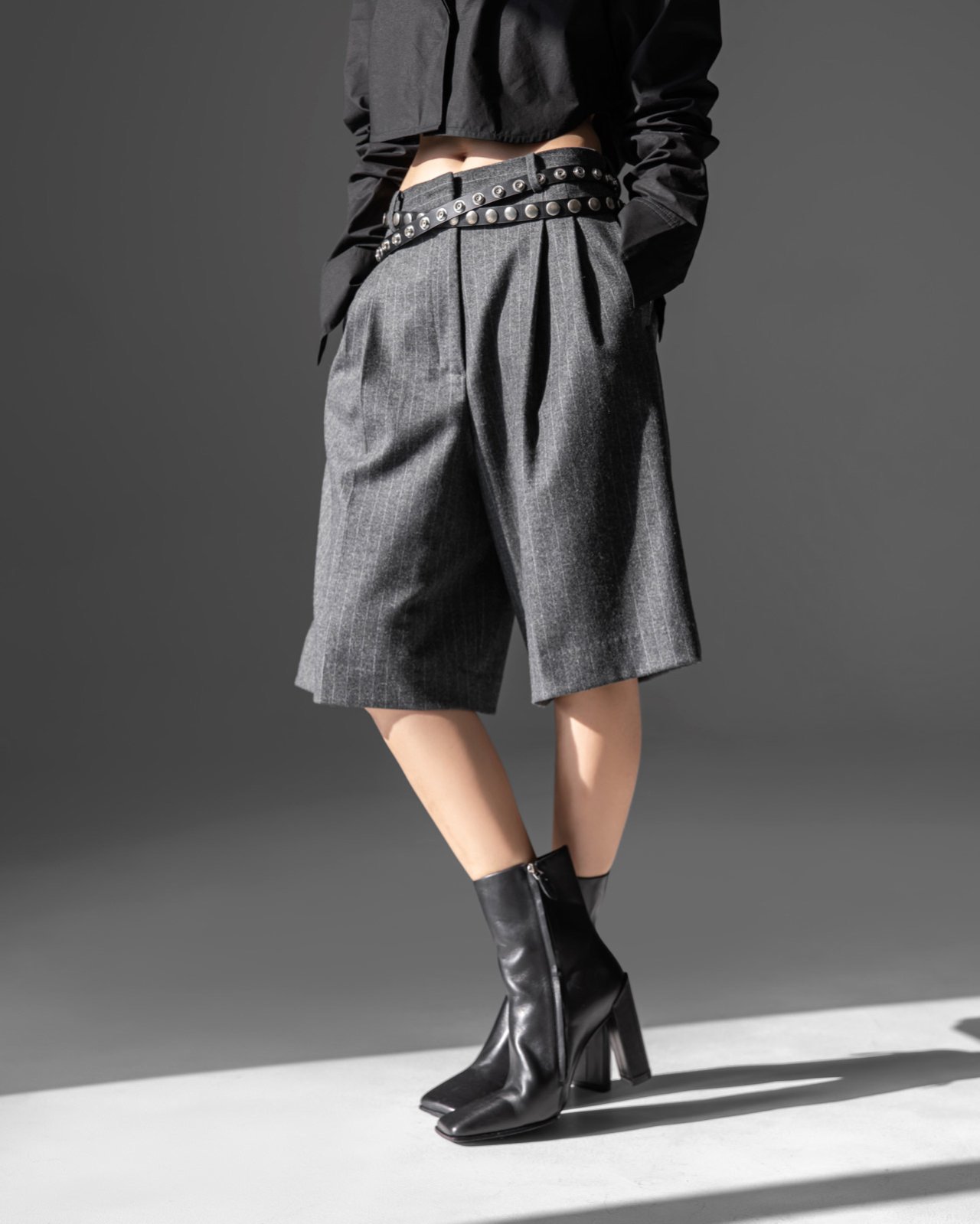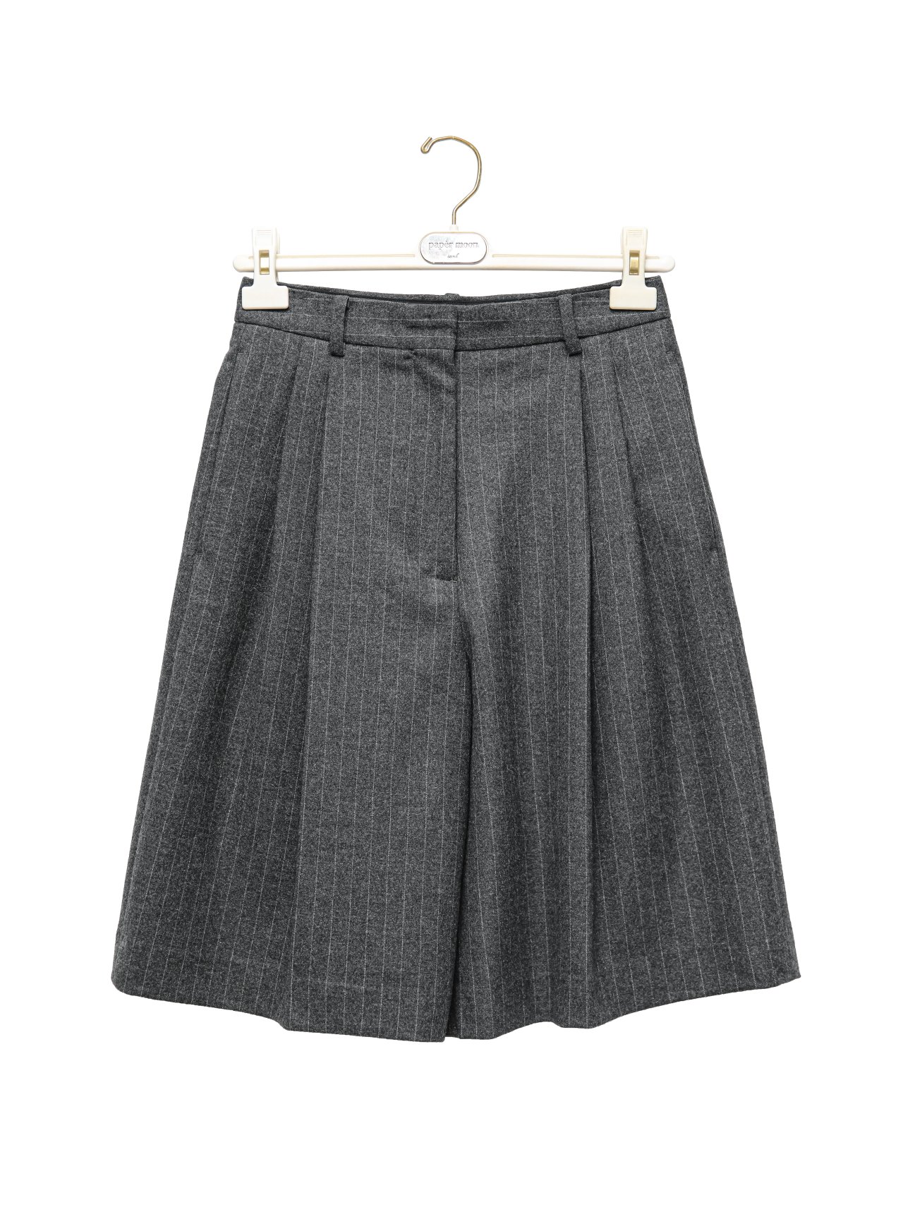 (PAPER MOON) FLANNEL WOOL SET - UP BERMUDA PANTS : HEATHER GREY STRIPED