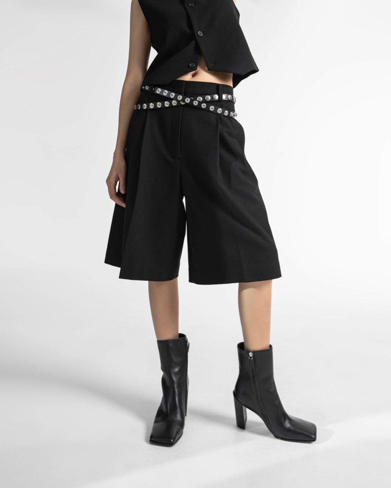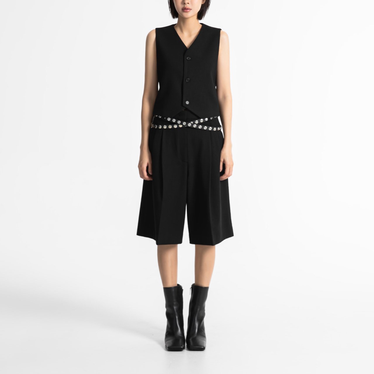 (PAPER MOON) FLANNEL WOOL SET - UP BERMUDA PANTS : BLACK