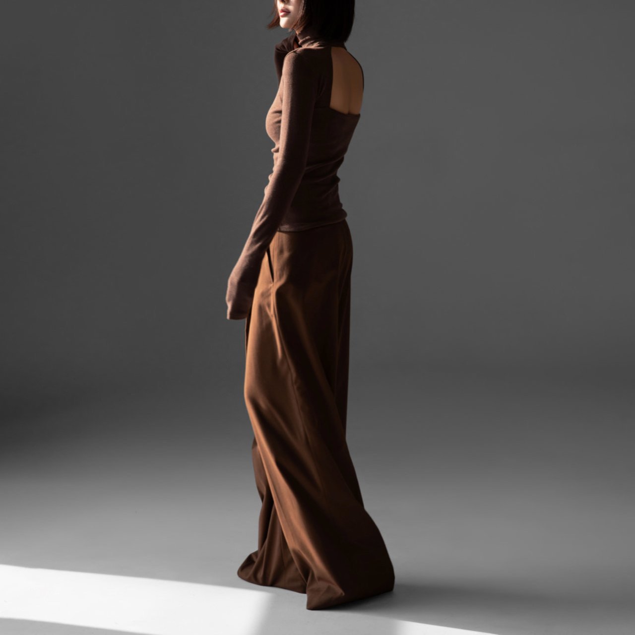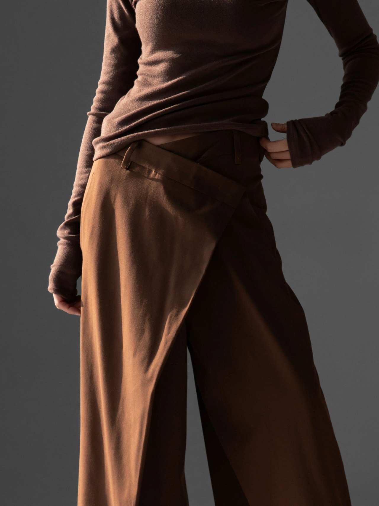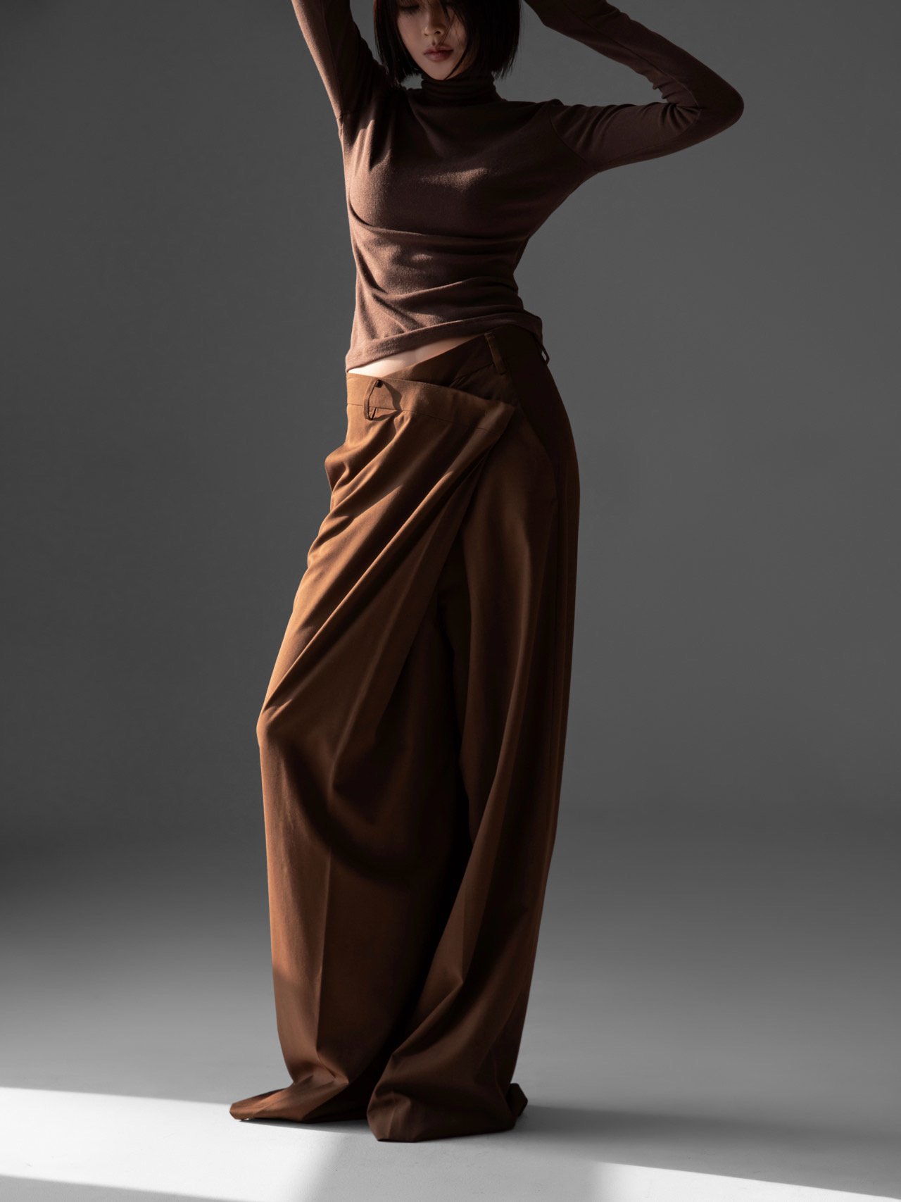 (PAPER MOON) ASYMMETRY PIN TUCK WIDE MAXI TROUSERS : BROWN