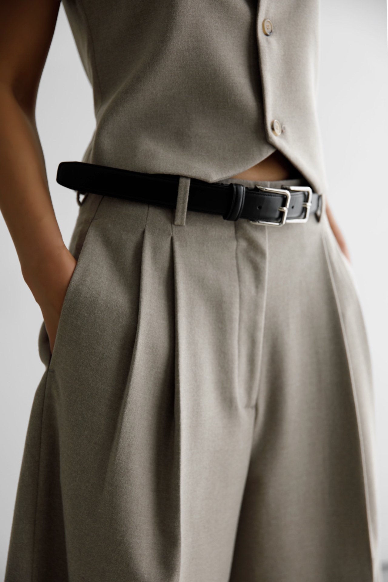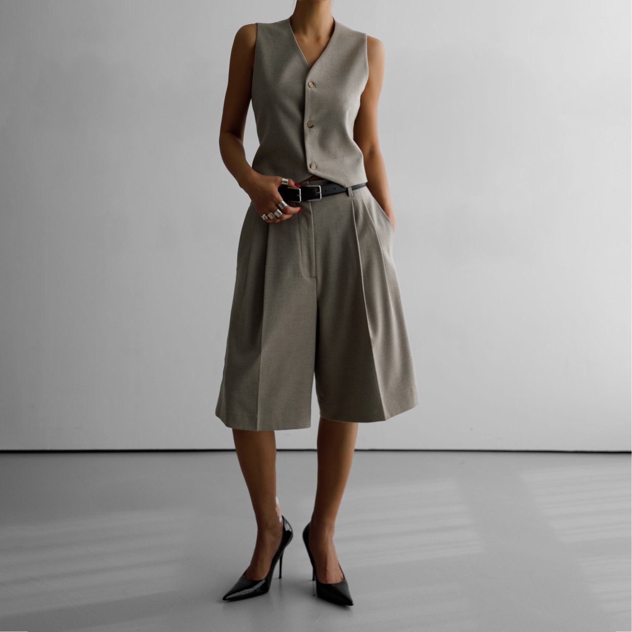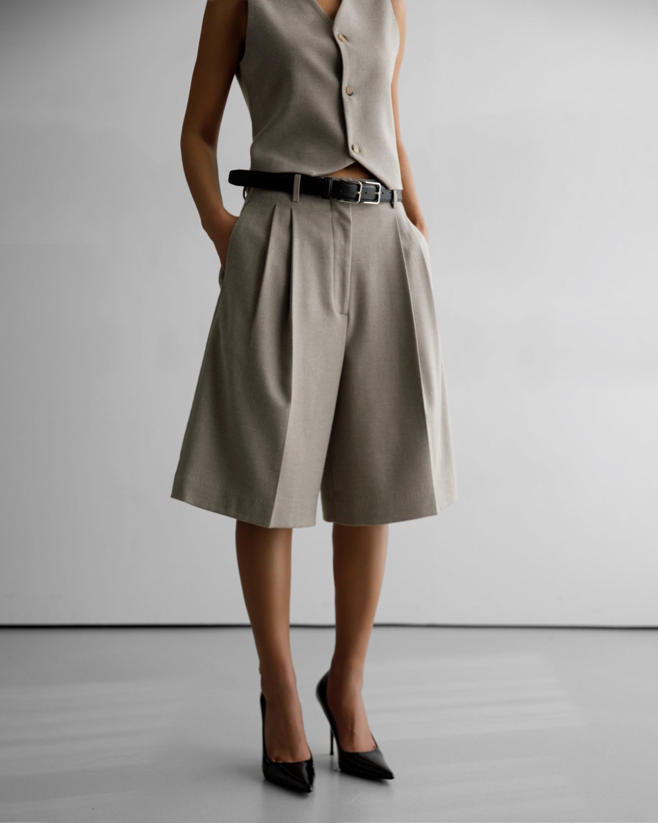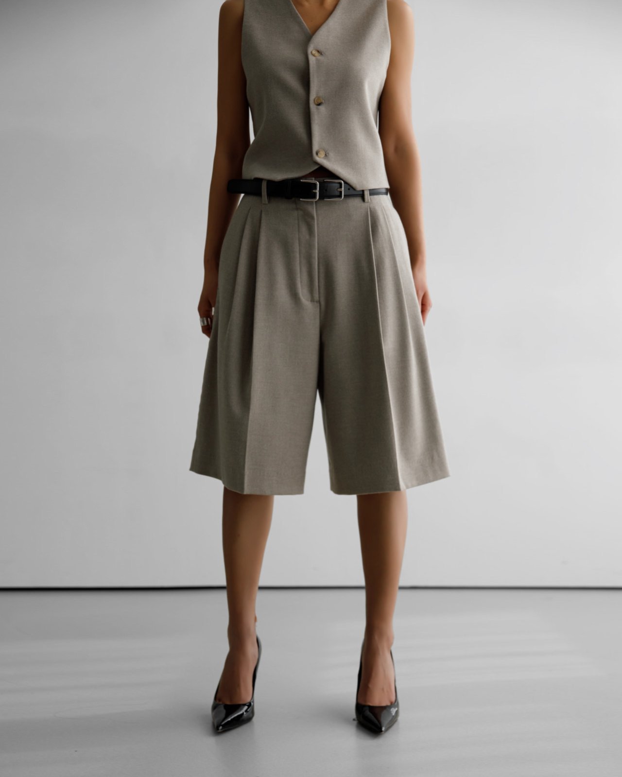 (PAPER MOON) FLANNEL WOOL SET - UP BERMUDA PANTS : BEIGE