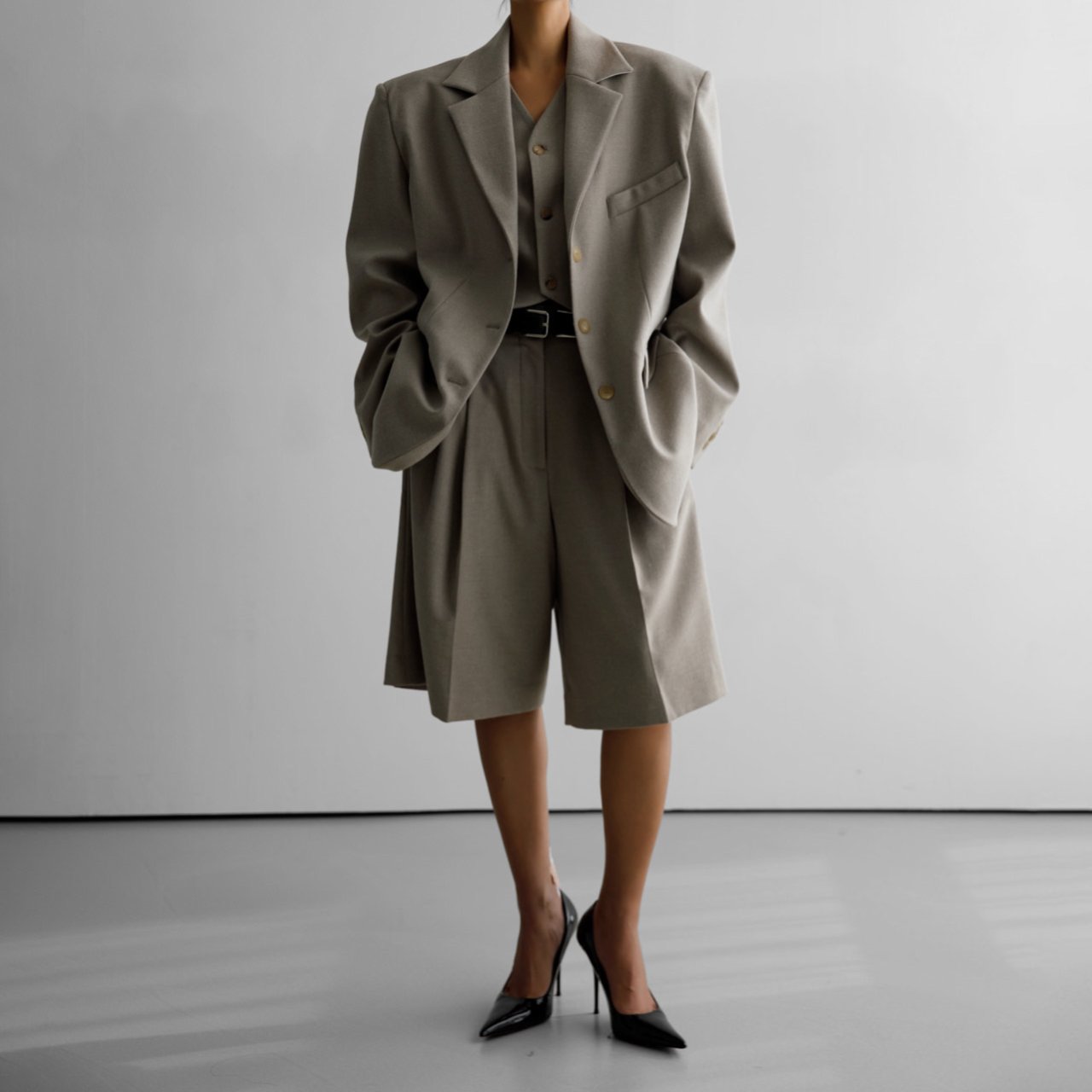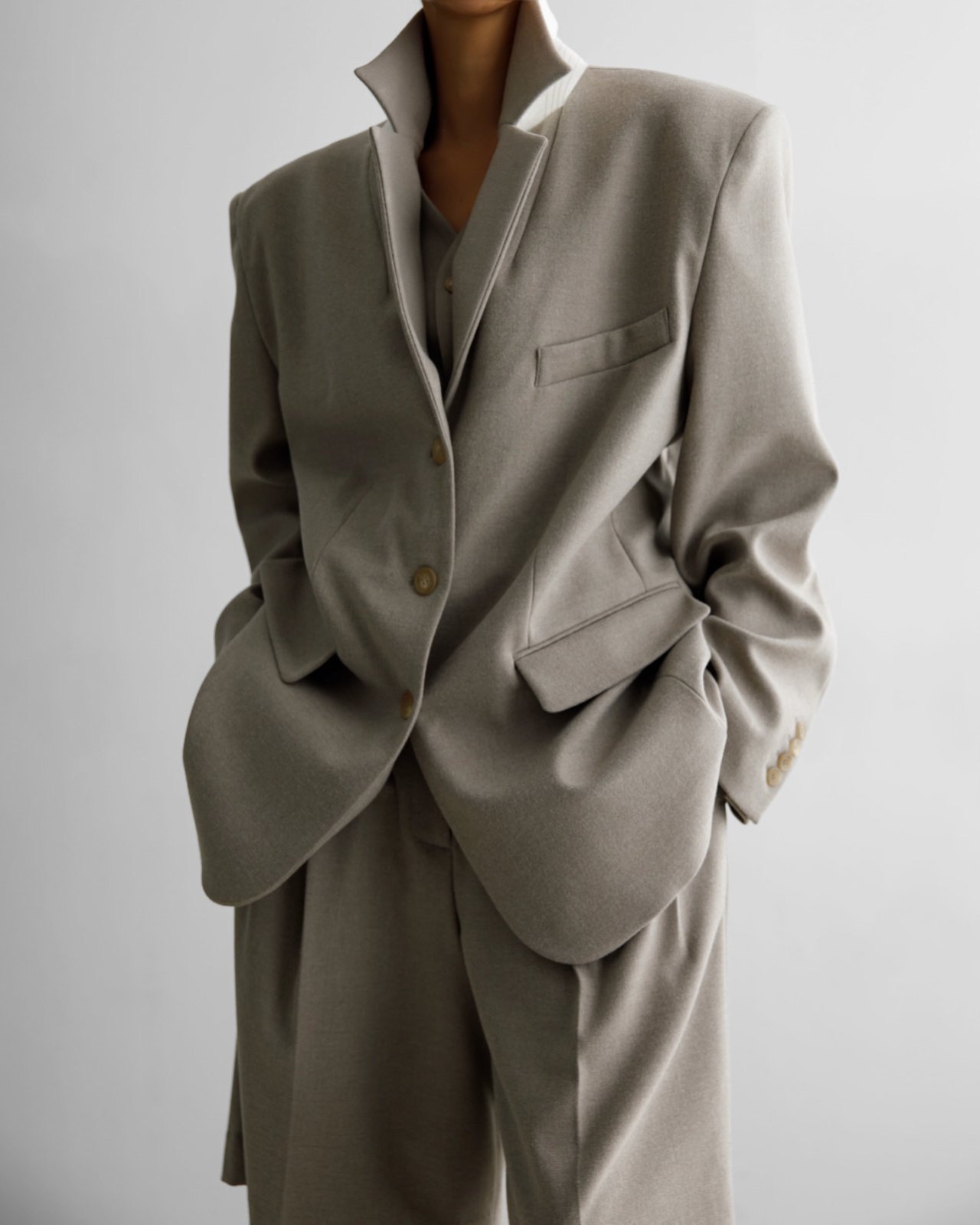 (PAPER MOON) FLANNEL WOOL SET - UP TAILORED BLAZER : BEIGE