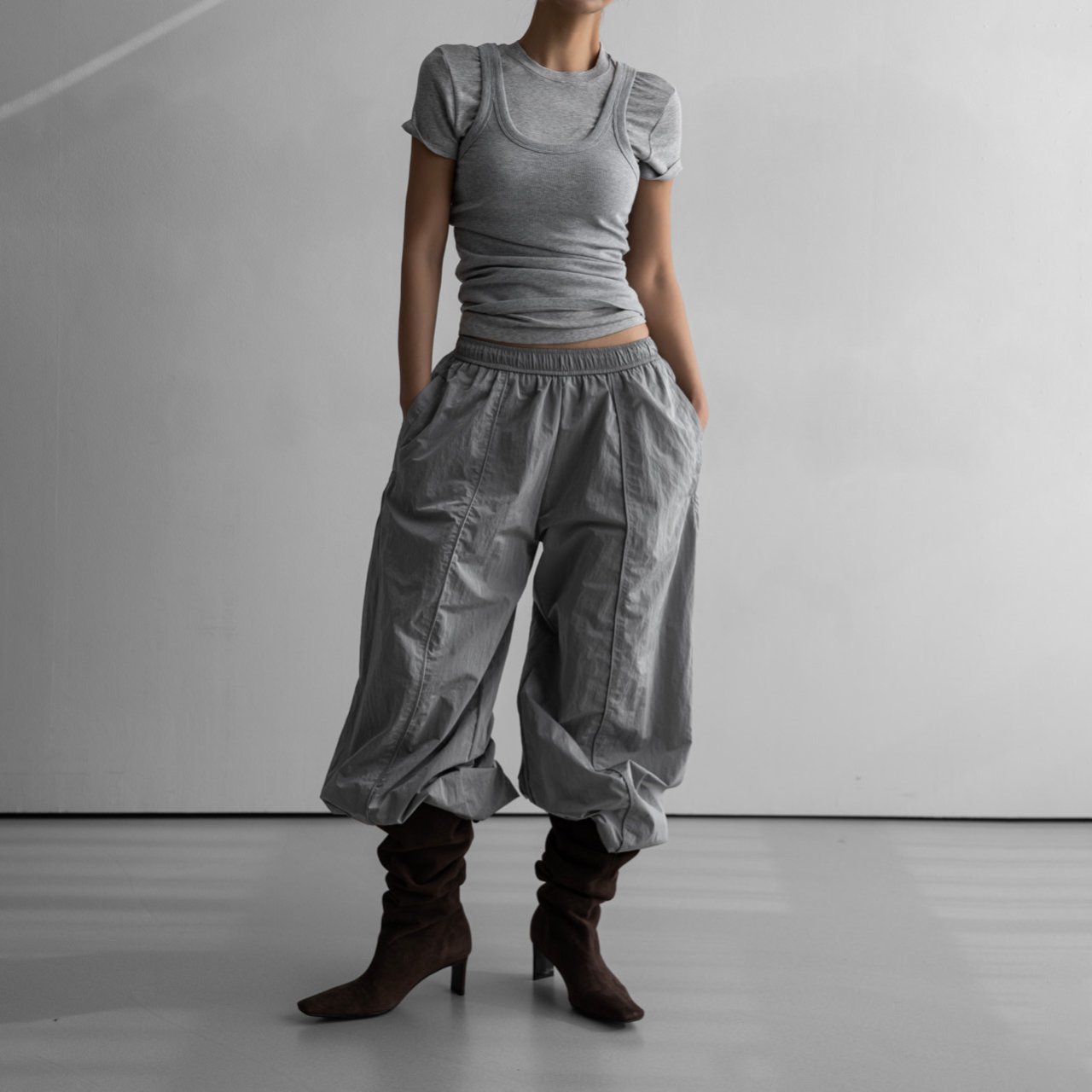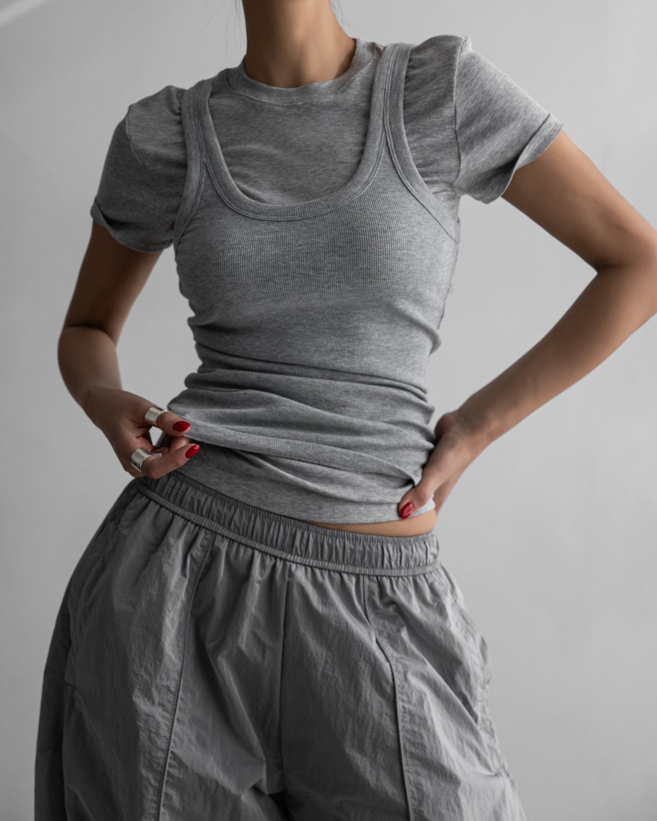 (PAPER MOON) SLEEVELESS RIB JERSEY TANK TOP : HEATHER GREY