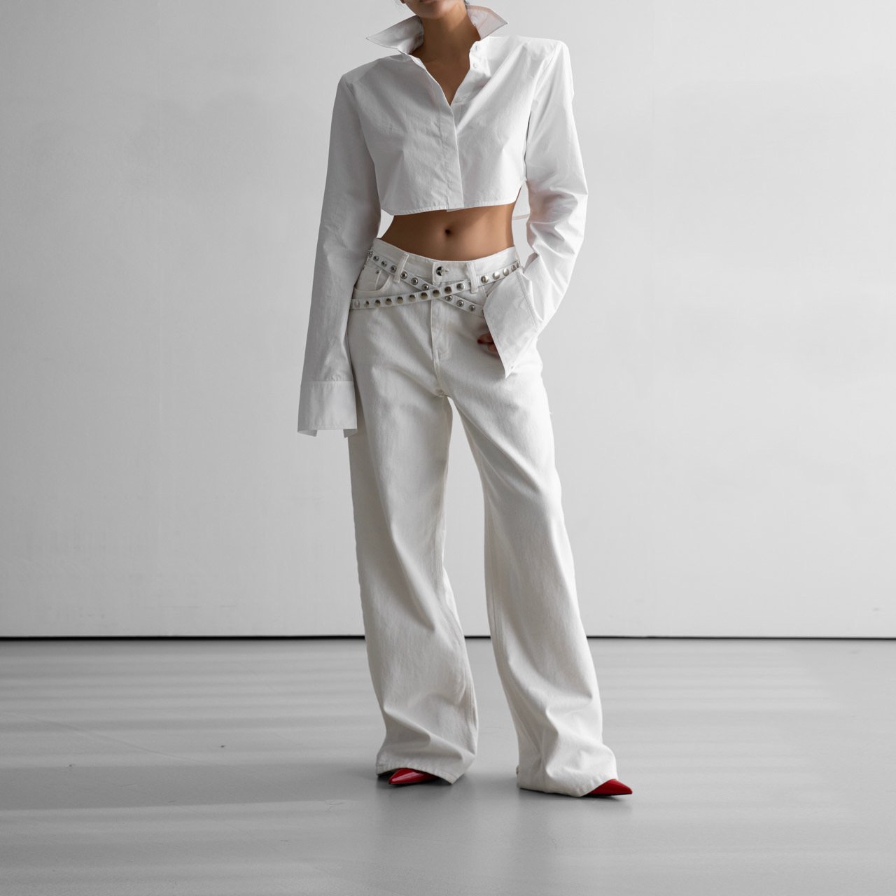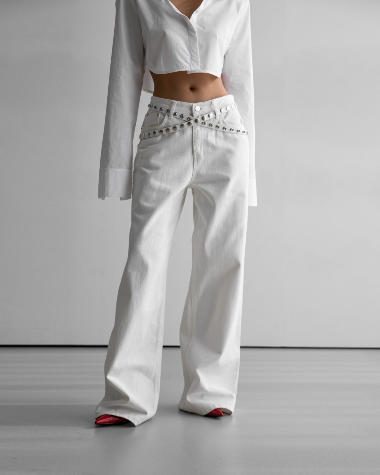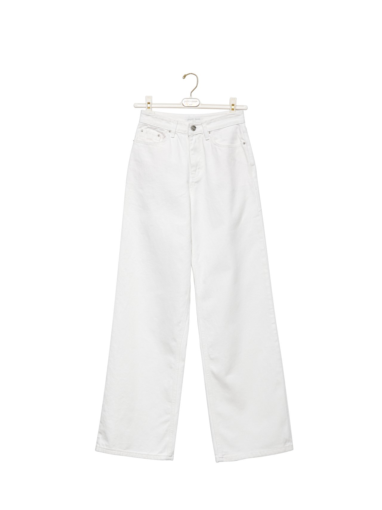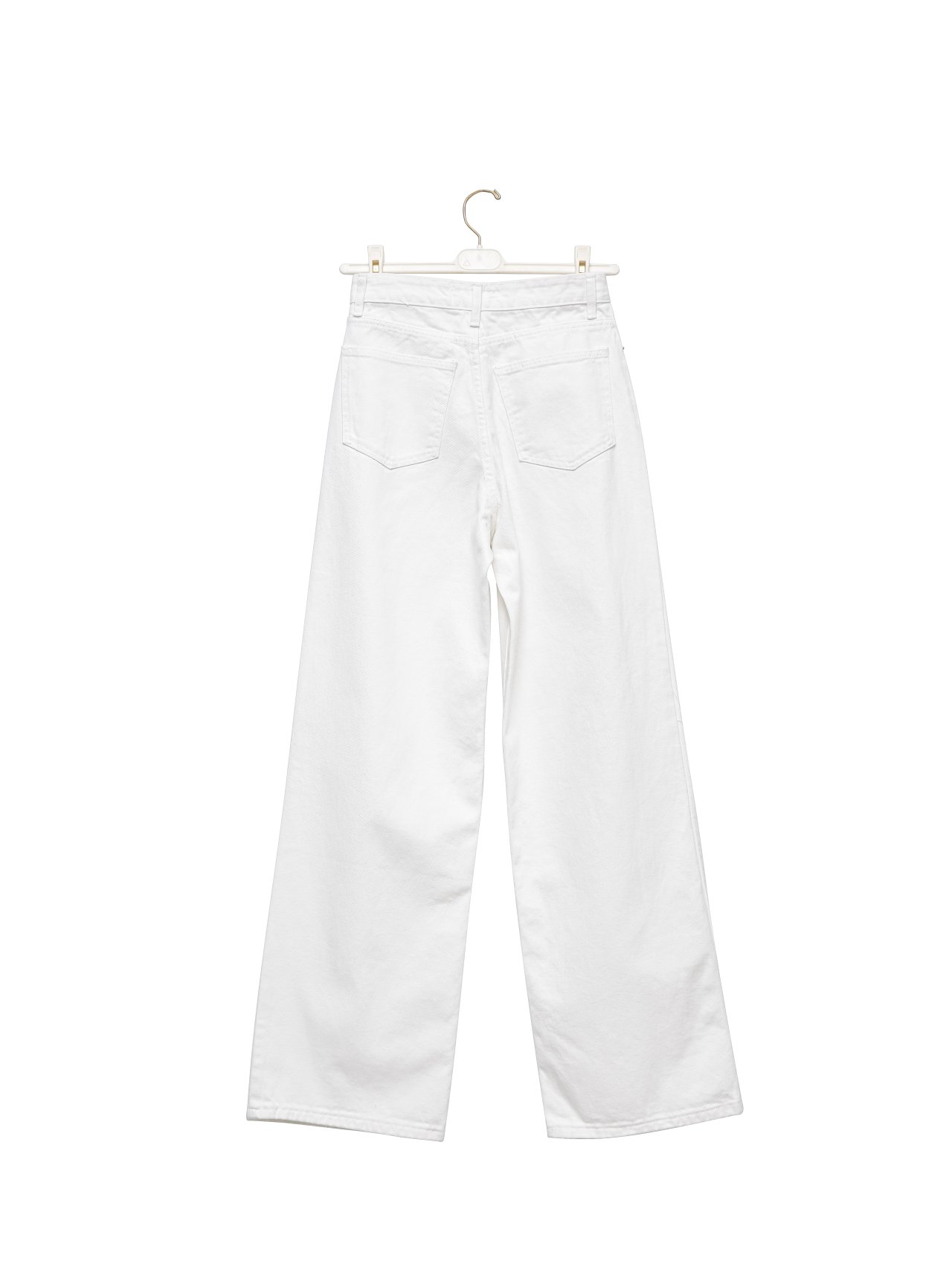 (PAPER MOON) HIGH RISE WIDE LEG WHITE DENIM PANTS : WHITE