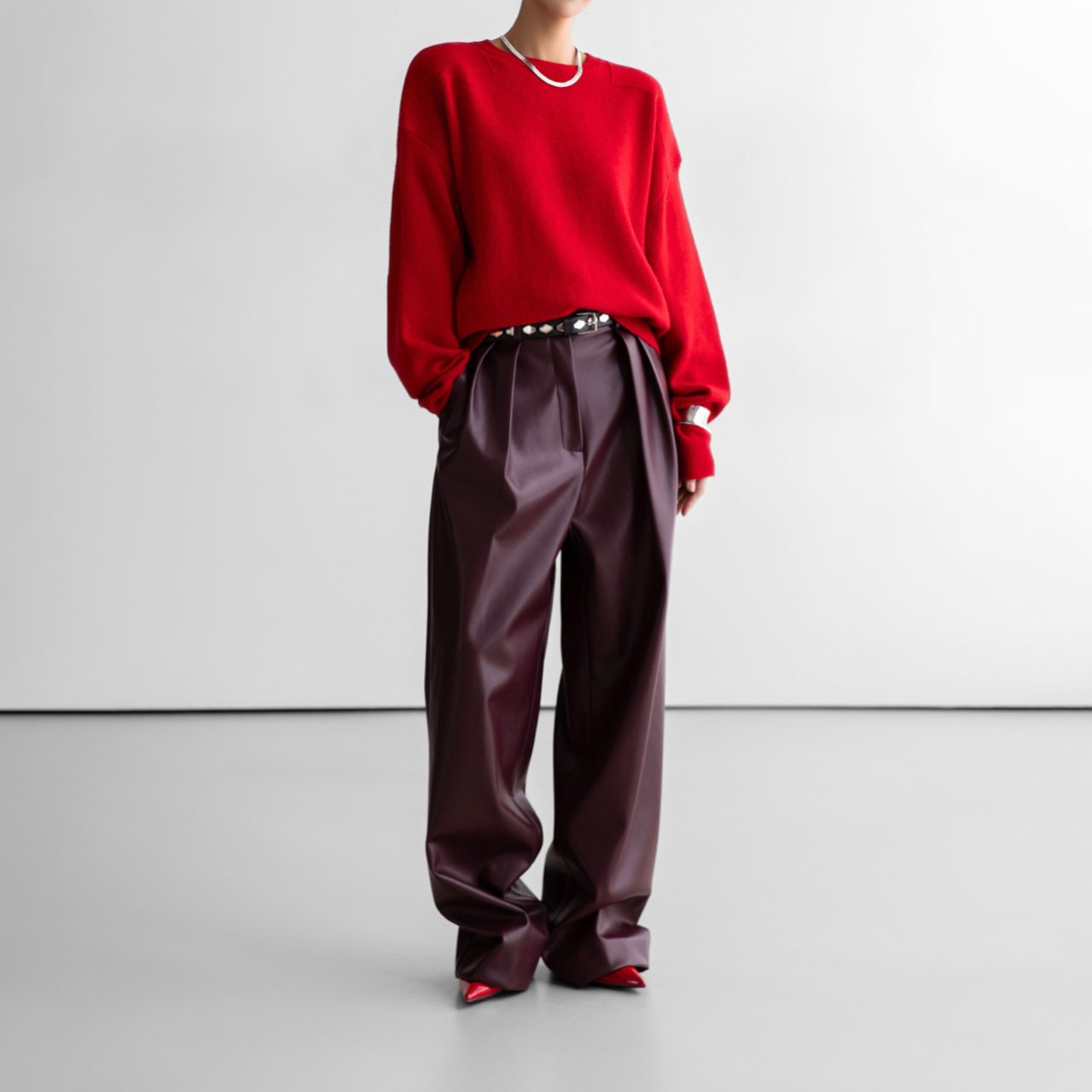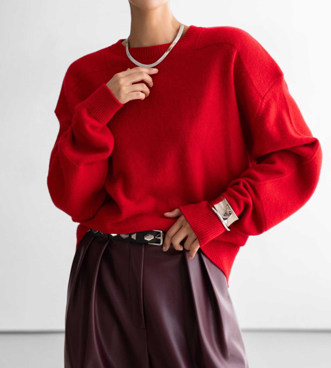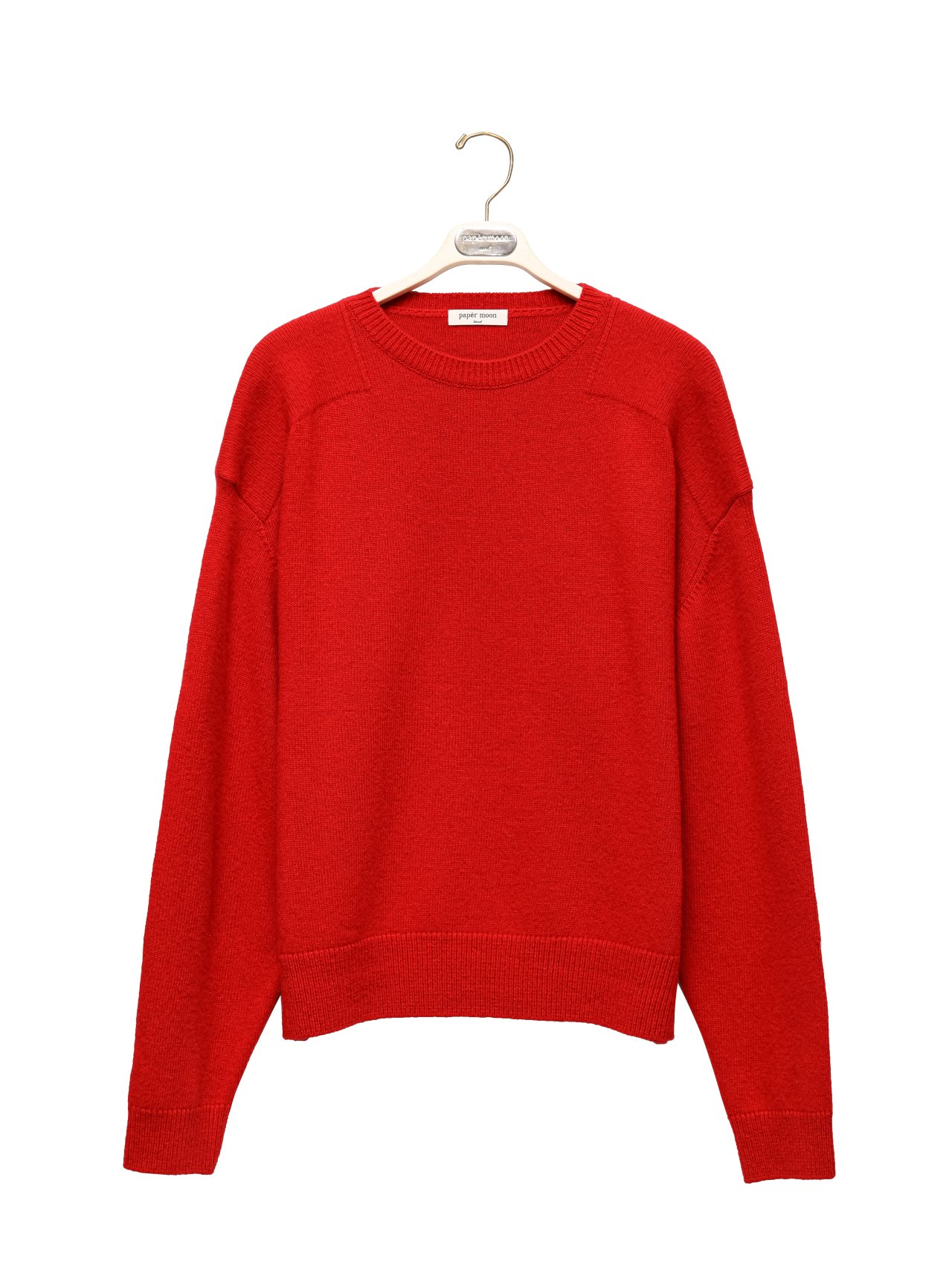 (PAPER MOON) DOUBLE KNITTING SHOULDER DETAIL ROUND NECK KNIT : RED