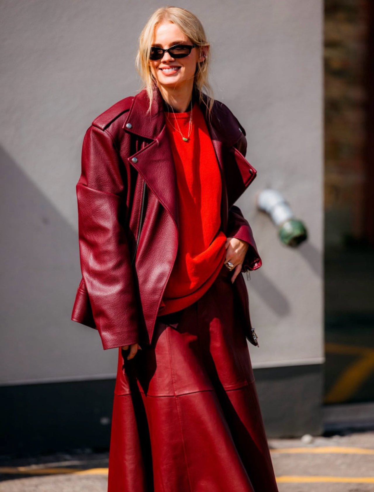 (PAPER MOON) OVERSIZED CHUNKY ZIPPED VEGAN LEATHER BIKER JACKET : BURGUNDY