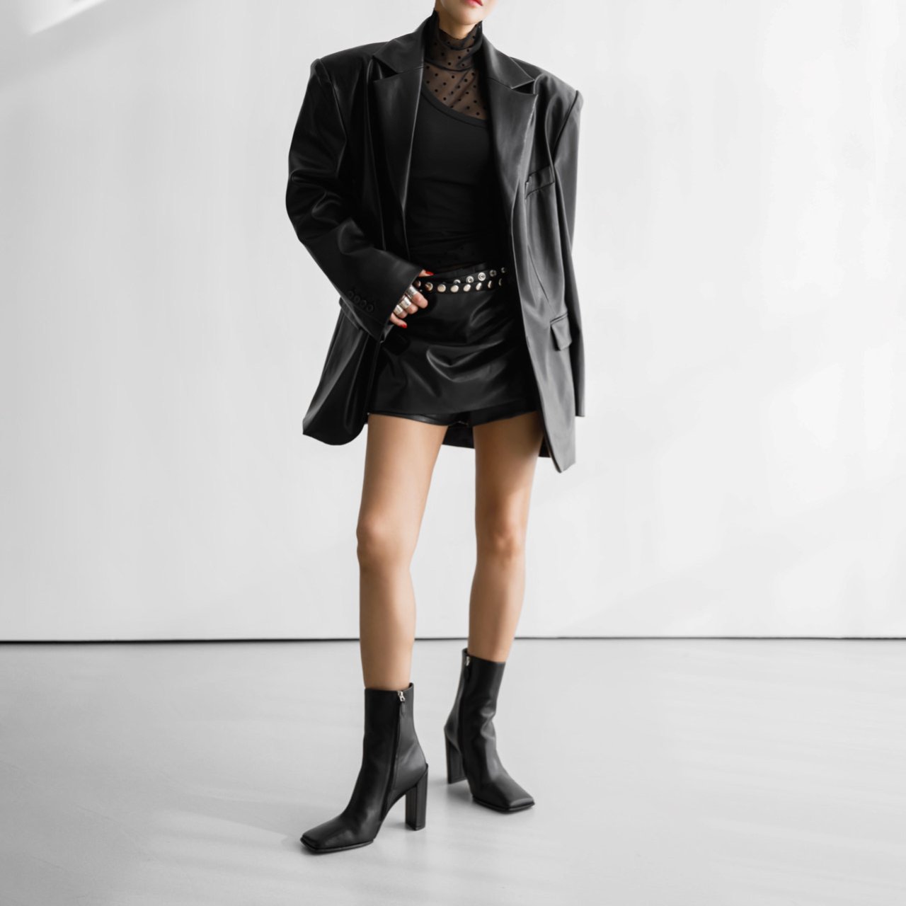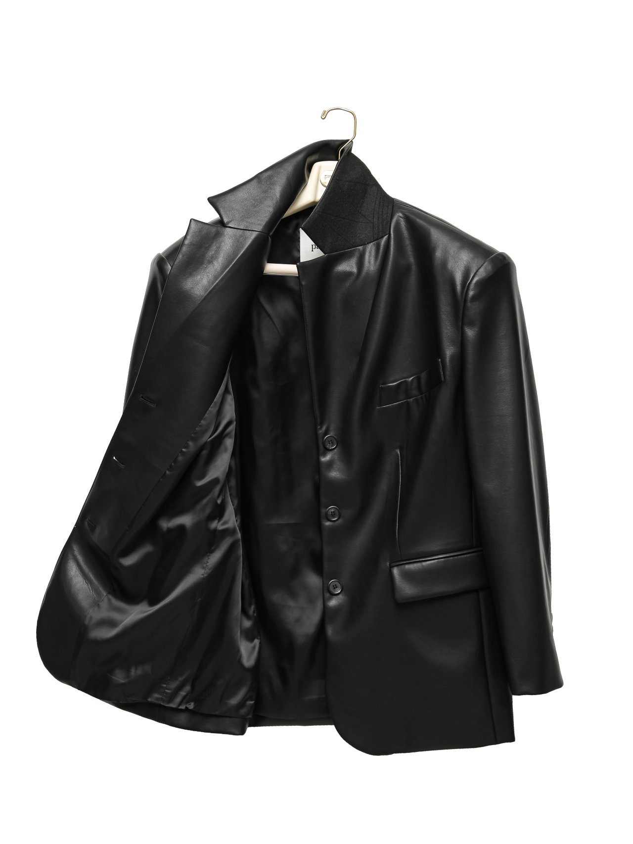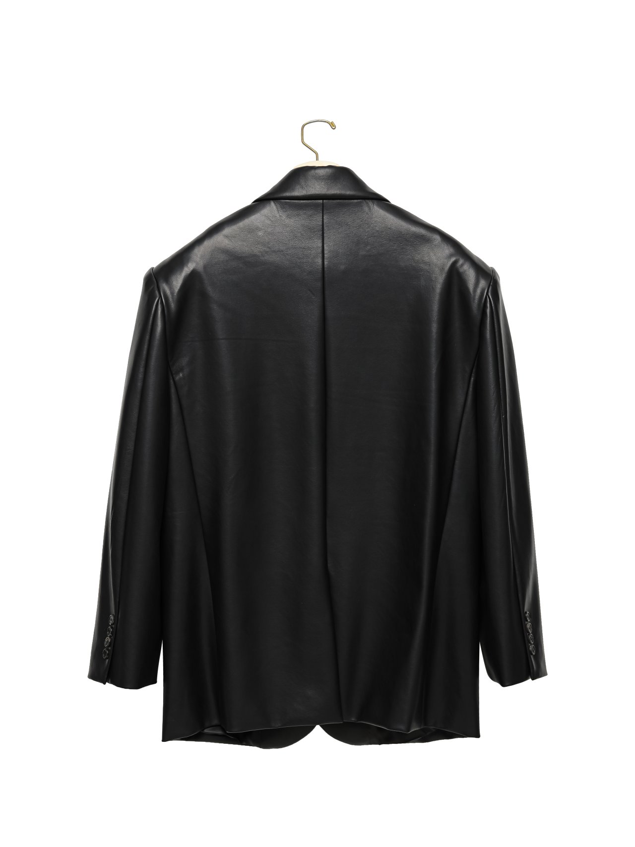 (PAPER MOON) OVERSIZED SHINY LEATHER THREE BUTTON BLAZER : BLACK