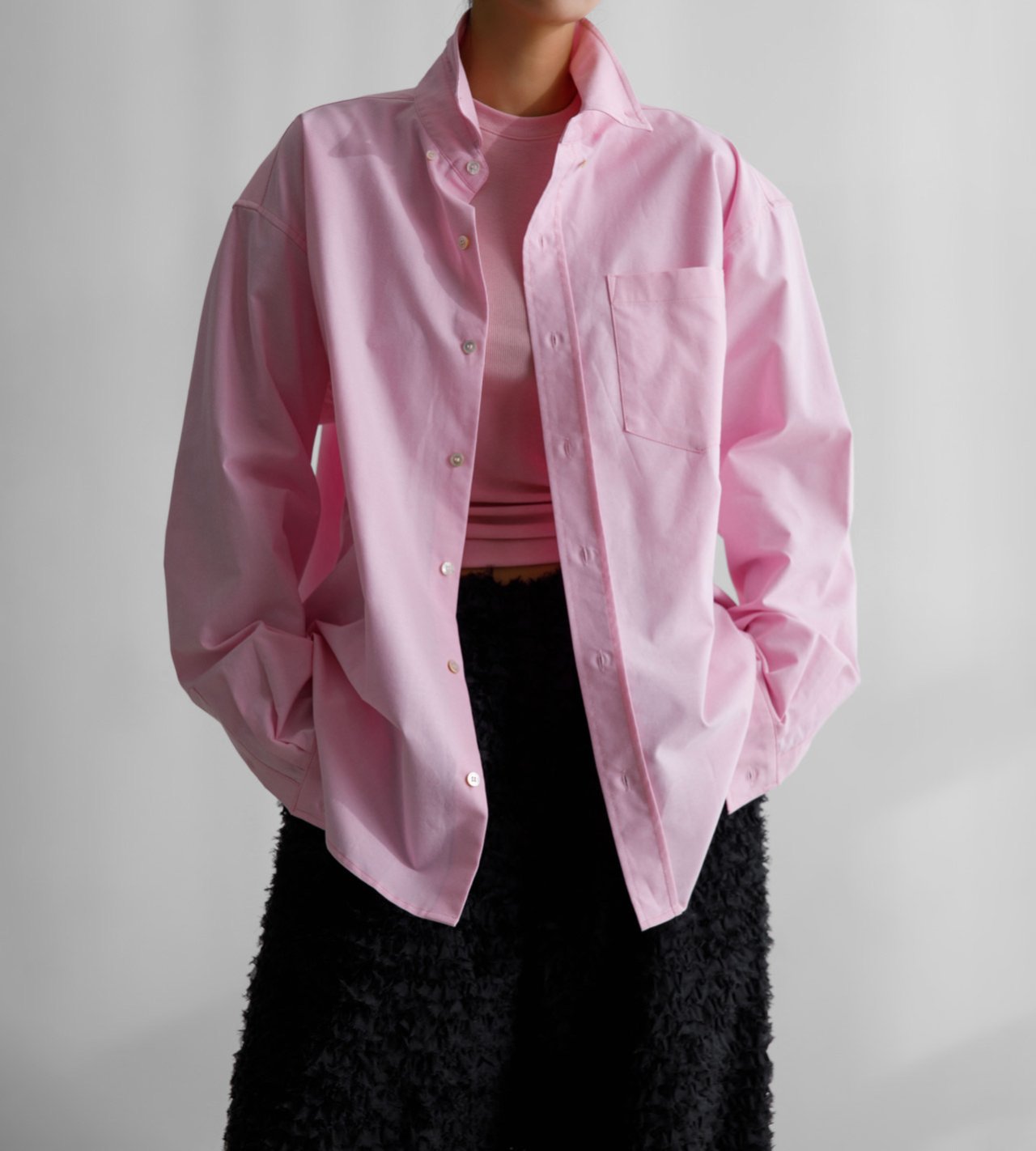 (PAPER MOON) CLASSIC OXFORD COTTON BUTTON DOWN SHIRT : PINK