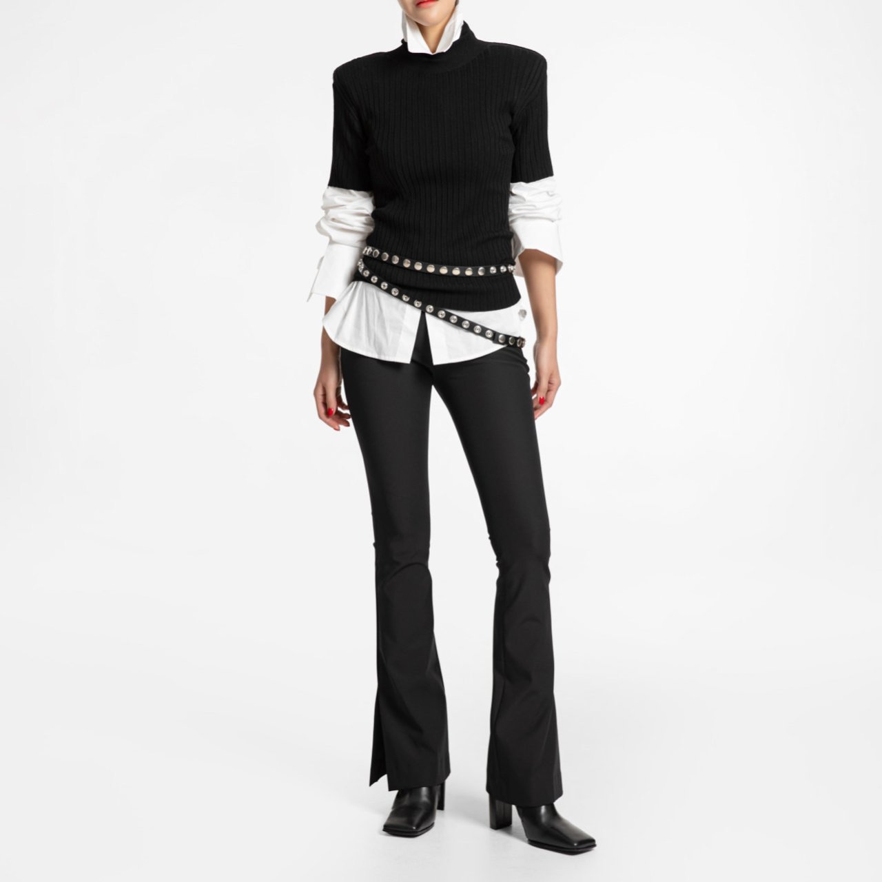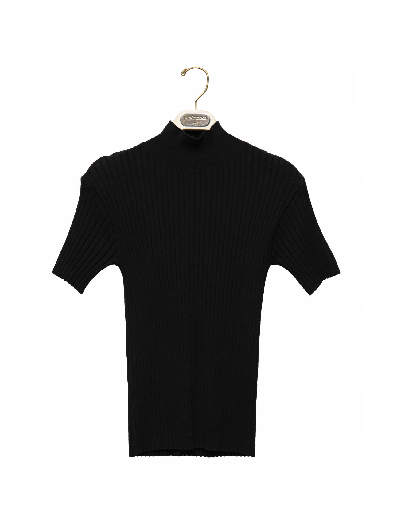 (PAPER MOON) CLASSIC RIBBED HALF TURTLENECK KNIT TOP : BLACK