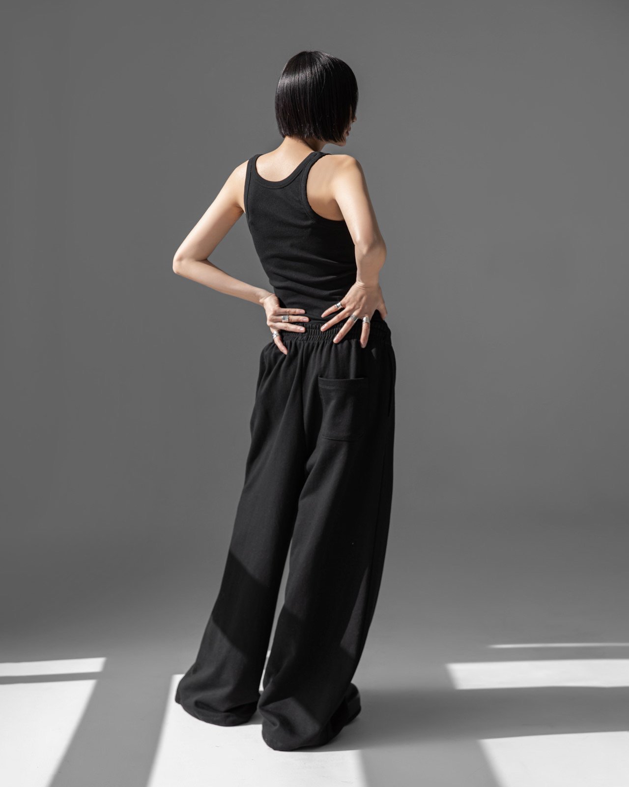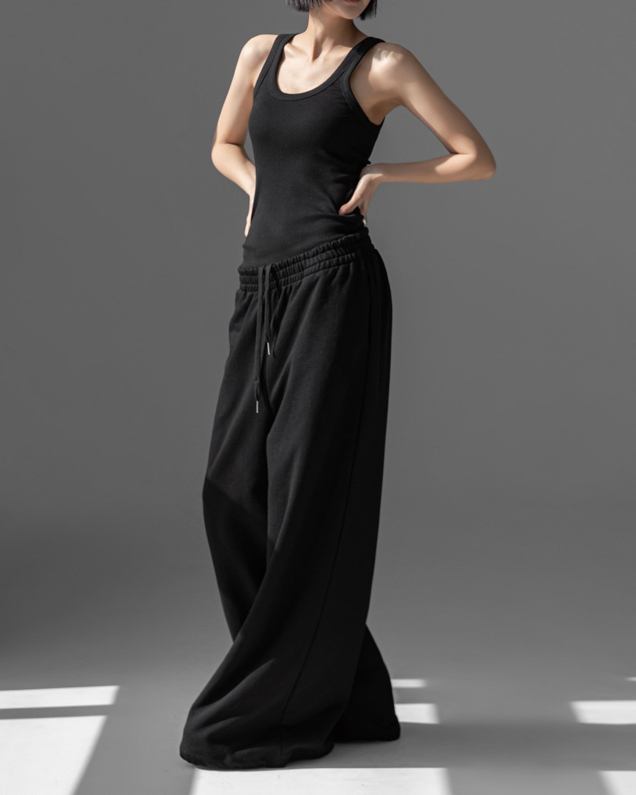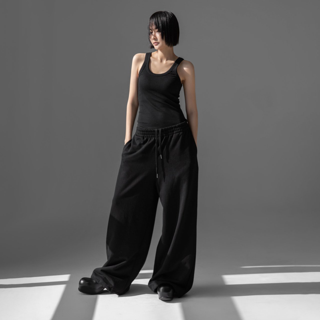 (PAPER MOON) CLASSIC OVERSIZED FIT TWO WAY SWEAT PANTS : BLACK