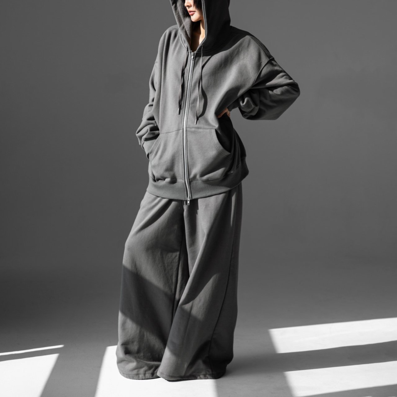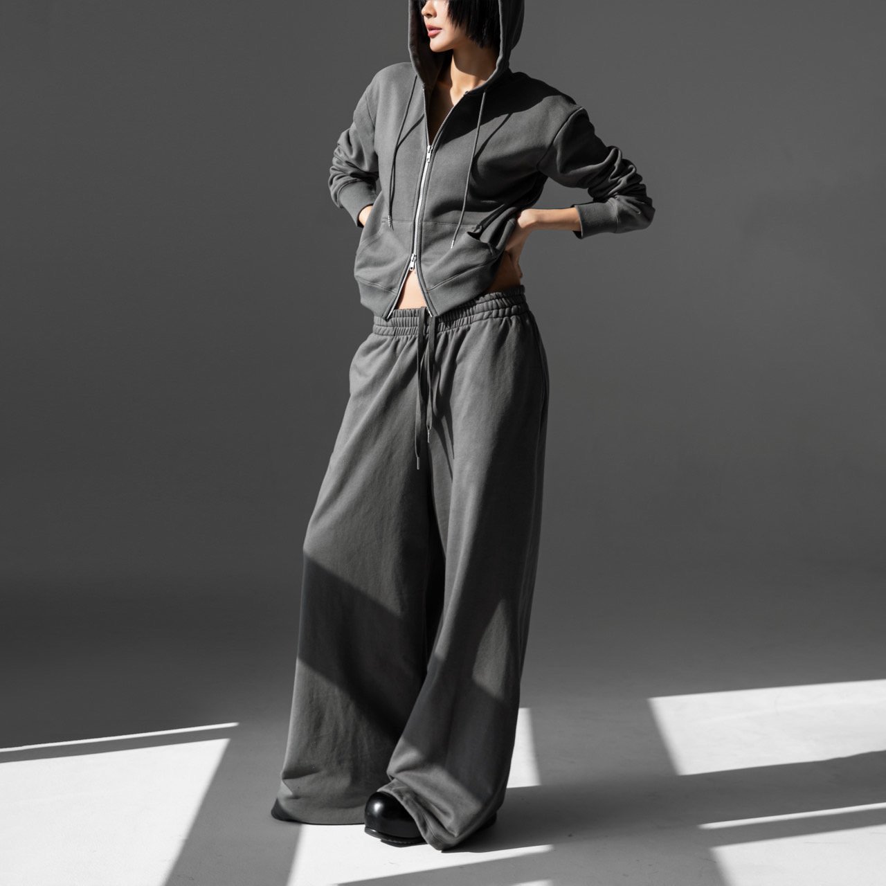 (PAPER MOON) CLASSIC OVERSIZED FIT TWO WAY SWEAT PANTS : KHAKI