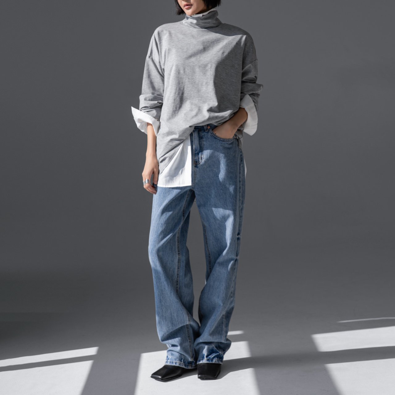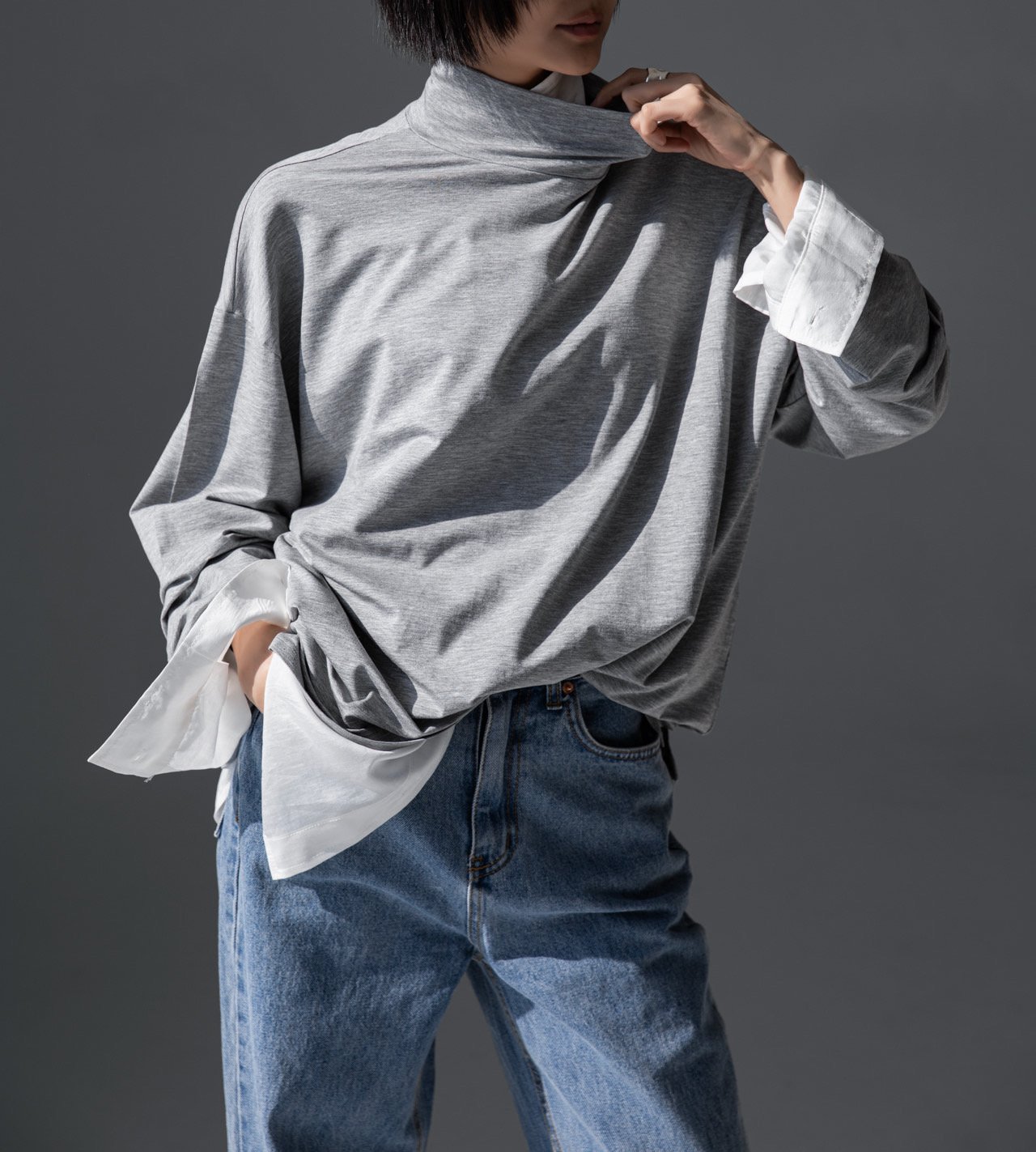 (PAPER MOON) CLASSIC LOOSE FIT TENCEL HALF NECK TOP : HEATHER GREY