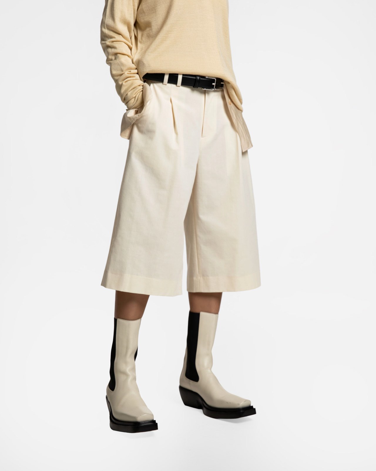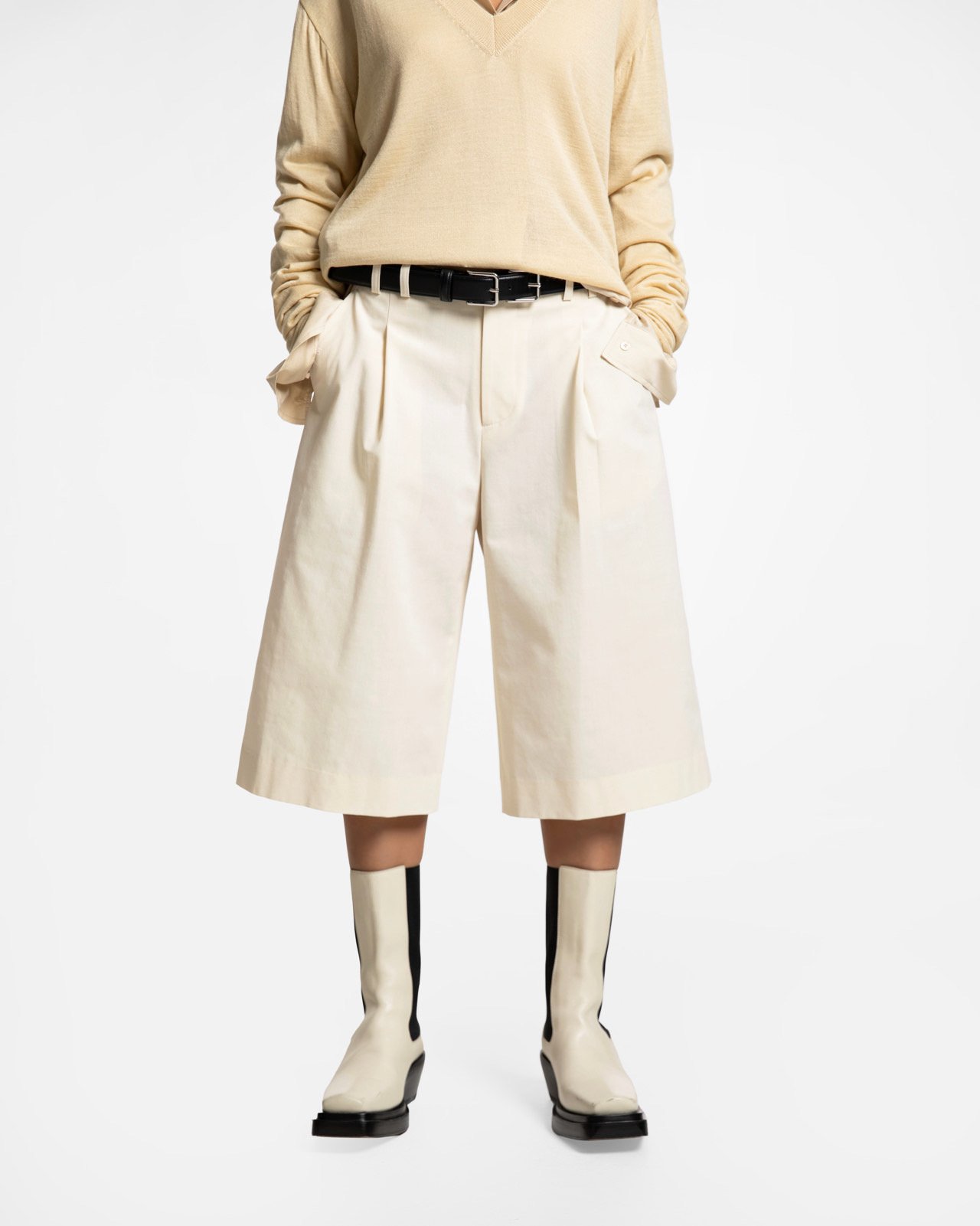 (PAPER MOON) CLASSIC WIDE FIT BERMUDA TROUSERS : CREAM