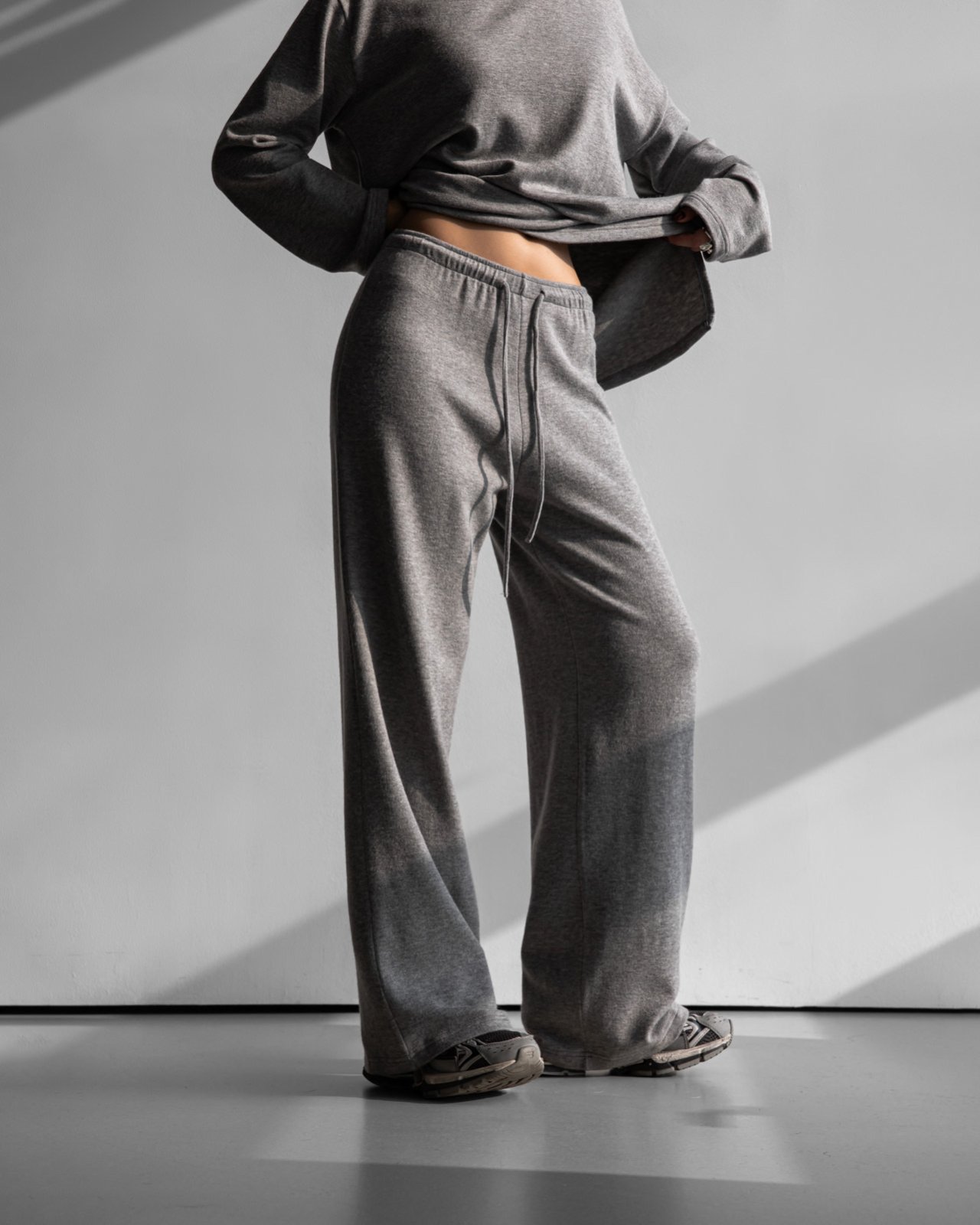 (PAPER MOON) SOFT LOUNGE SET - UP WIDE PANTS : HEATHER GREY