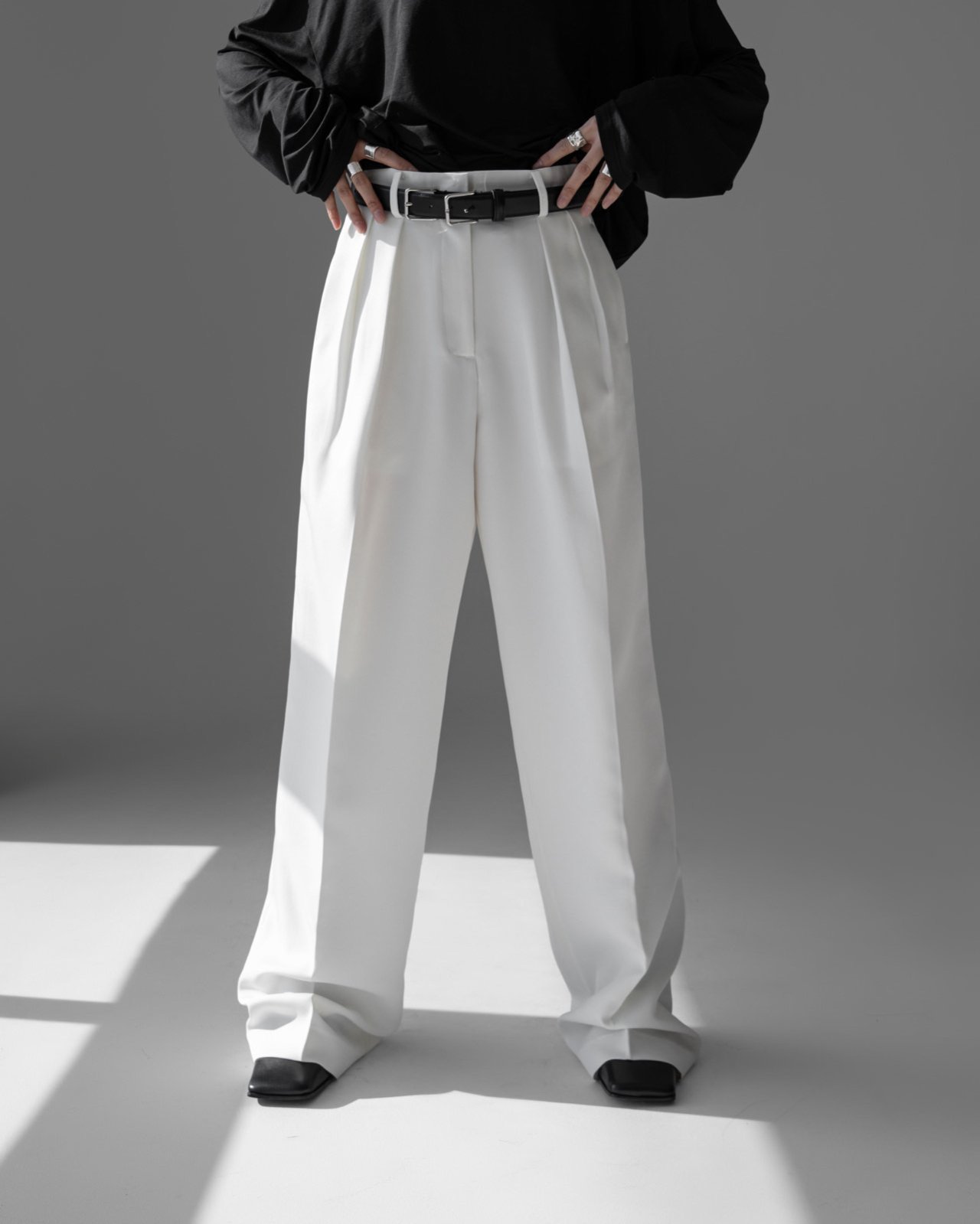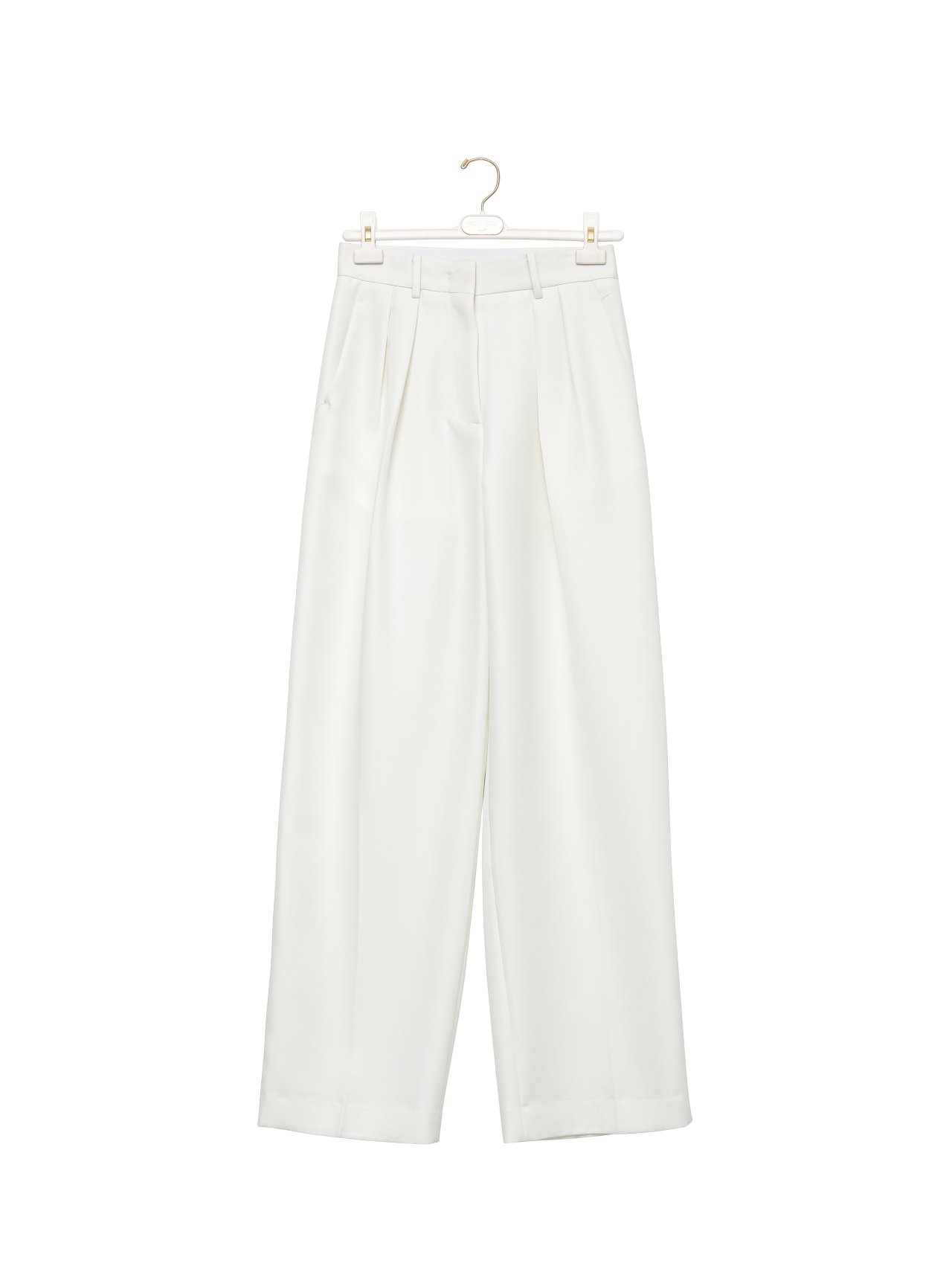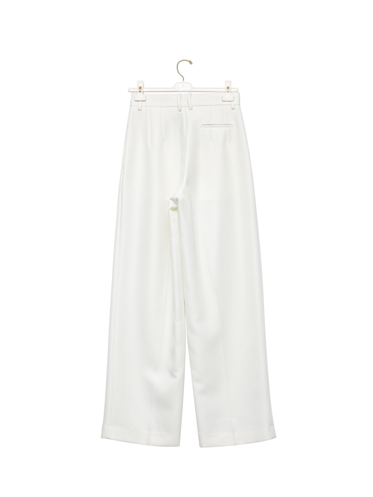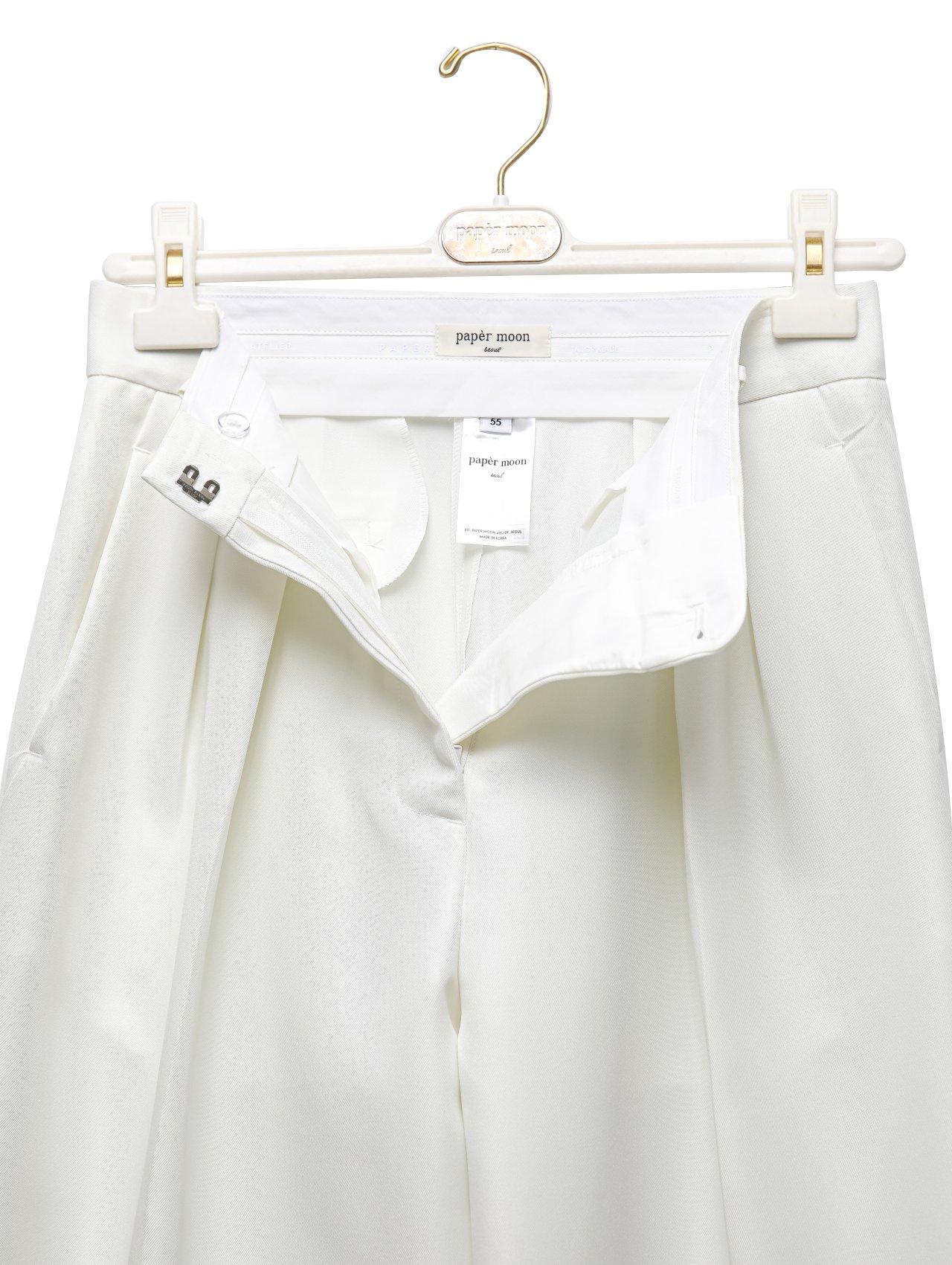 (PAPER MOON) TWILL TEXTURE LOW WAISTED DOUBLE PLEATS WIDE TROUSERS : CREAM