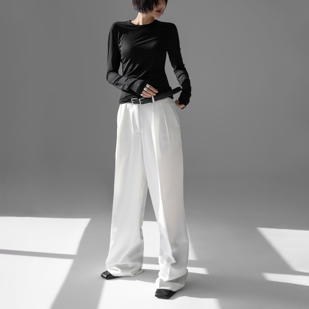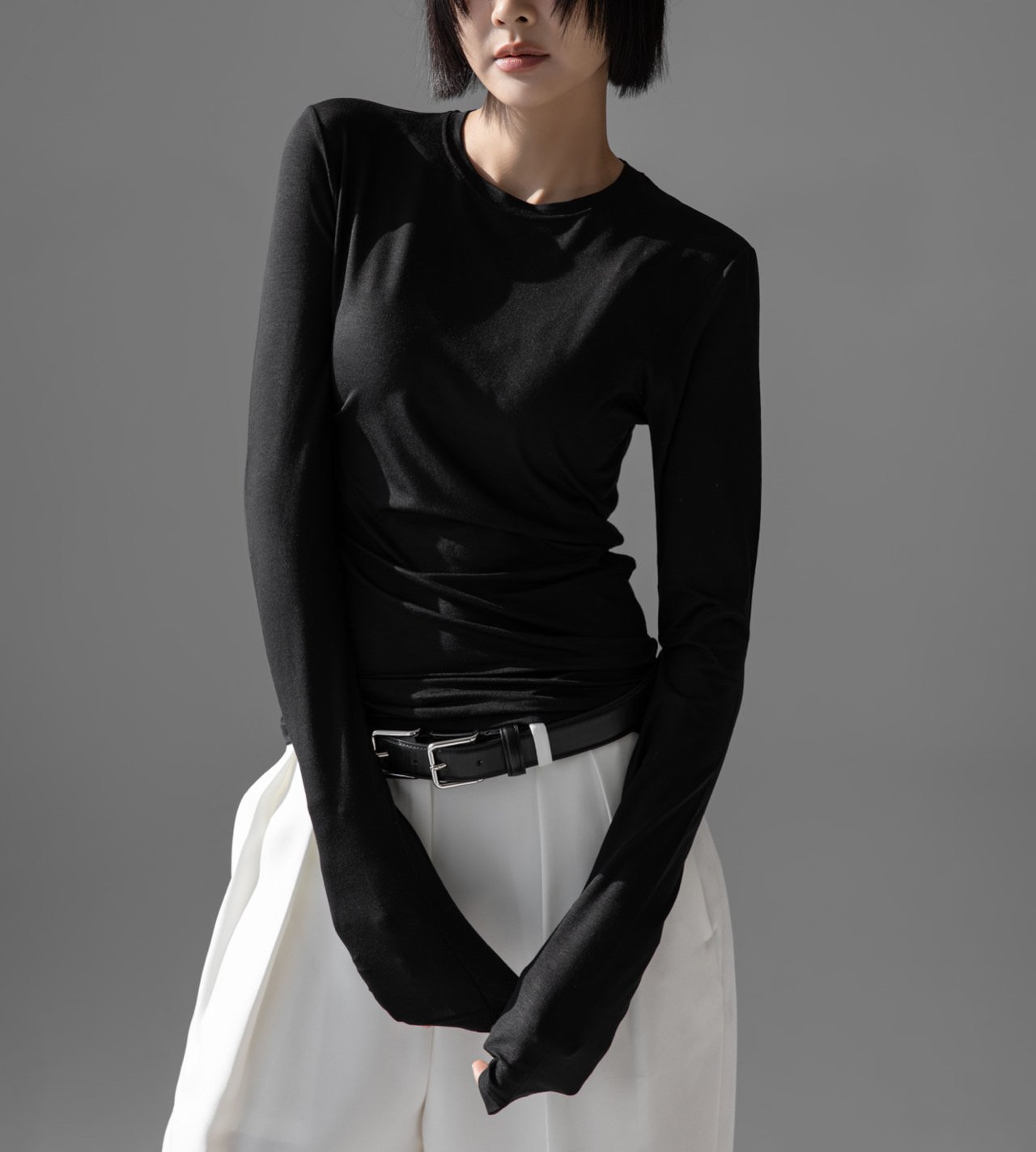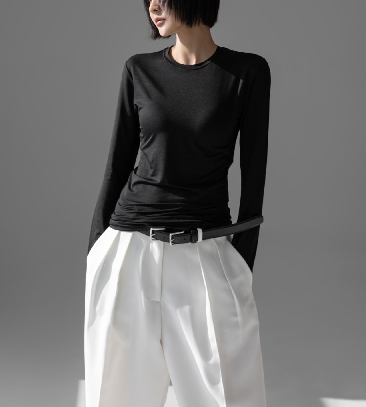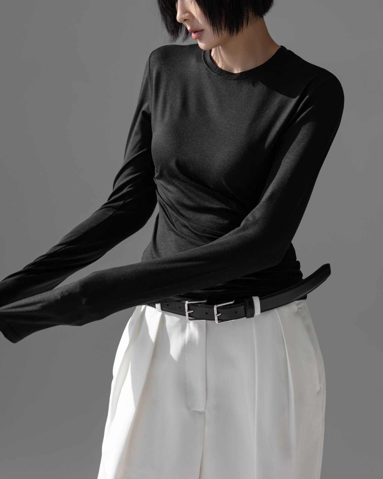 (PAPER MOON) CLASSIC SLIM FIT TENCEL CREW NECK TOP : BLACK