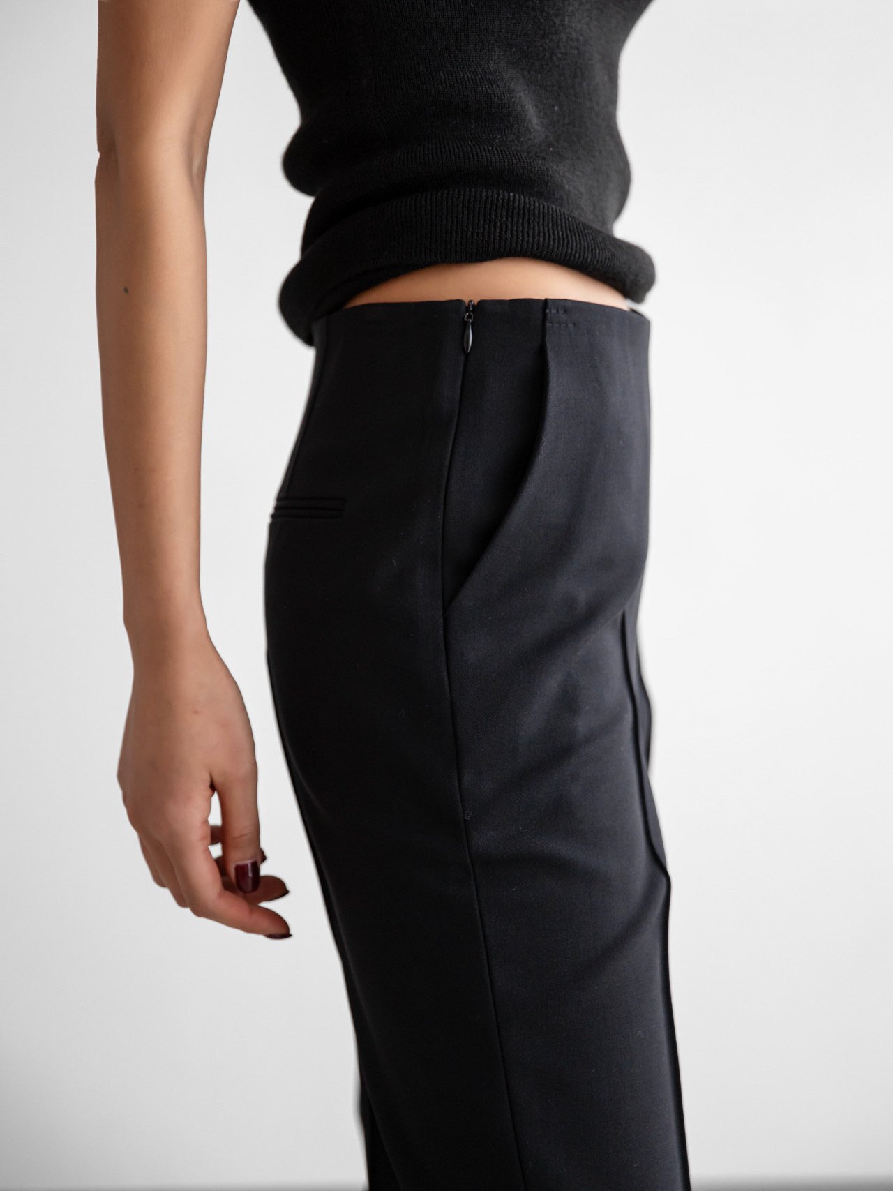 (PAPER MOON) CREASE LINE SLIT MIDI PANTS : BLACK