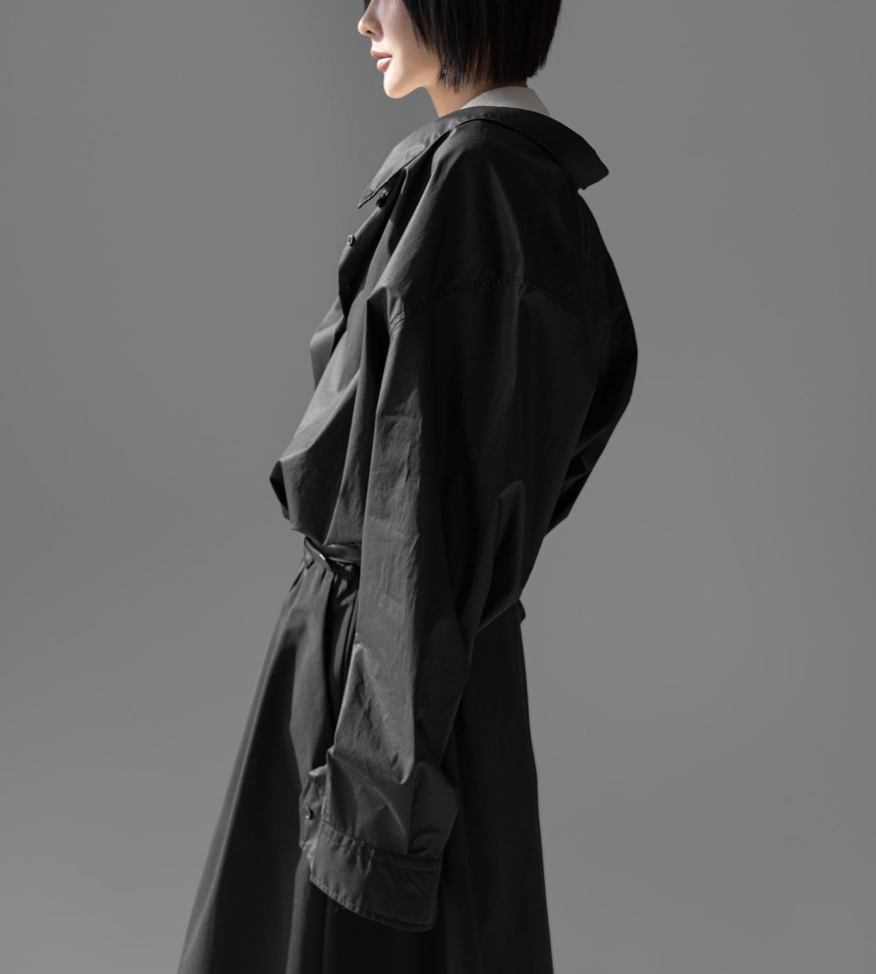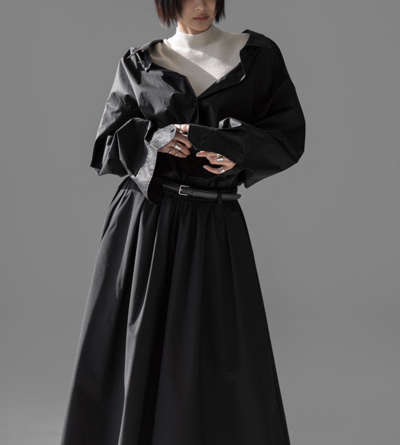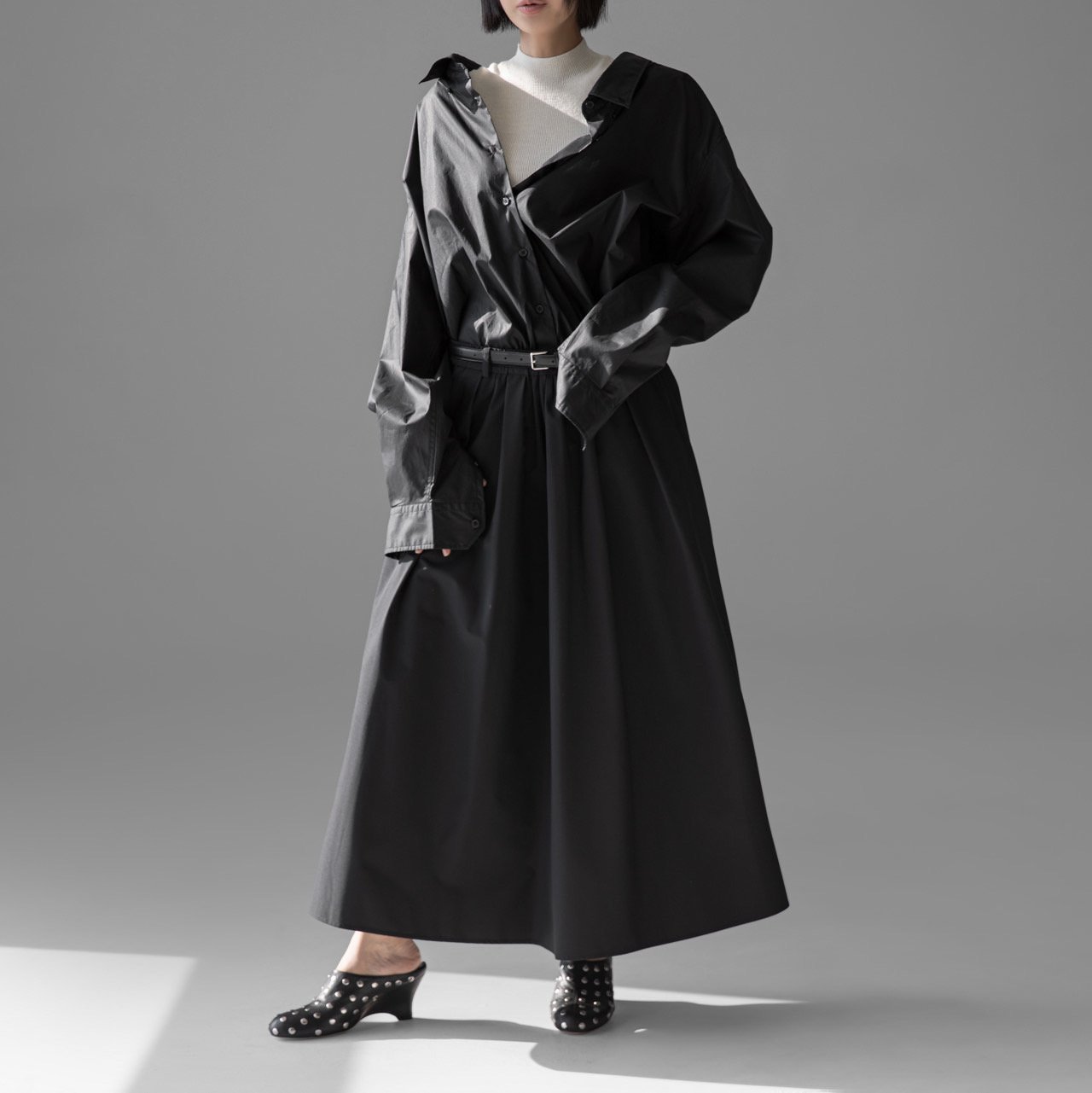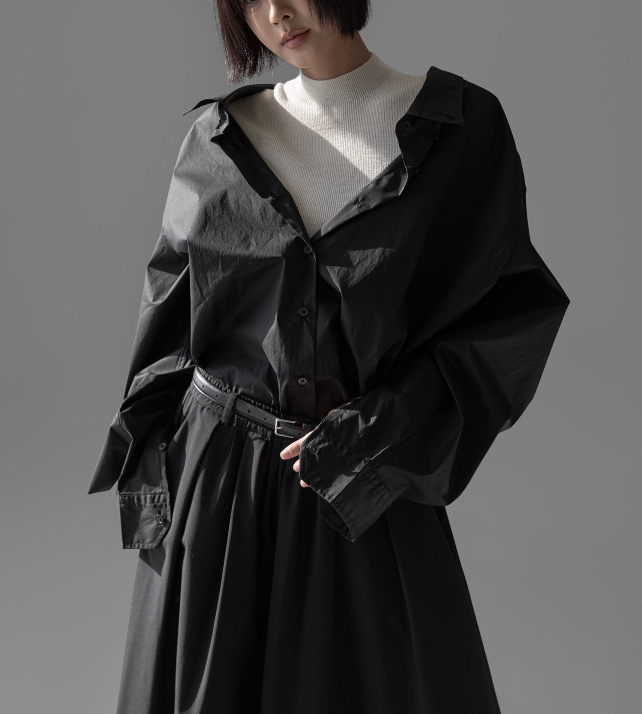 (PAPER MOON) LOW COLLAR POINT PAPER BUTTON DOWN SHIRT : BLACK