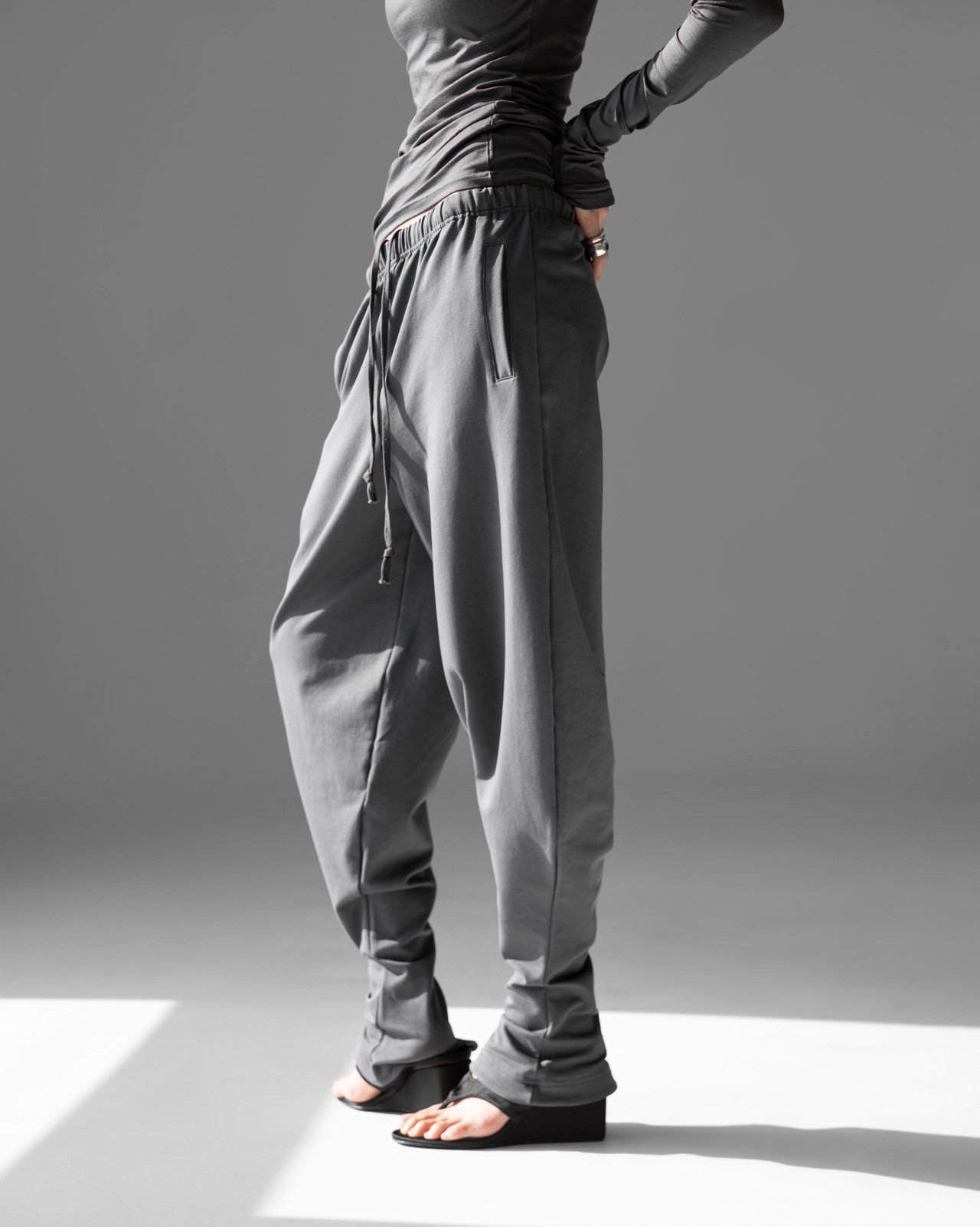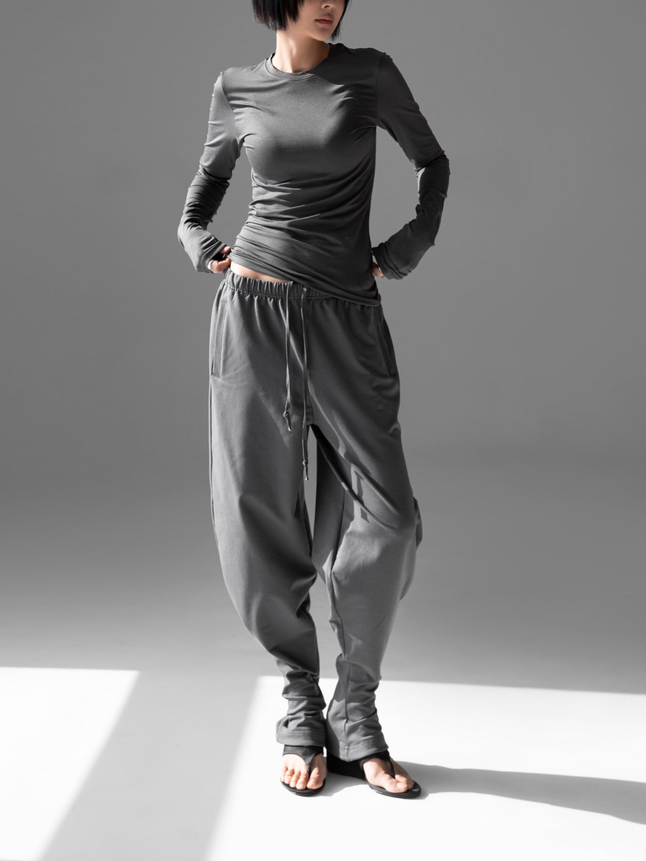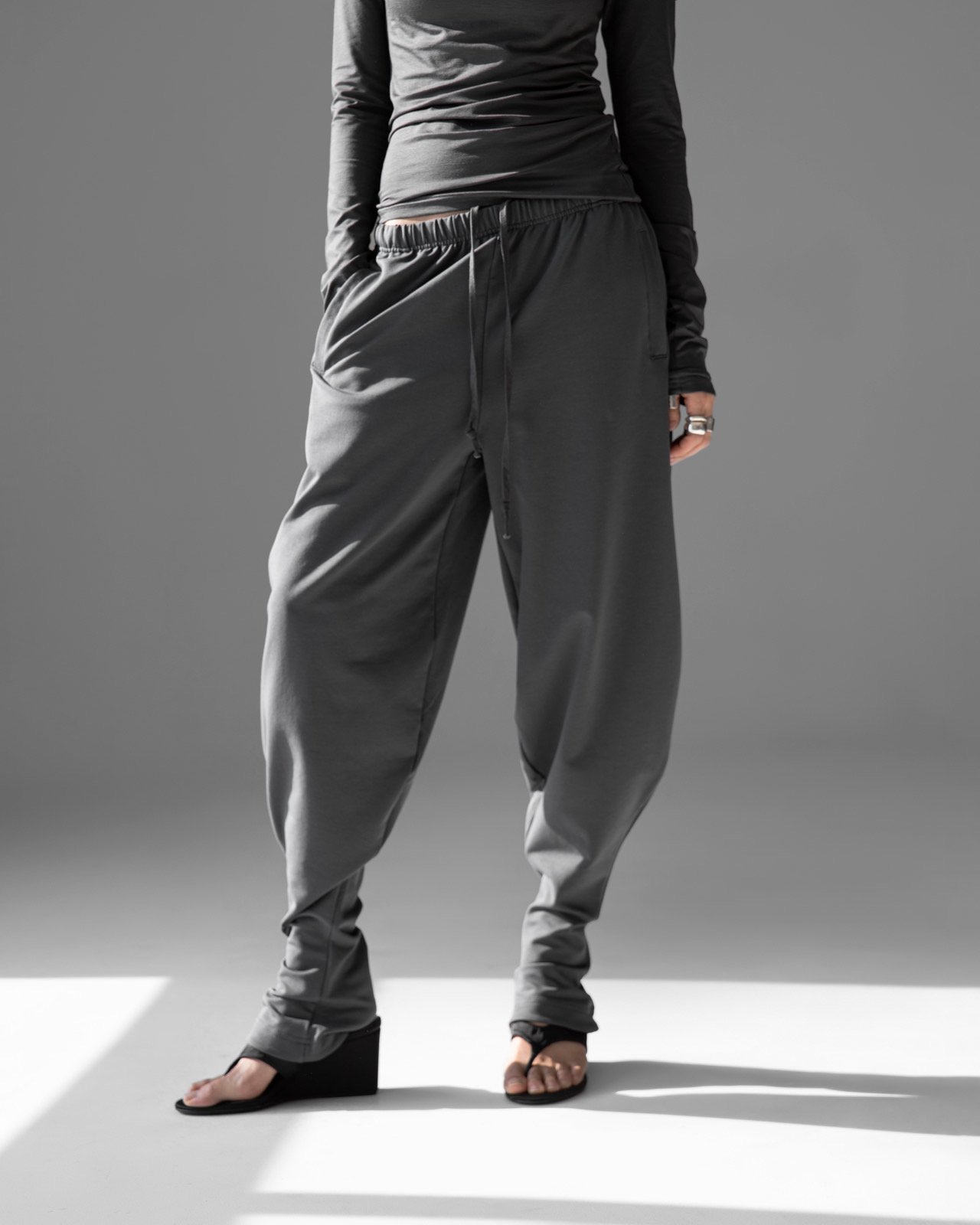 (PAPER MOON) CURVED BALLOON LEG JERSEY PANTS : CHARCOAL
