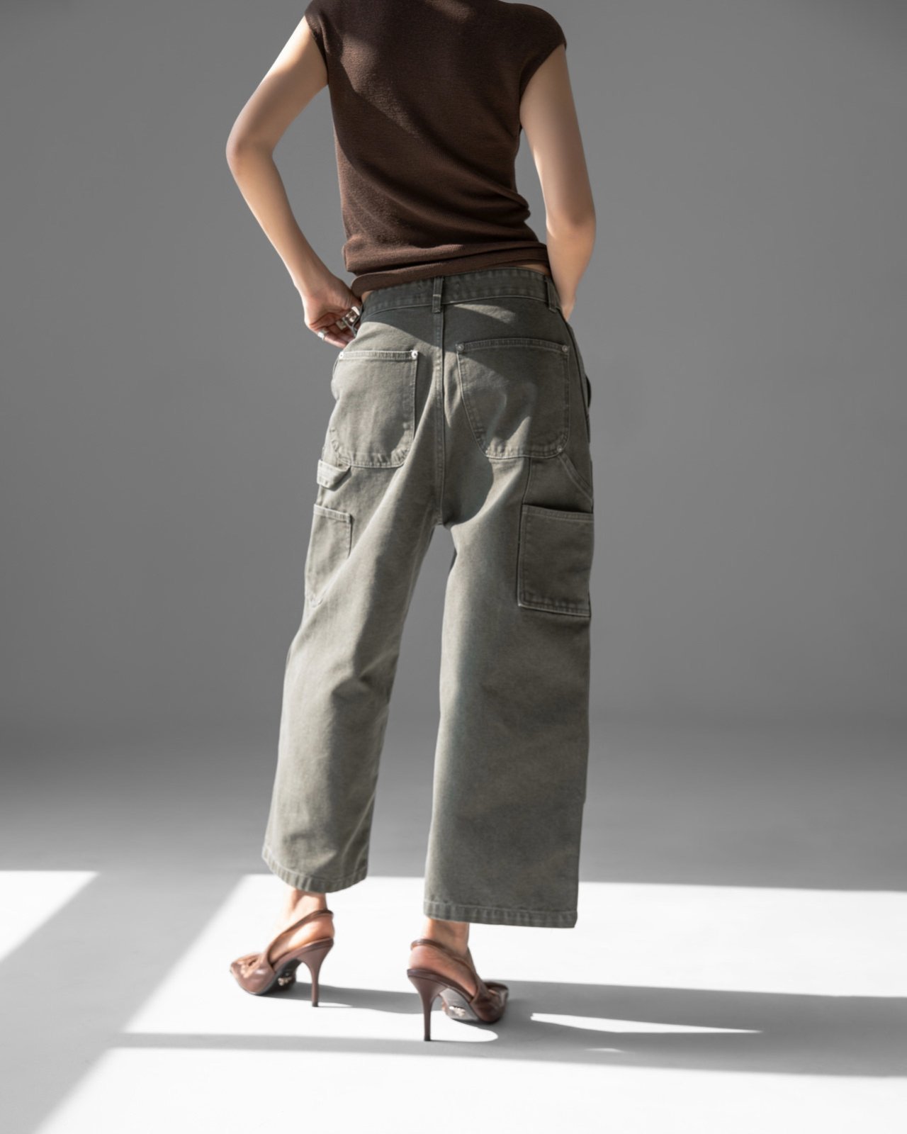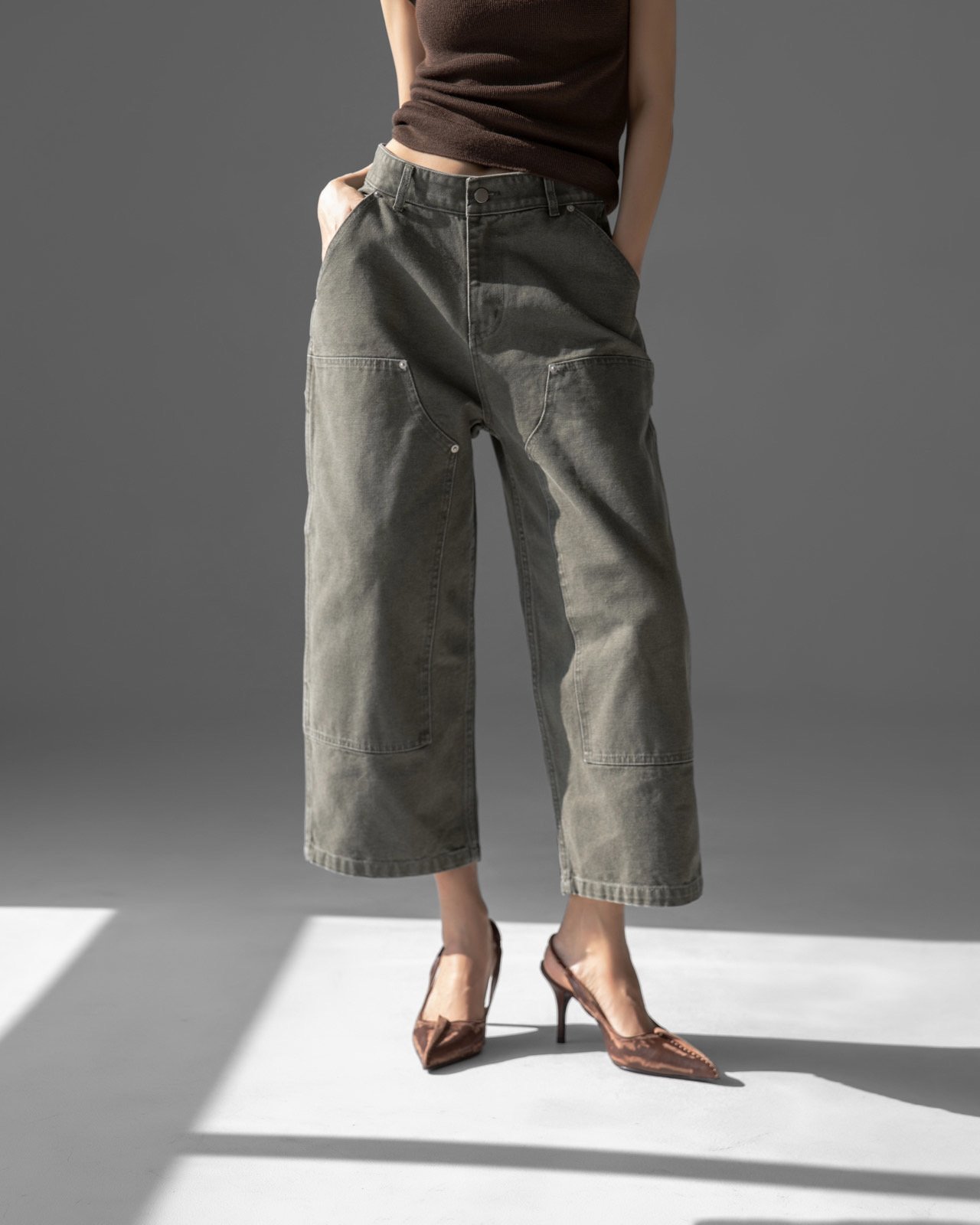 (PAPER MOON) VINTAGE ANKLE CARPENTER CULOTTES : KHAKI