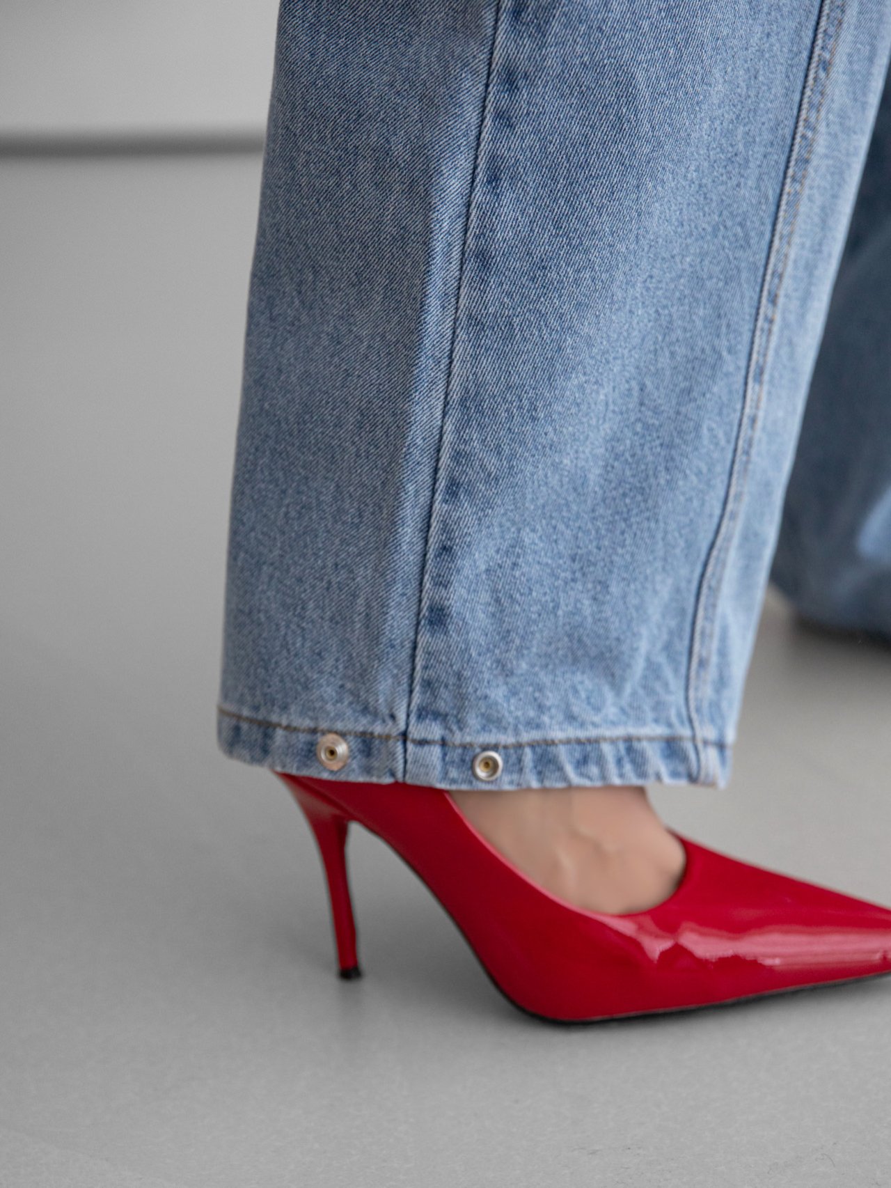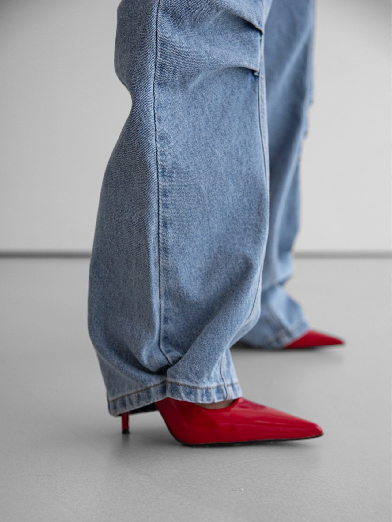 (PAPER MOON) VOLUME PINTUCK DENIM PANTS : WASHED MID BLUE