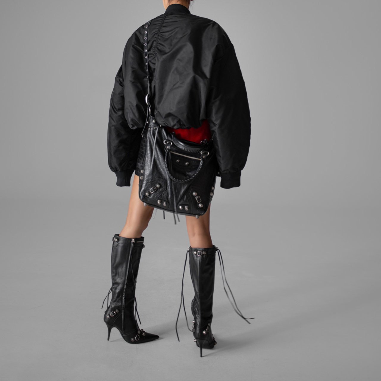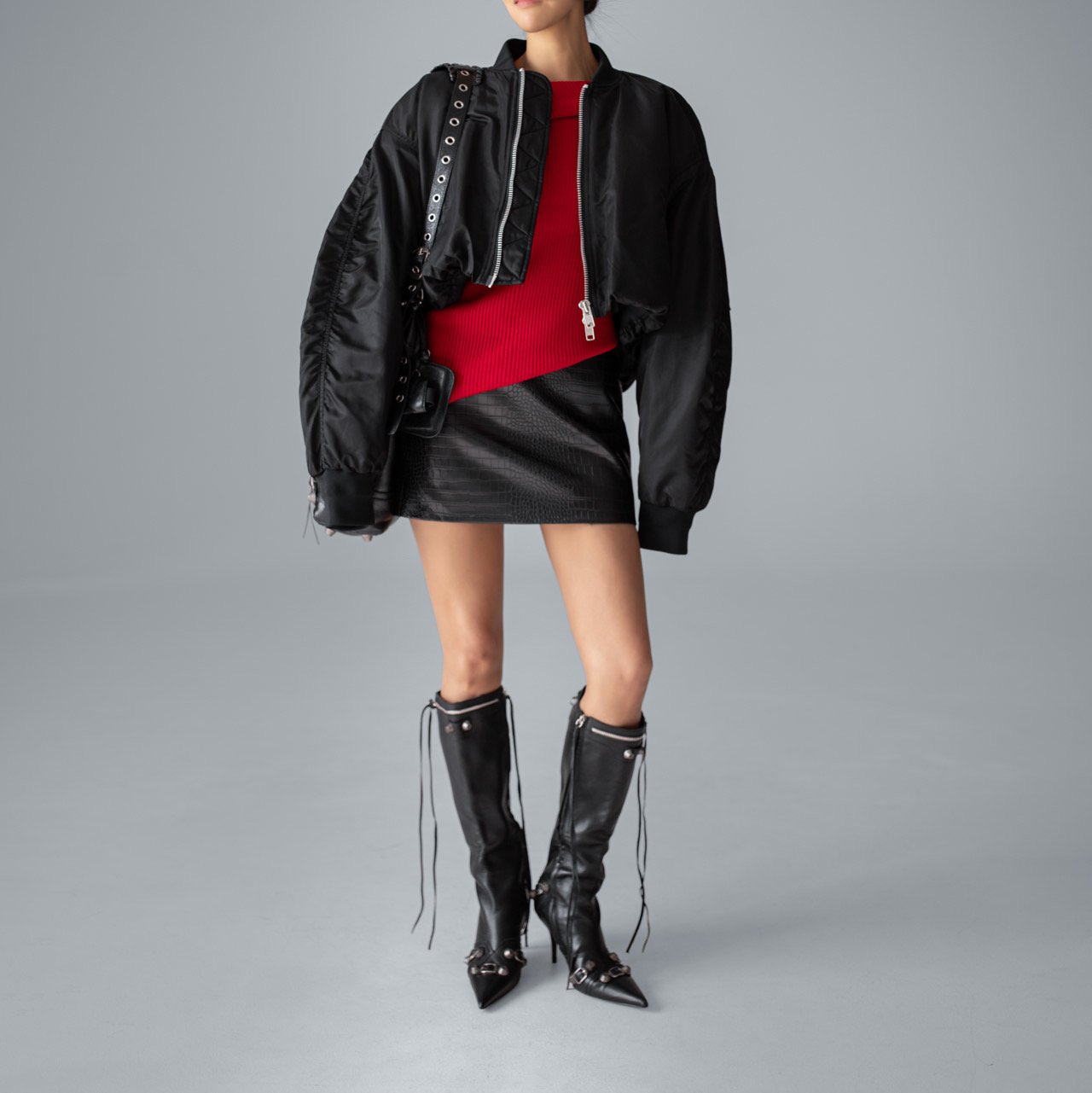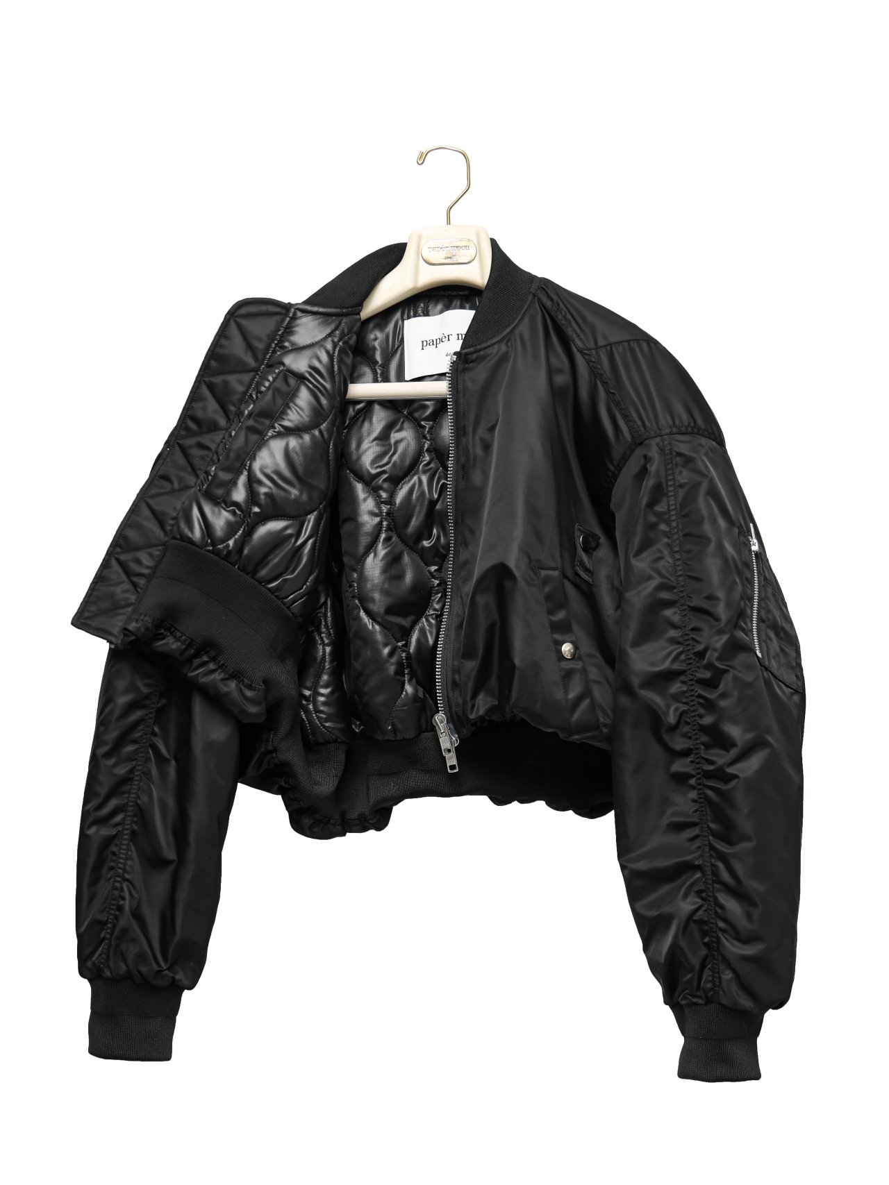 (PAPER MOON) HEAVY TWILL NYLON CROPPED BALLOON MA -1 FLIGHT JACKET : BLACK