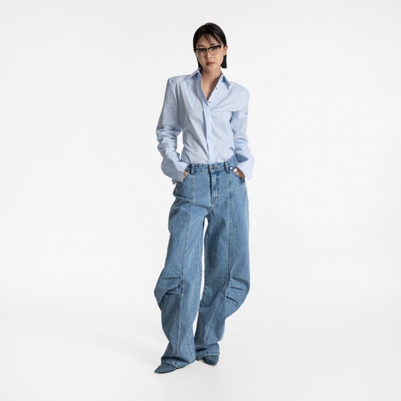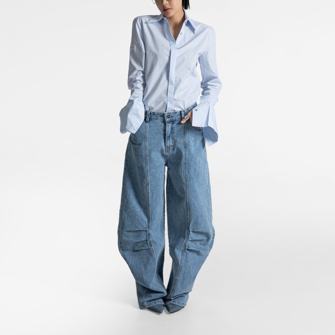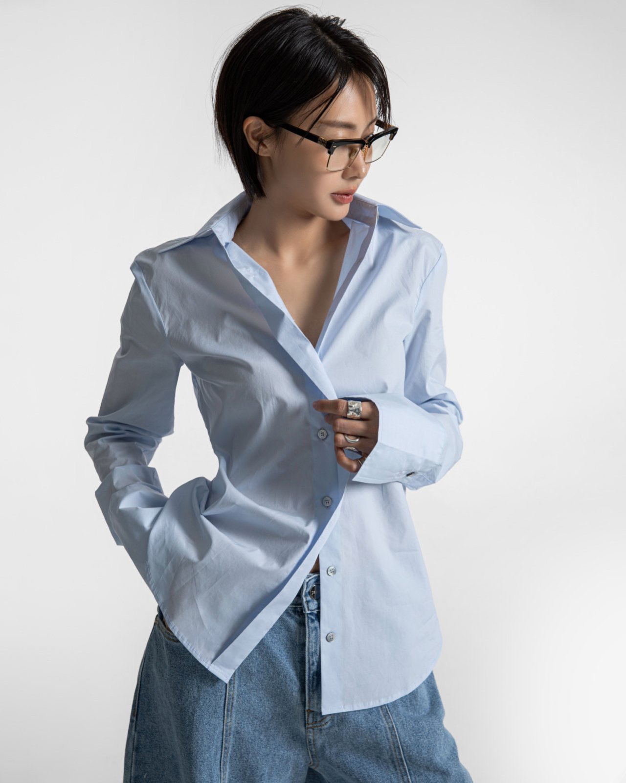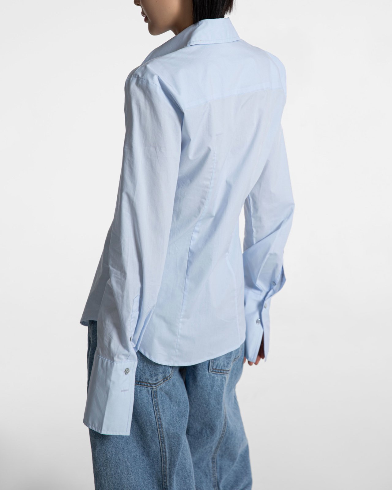 (PAPER MOON) SLIM FIT LONG CUFF SHIRT : BLUE
