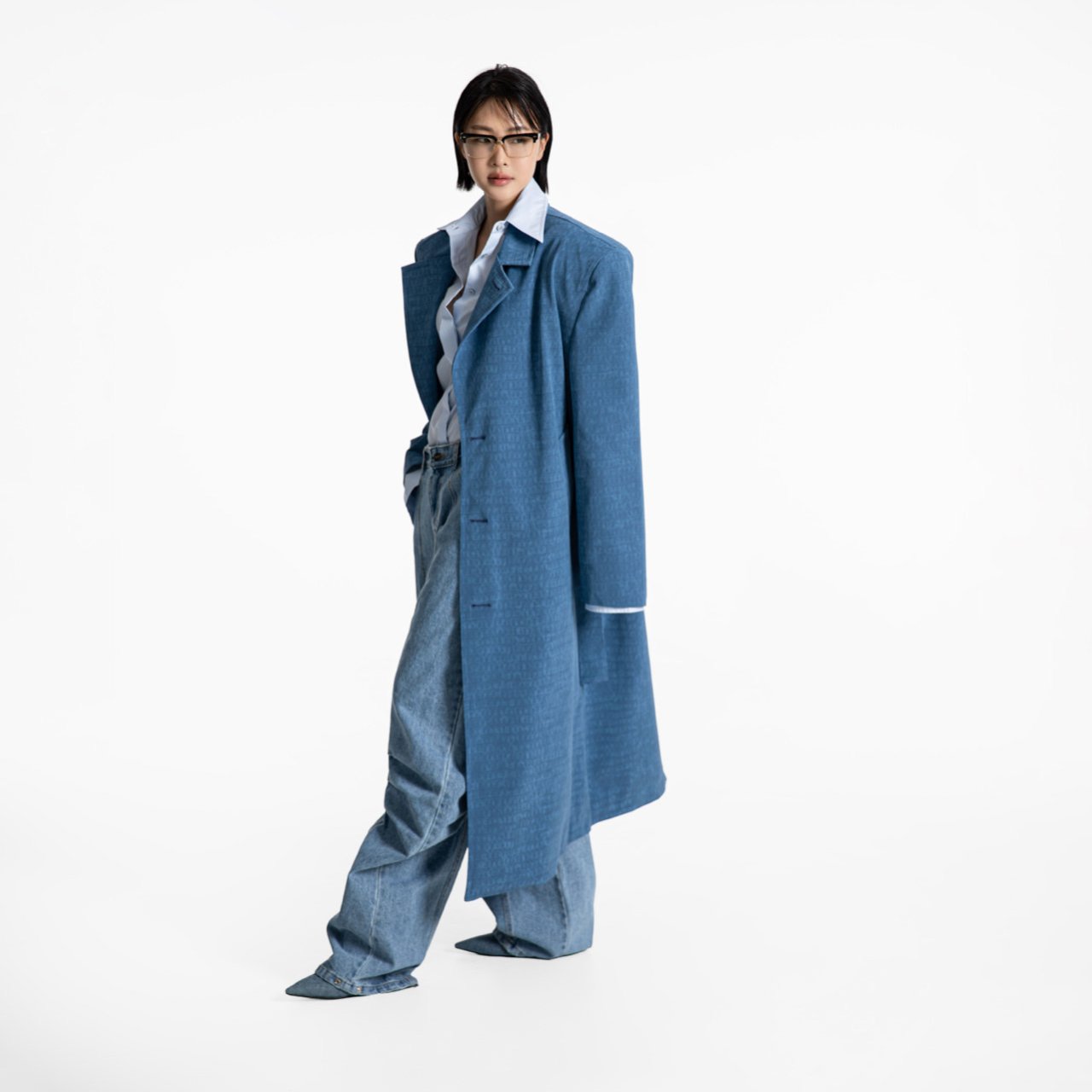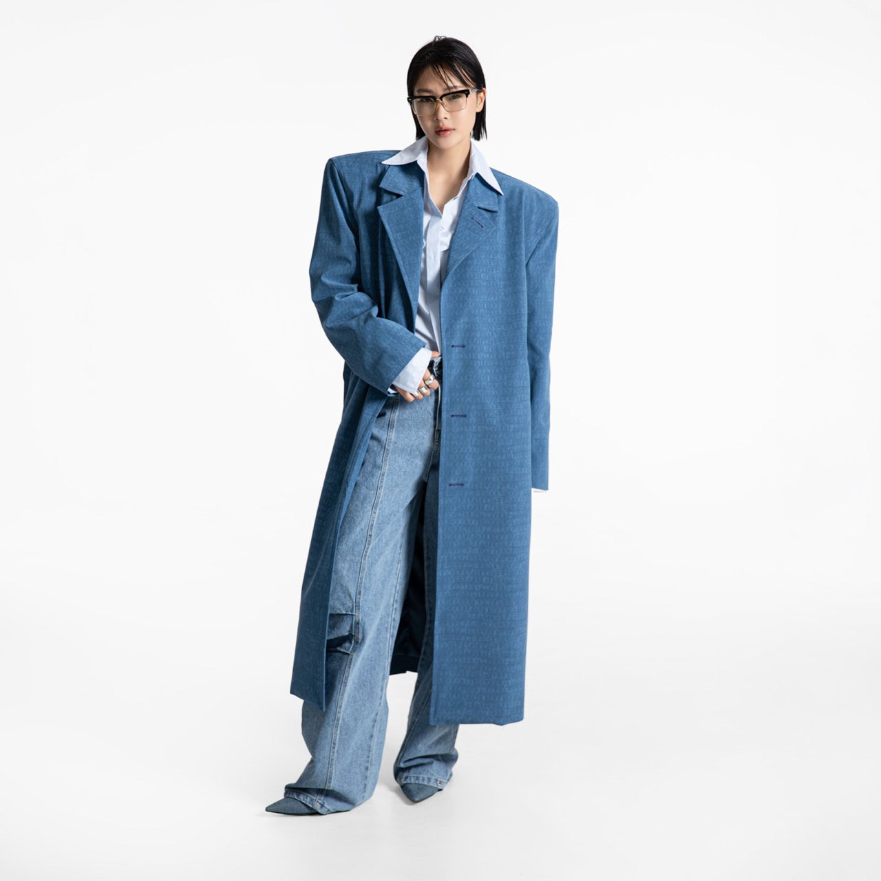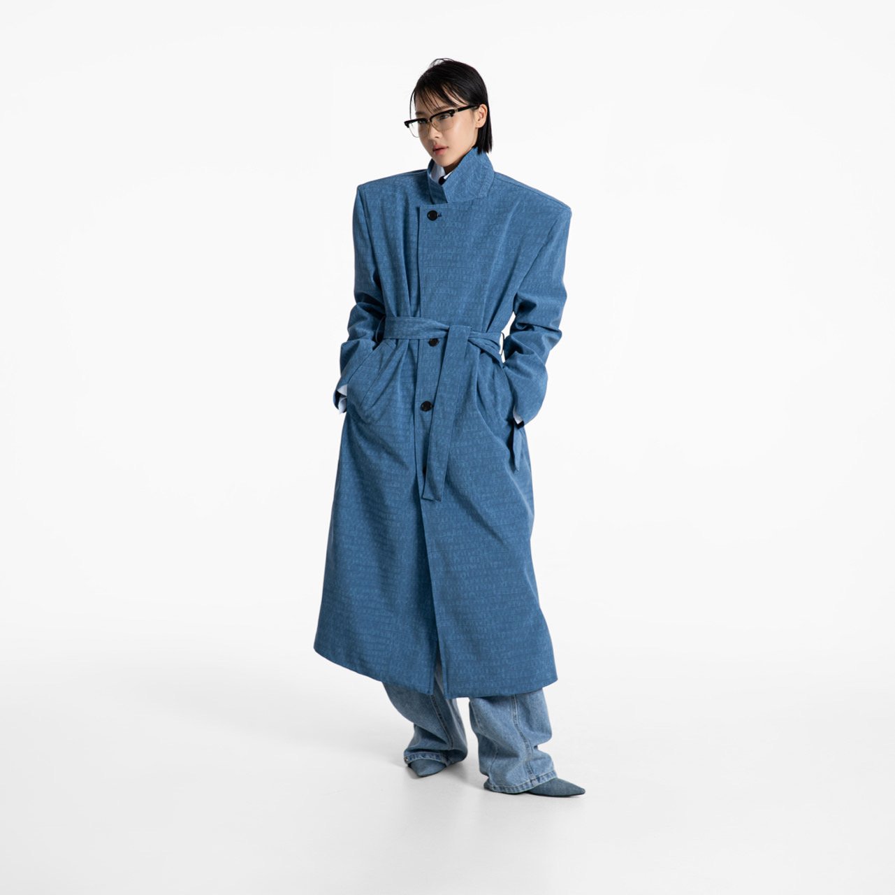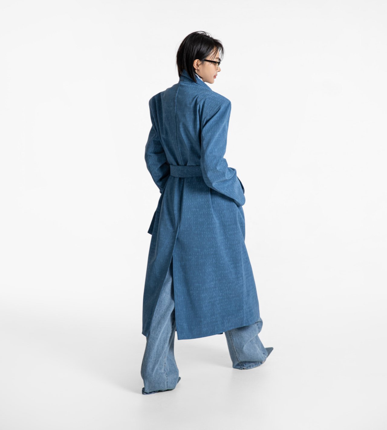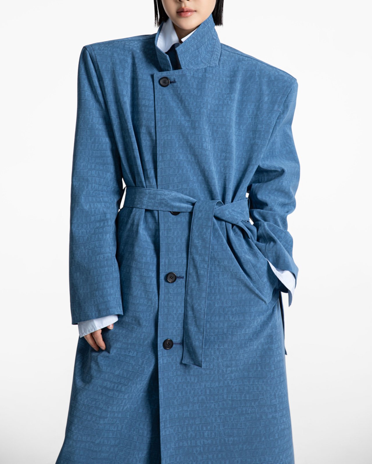 (PAPER MOON) CROCODILE PATTERN BELTED OVERSIZED COAT : TURKISH BLUE