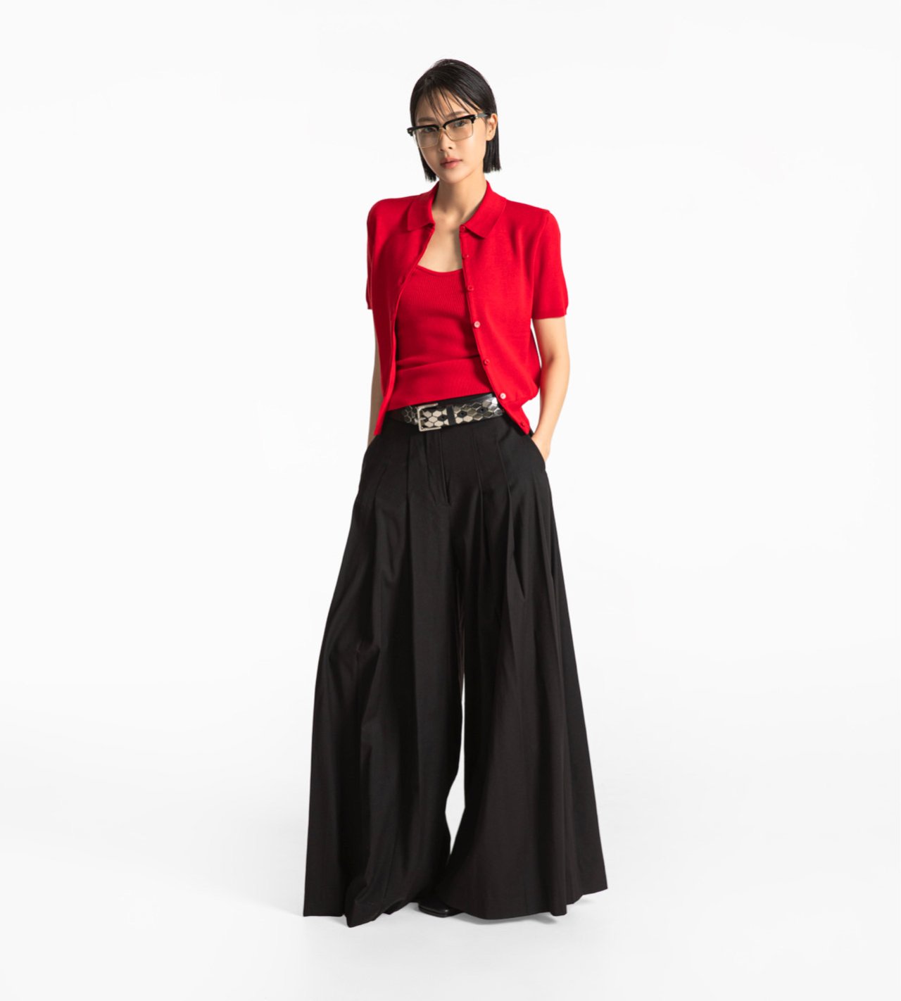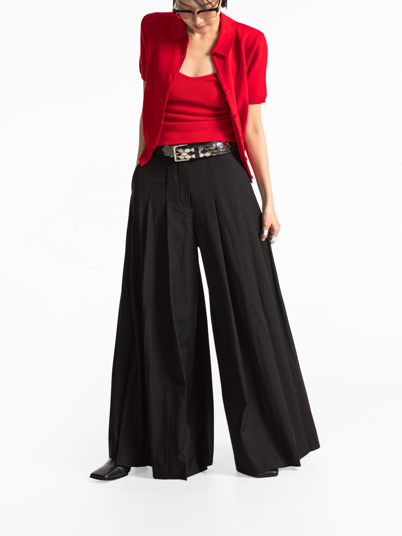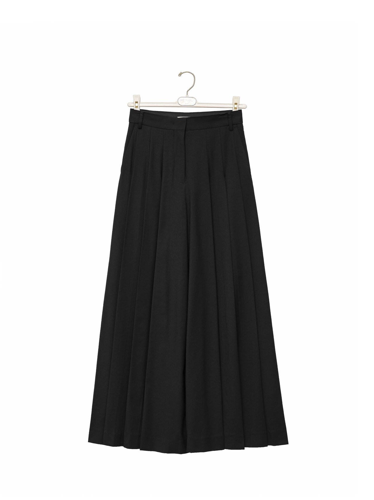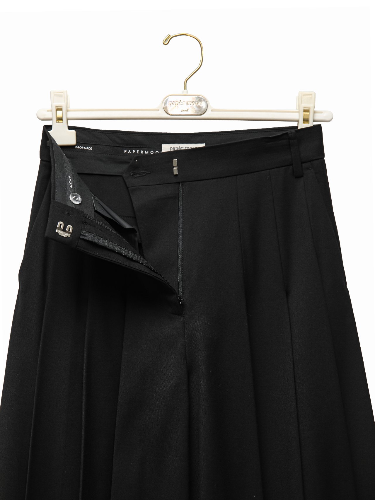 (PAPER MOON) PLEATED DETIAL WOOL WIDE TROUSERS : BLACK