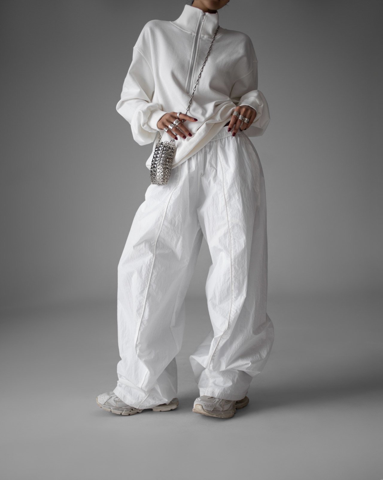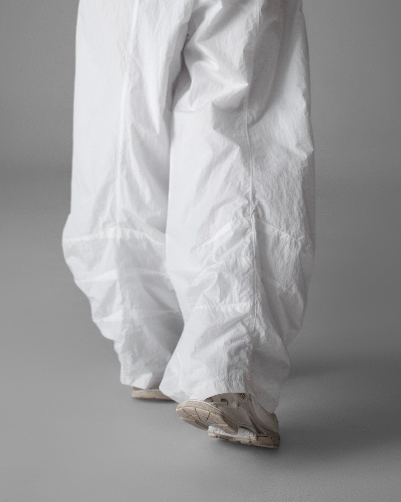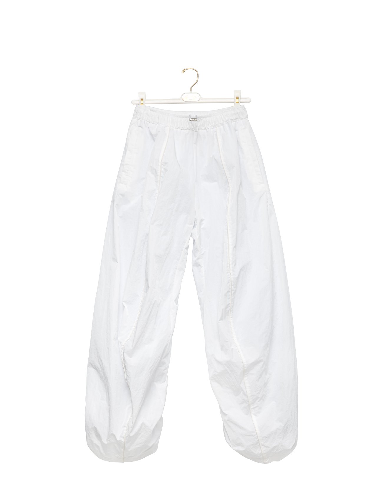 (PAPER MOON) NYLON DRAWSTRING WIDE TWIST PATTERN TROUSERS : WHITE