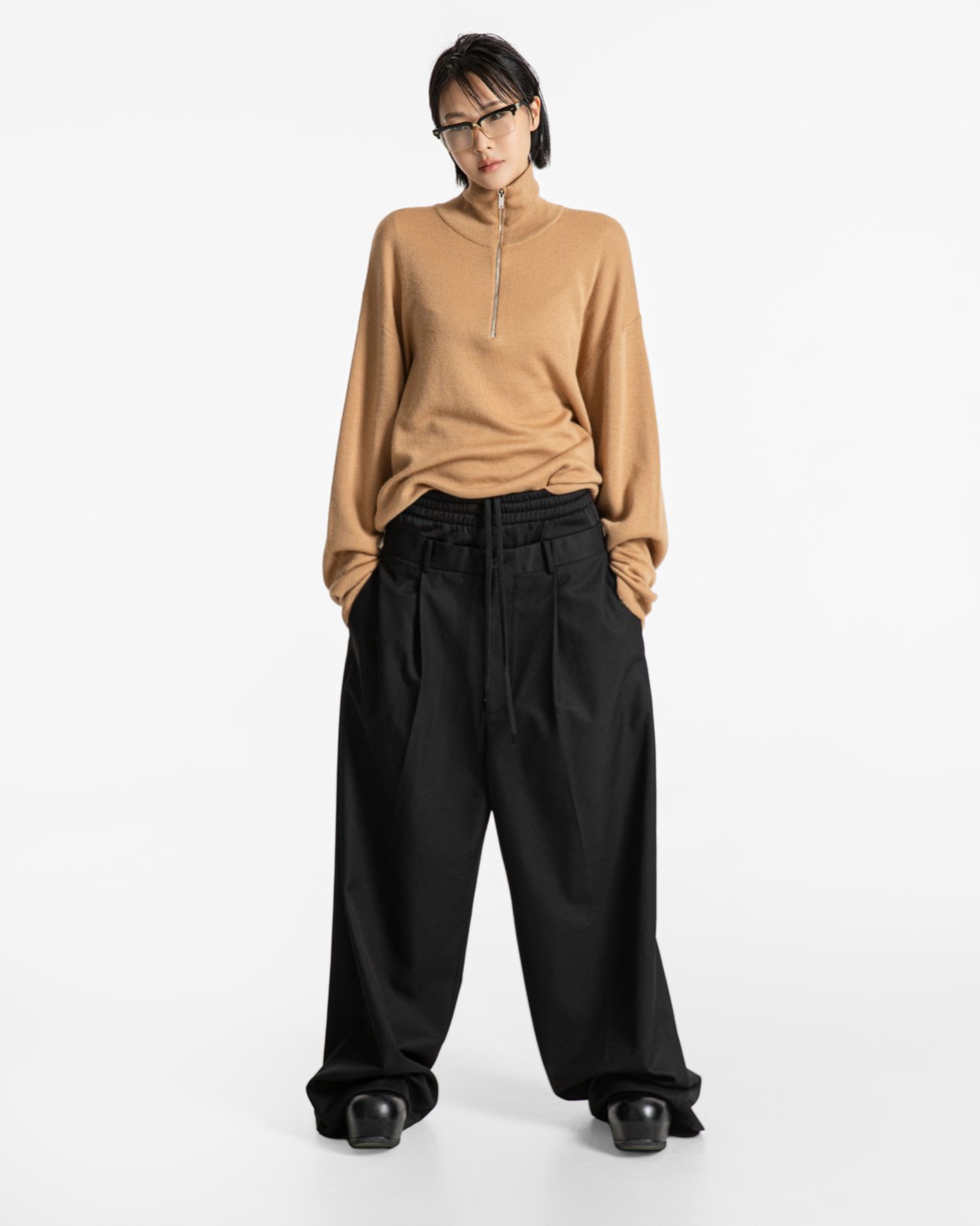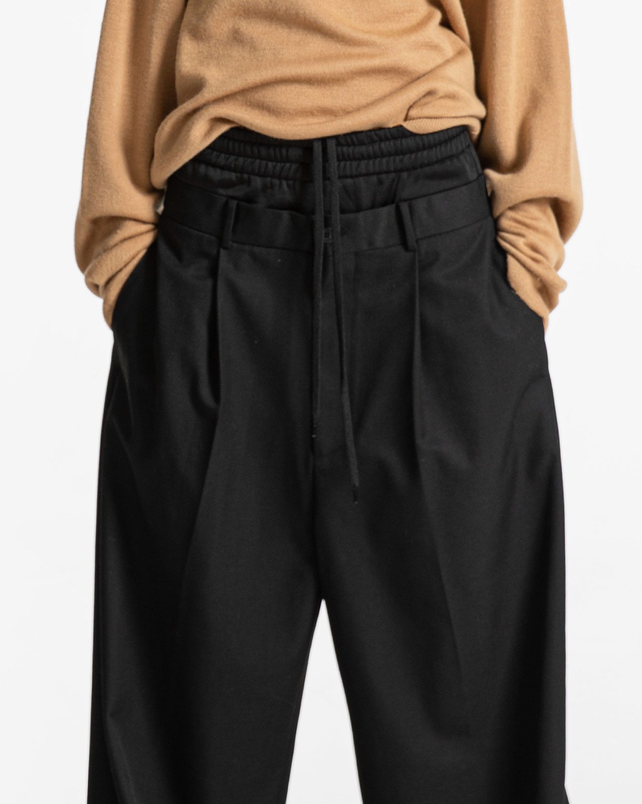 (PAPER MOON) LUX BANDED LAYERED DETAIL WIDE PANTS : BLACK