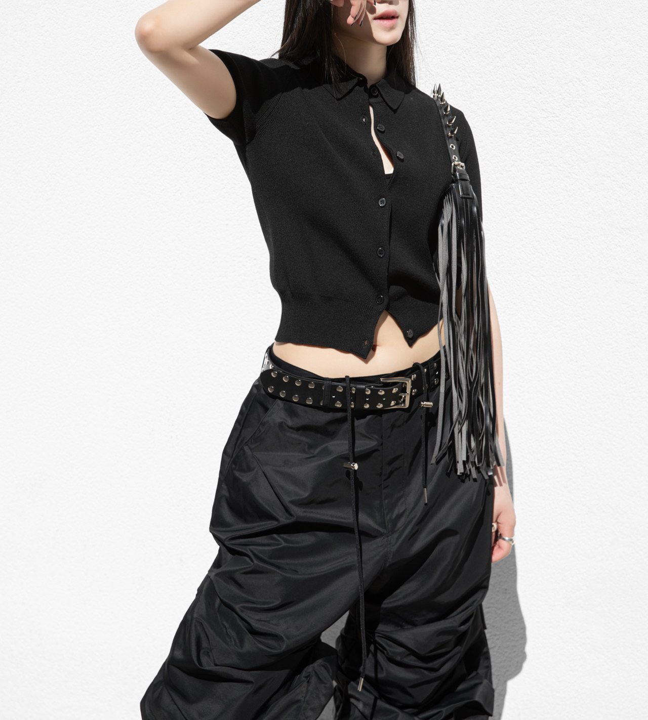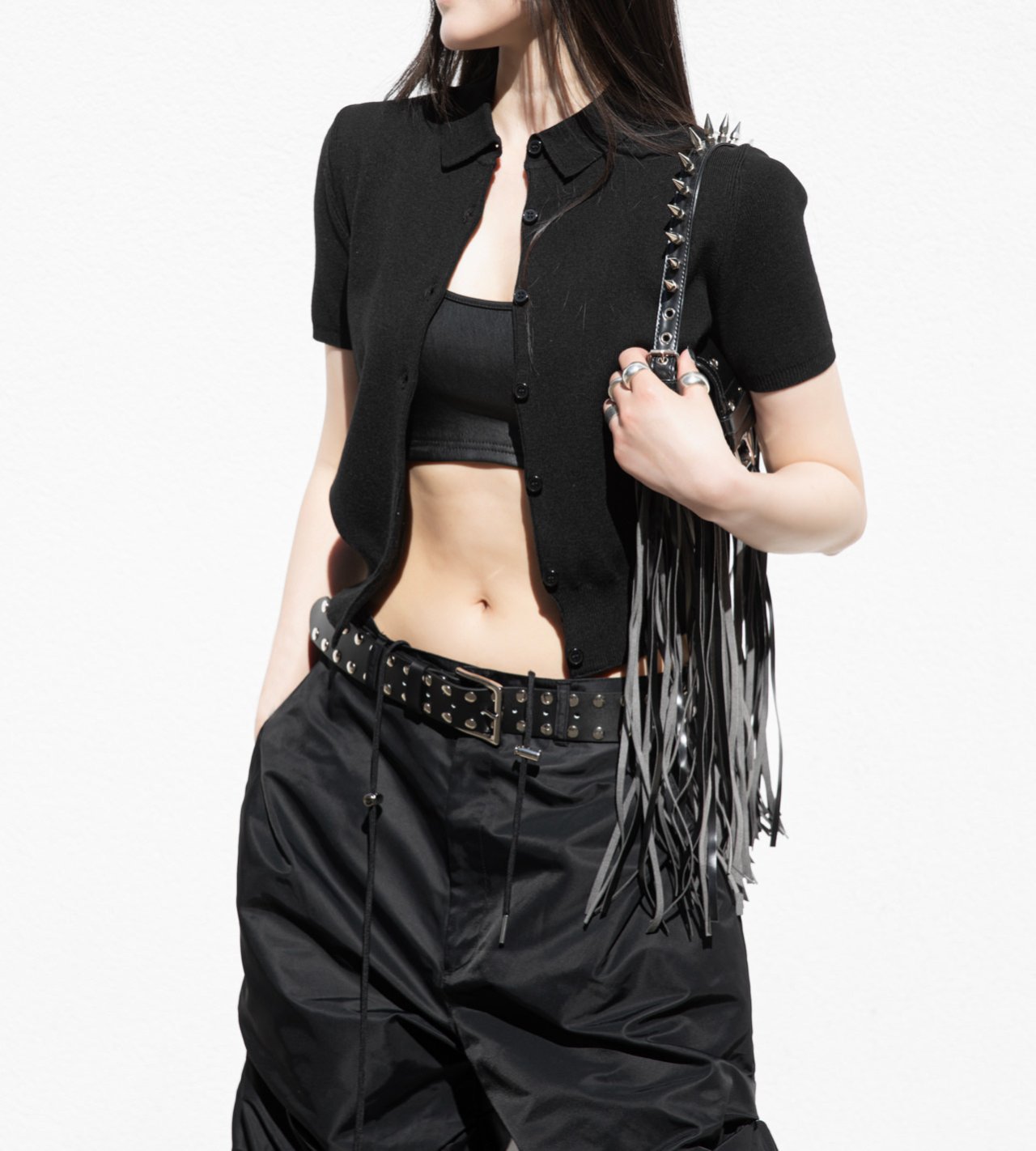 (PAPER MOON) COLLARED SHORT SLEEVE BUTTON CARDIGAN : BLACK