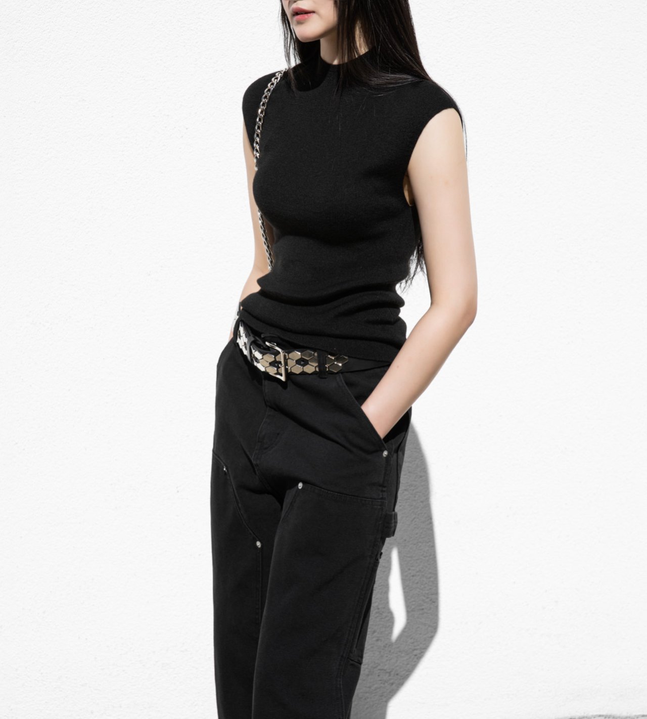 (PAPER MOON) CLASSIC WHOLEGAMENT SLEEVELESS KNIT : BLACK